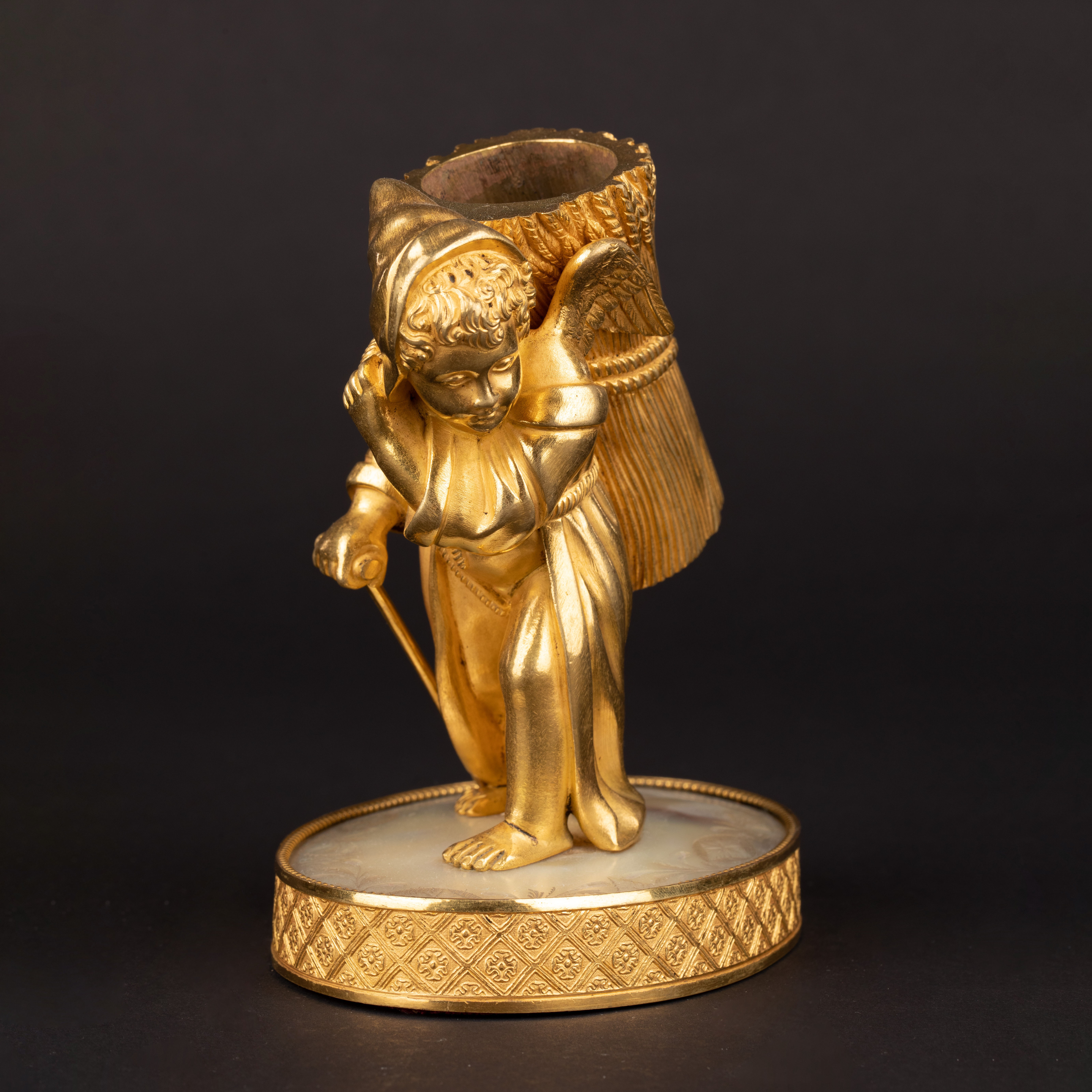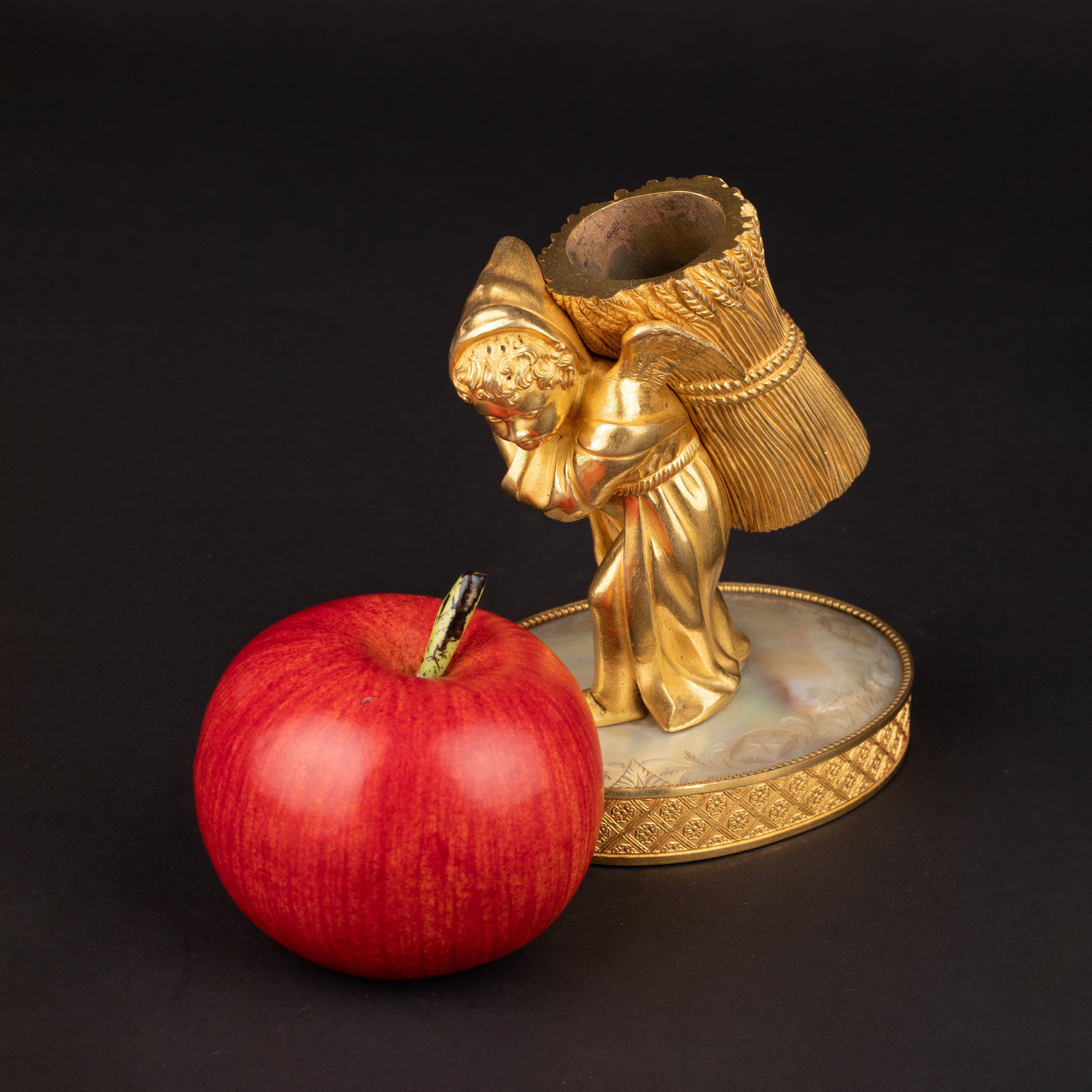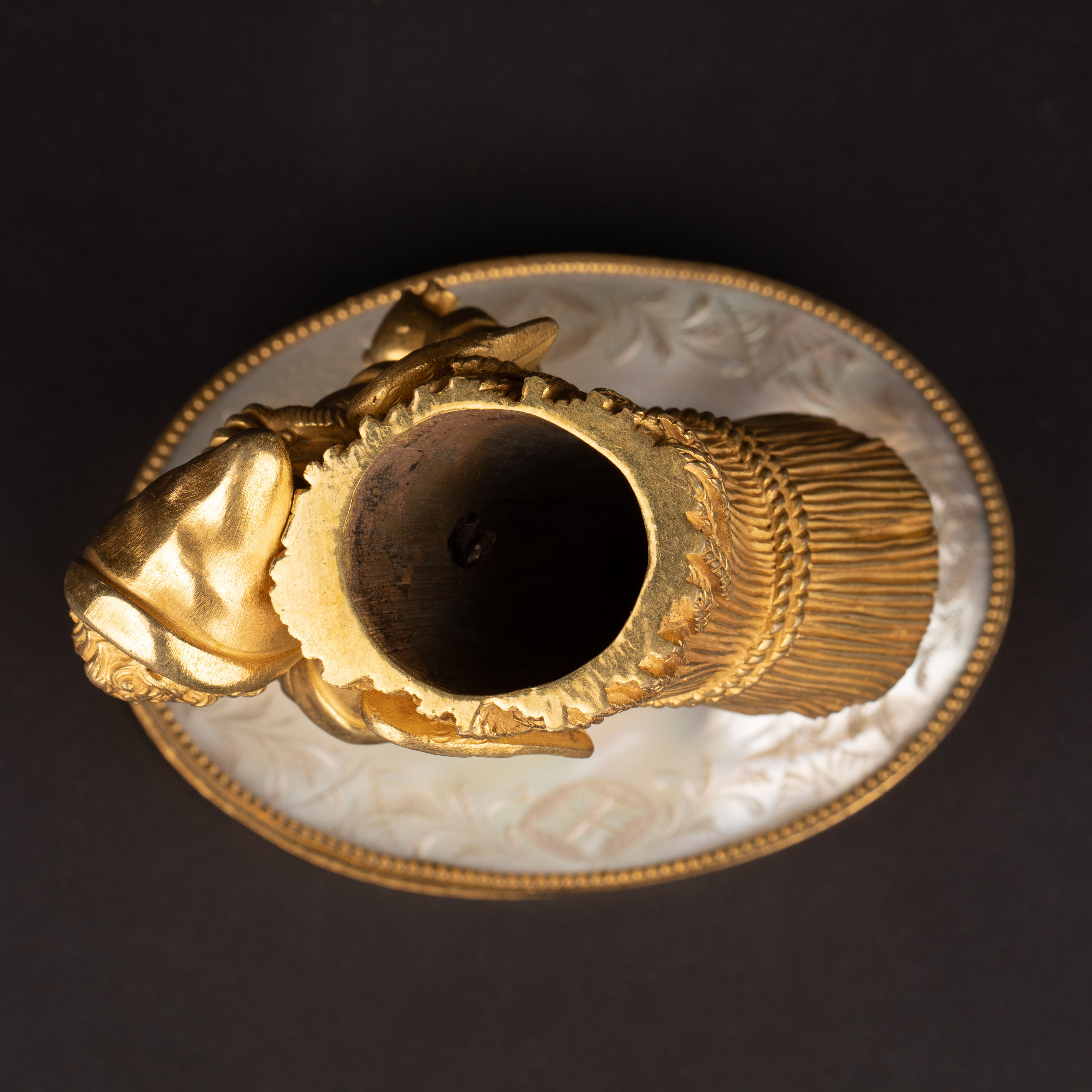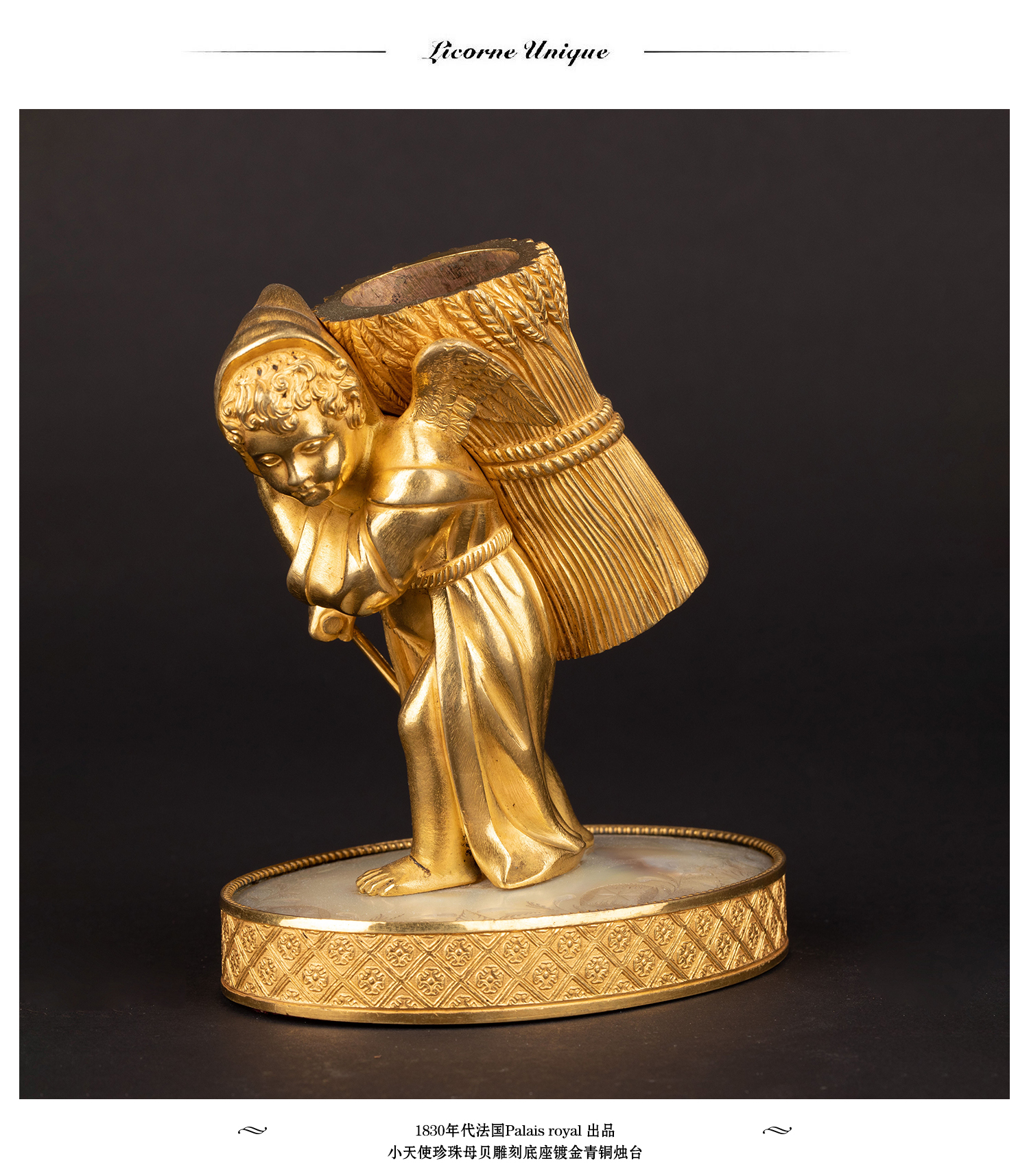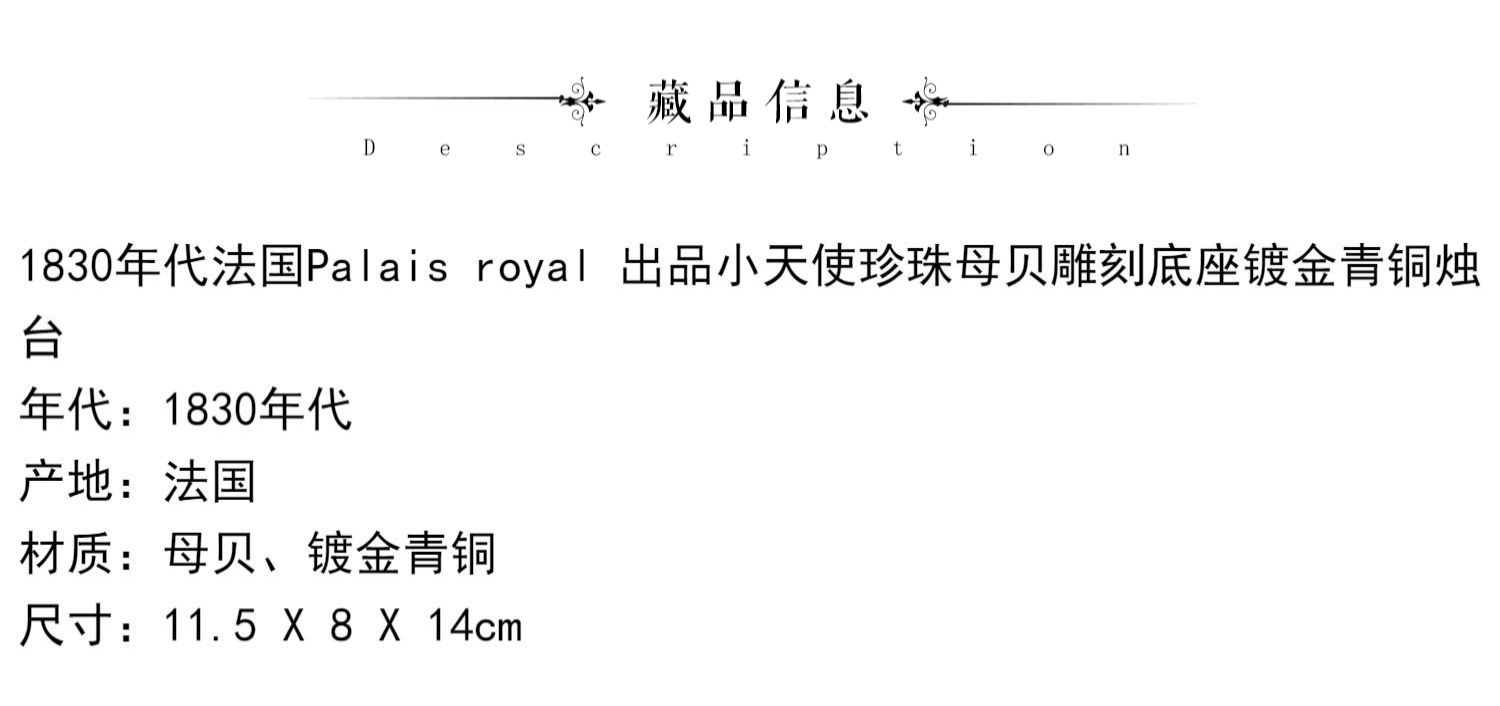 独角鹿西洋古董Palais royal小天使珍珠母贝雕刻底座镀金青铜烛台