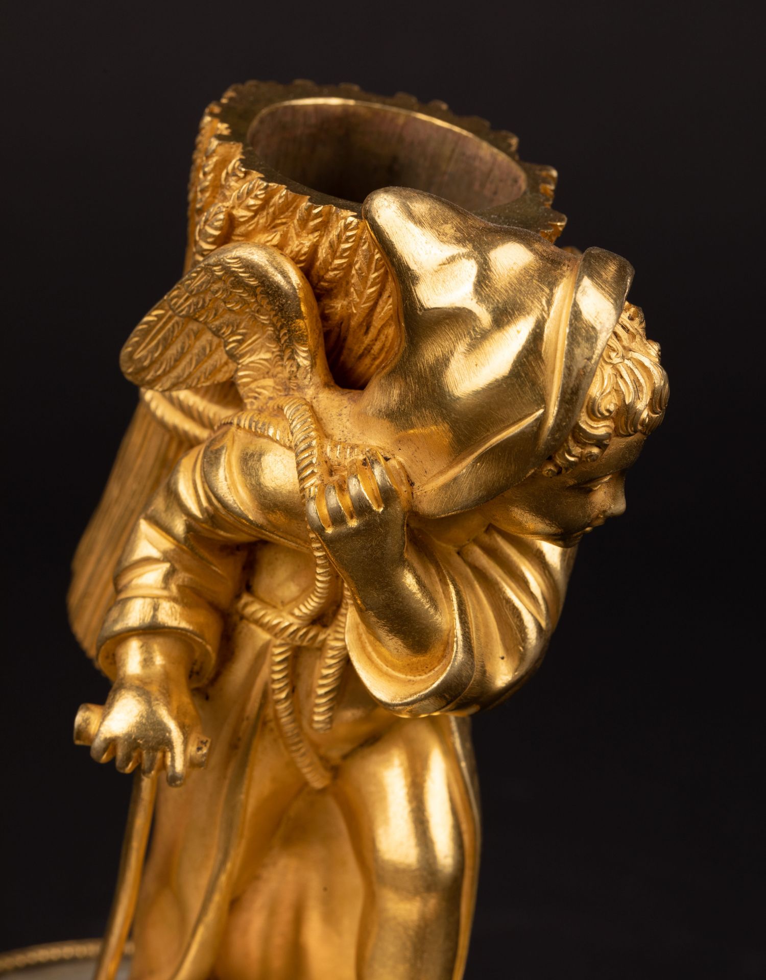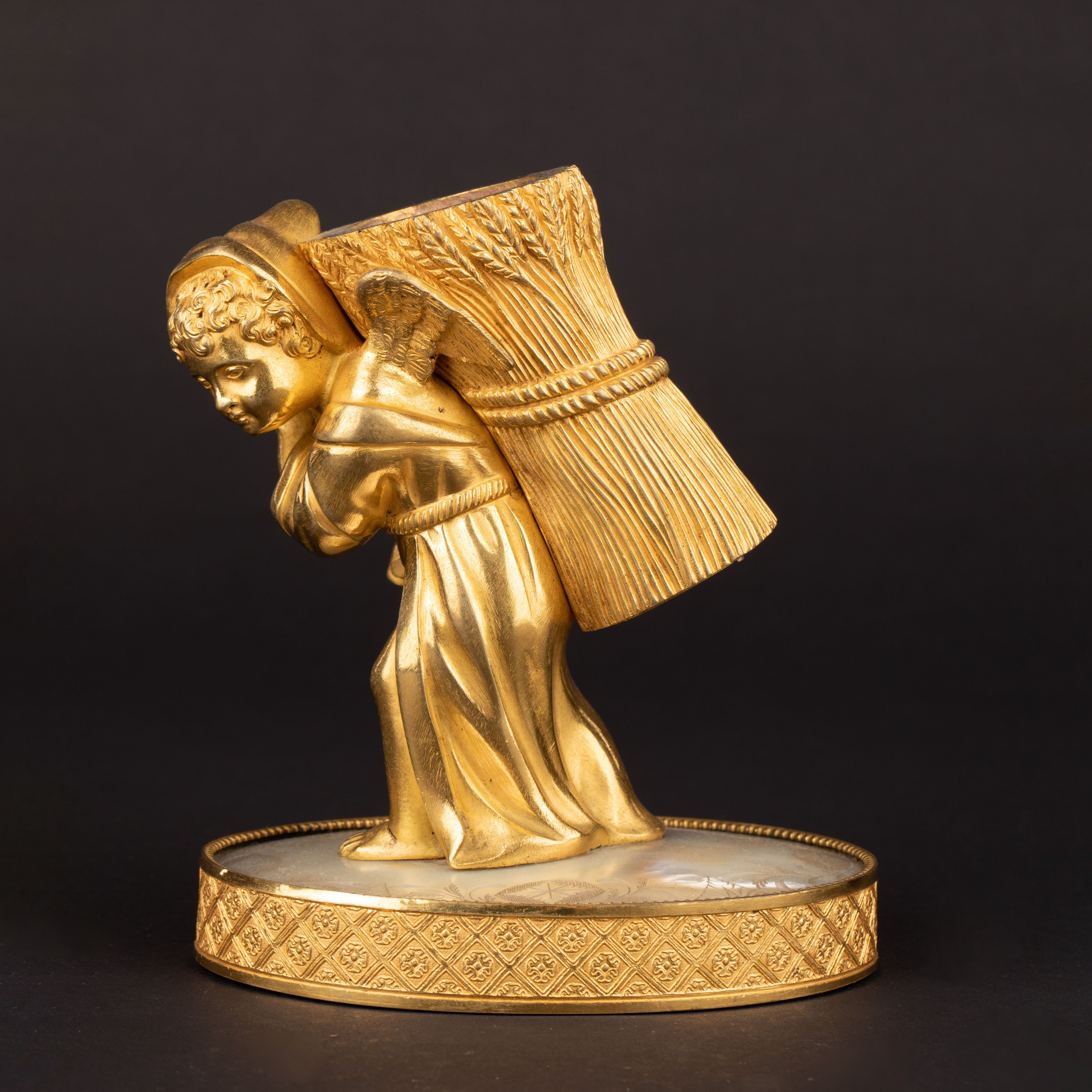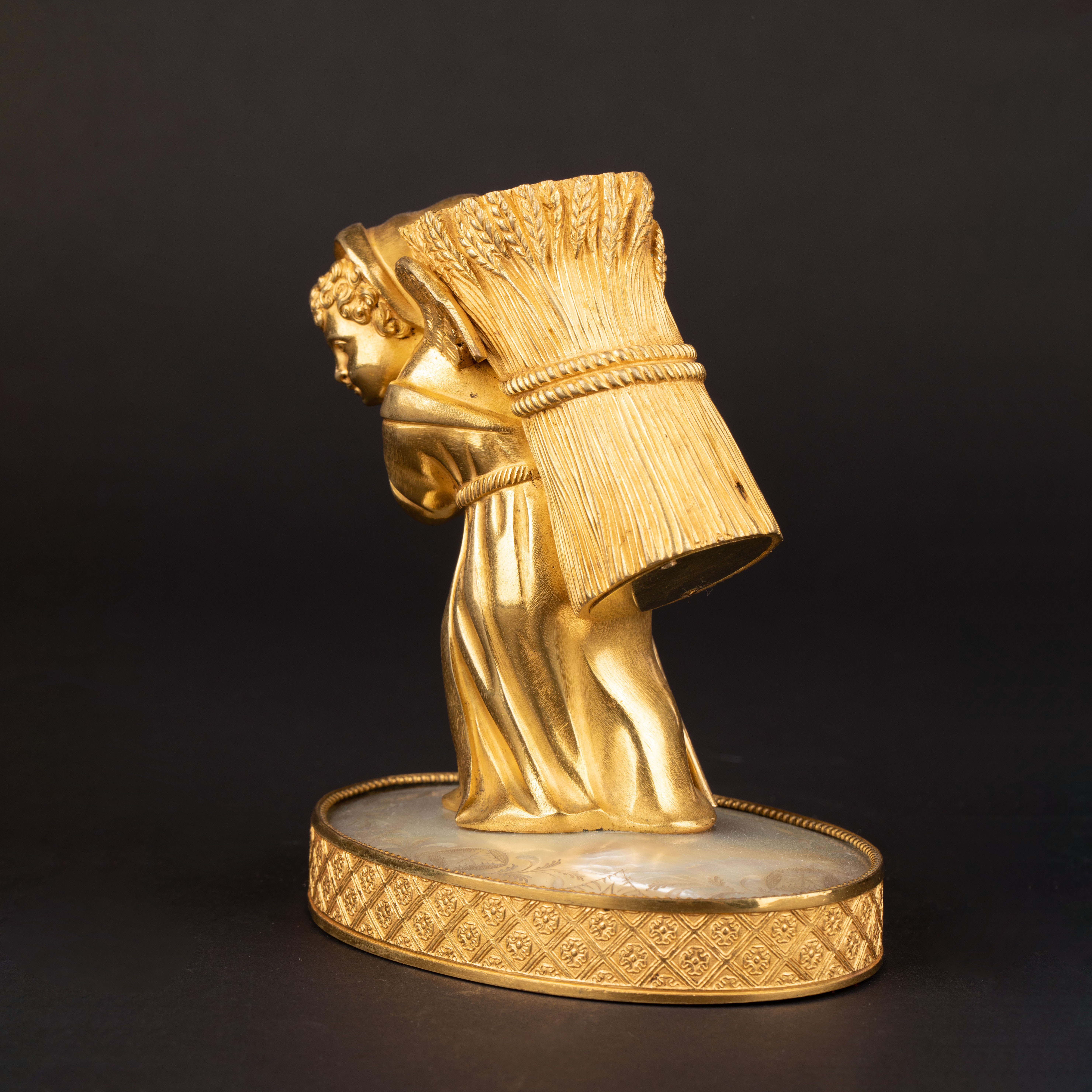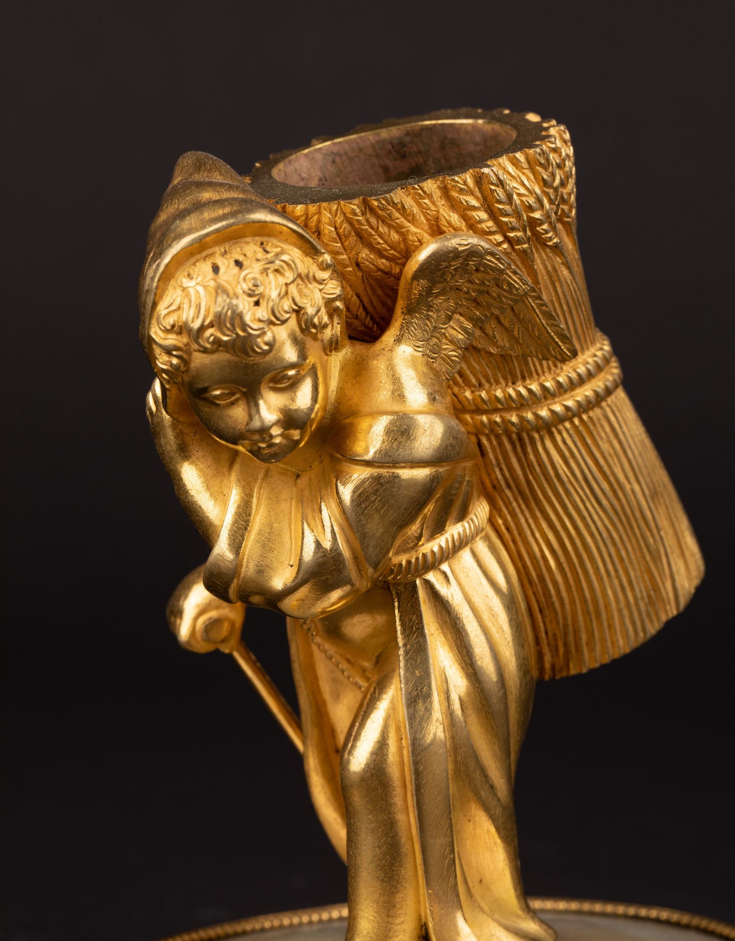 独角鹿西洋古董Palais royal小天使珍珠母贝雕刻底座镀金青铜烛台