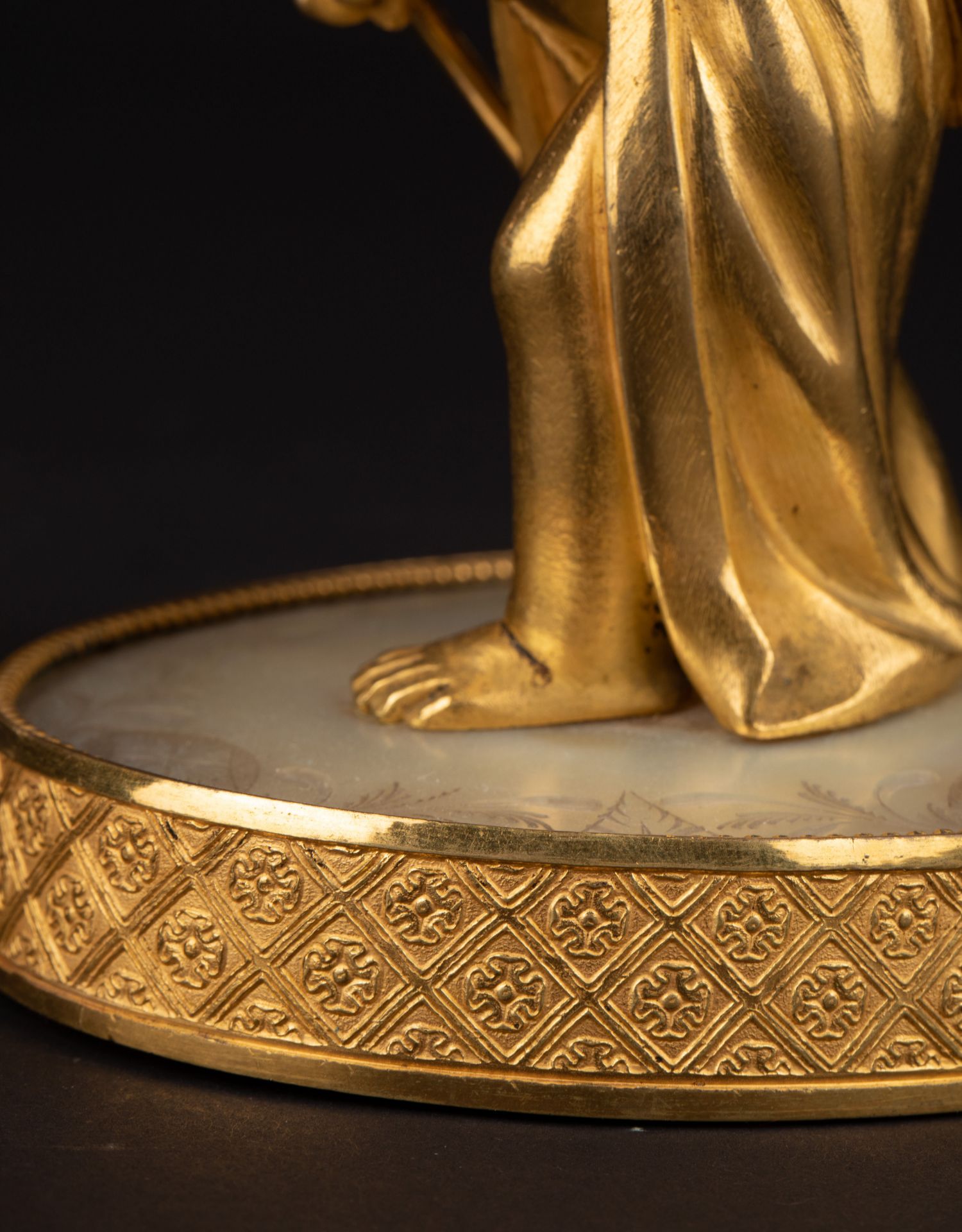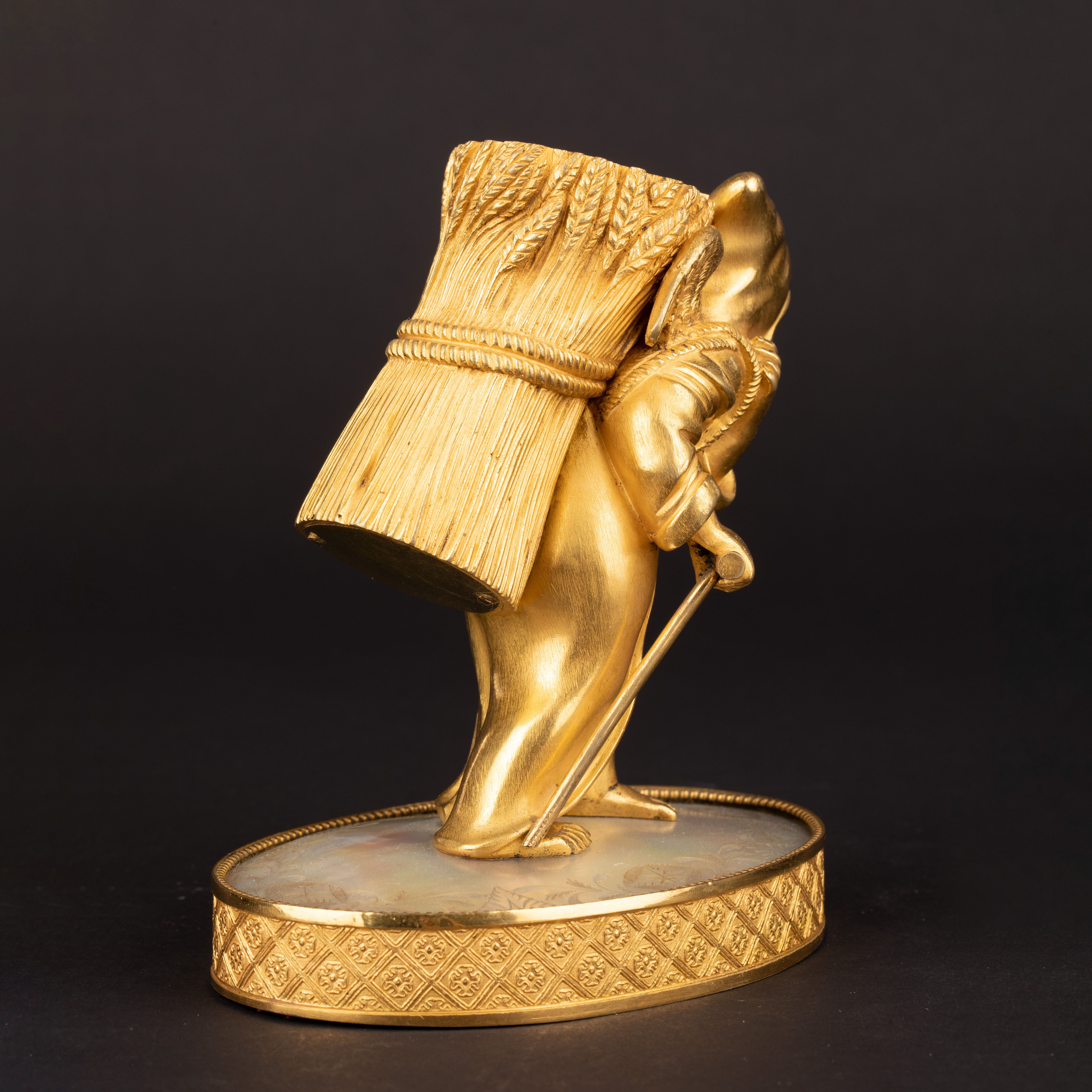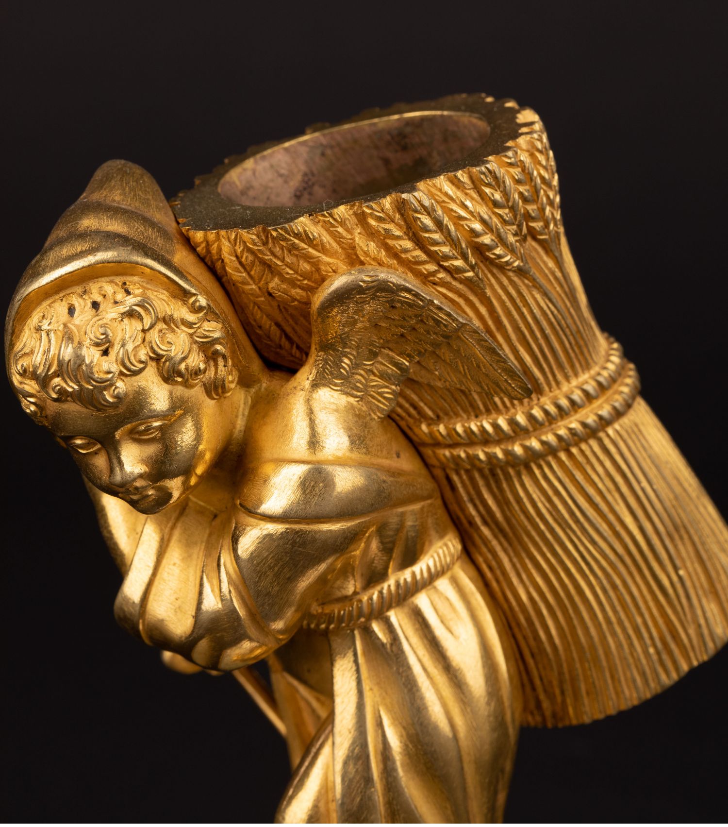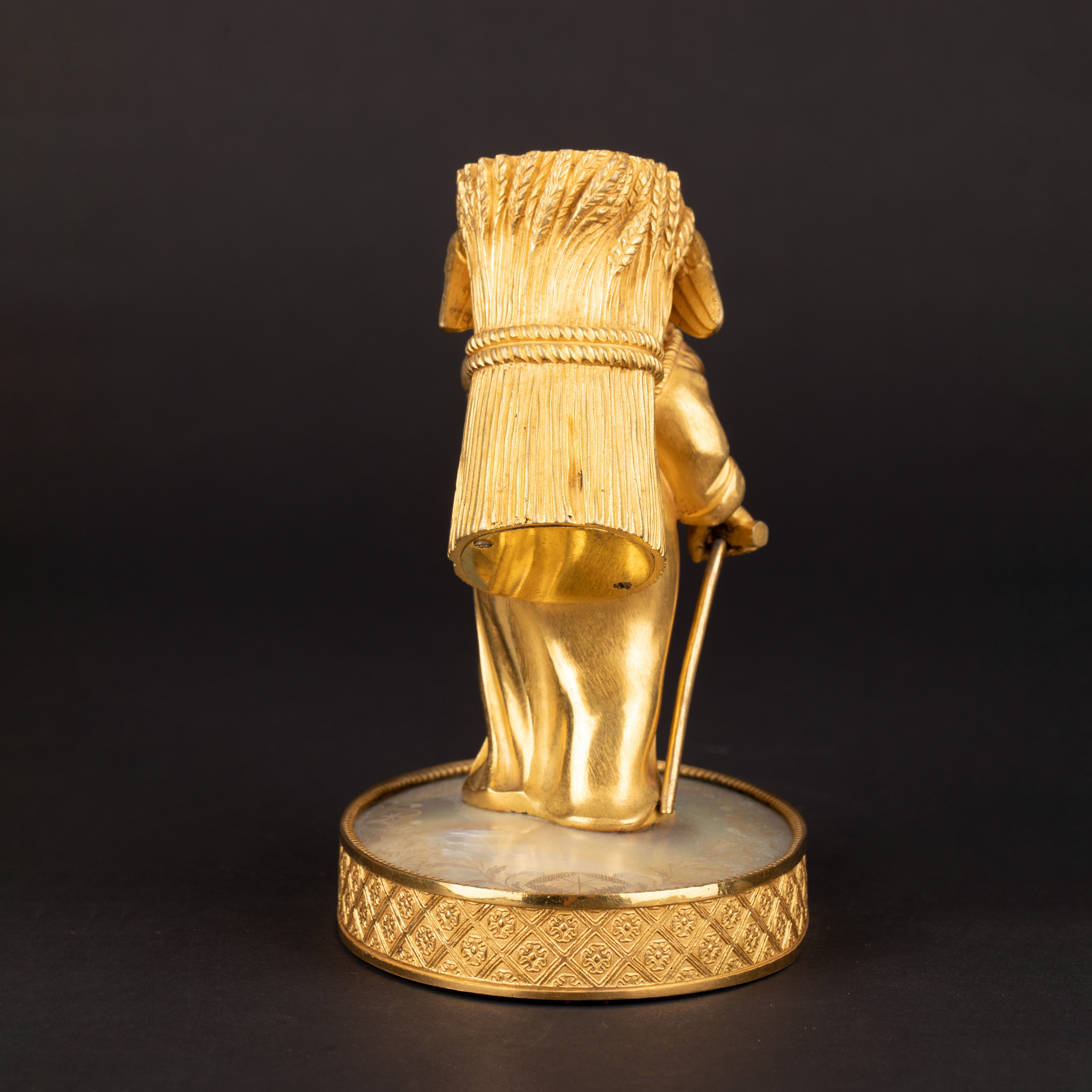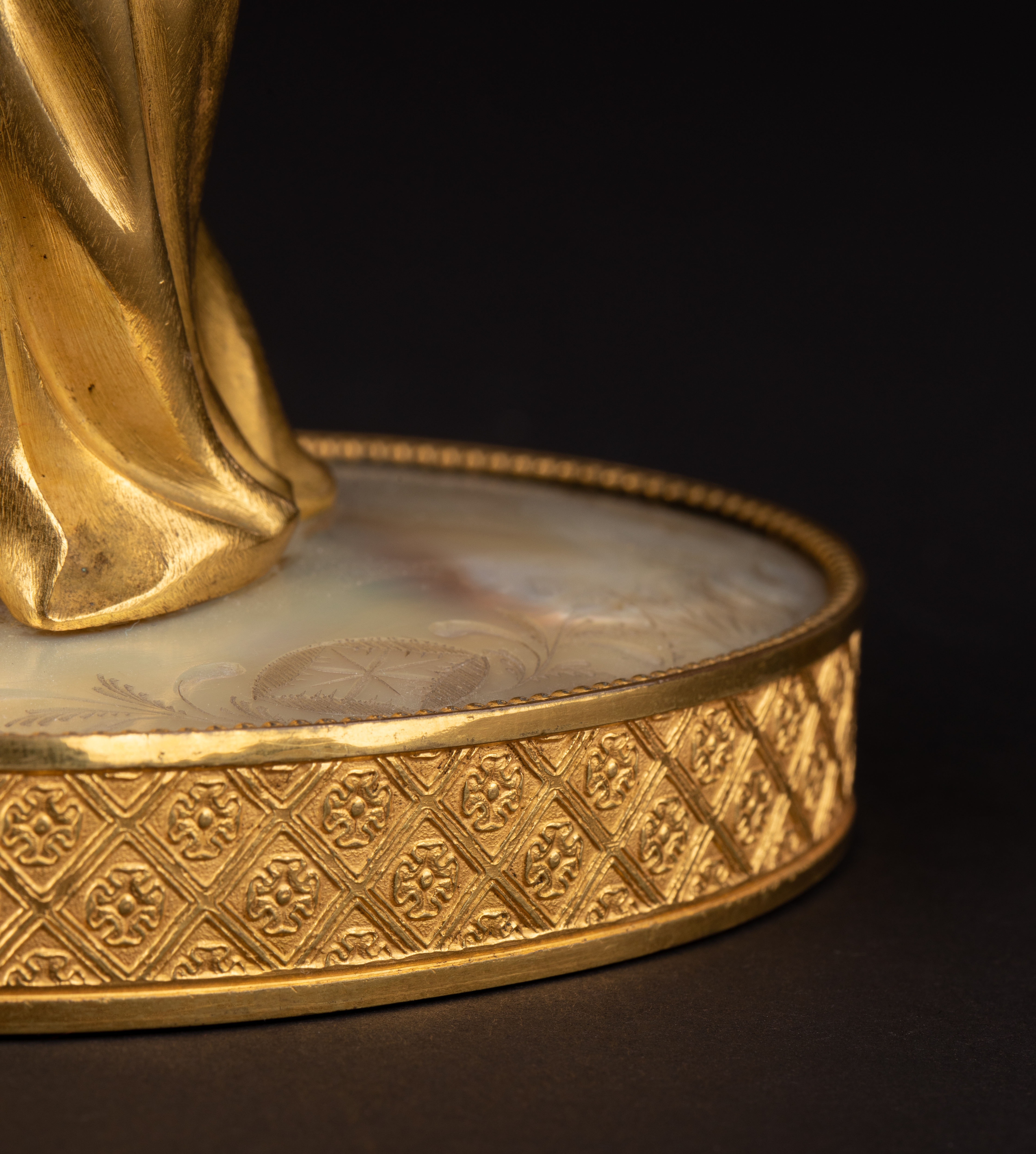 独角鹿西洋古董Palais royal小天使珍珠母贝雕刻底座镀金青铜烛台