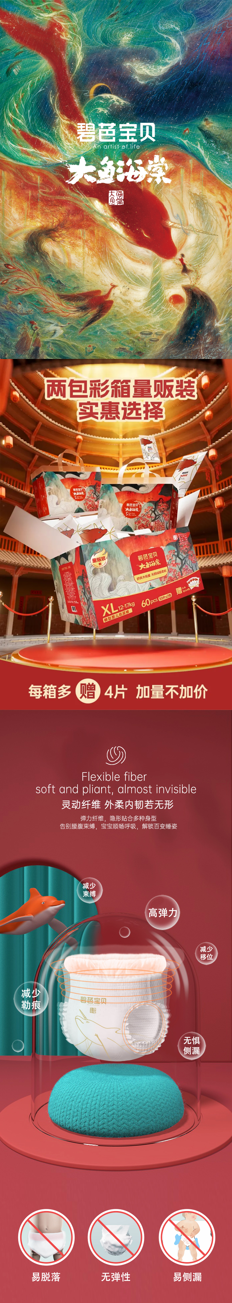 碧芭宝贝 大鱼海棠经典款腰贴型婴儿纸尿裤拉拉裤量贩装