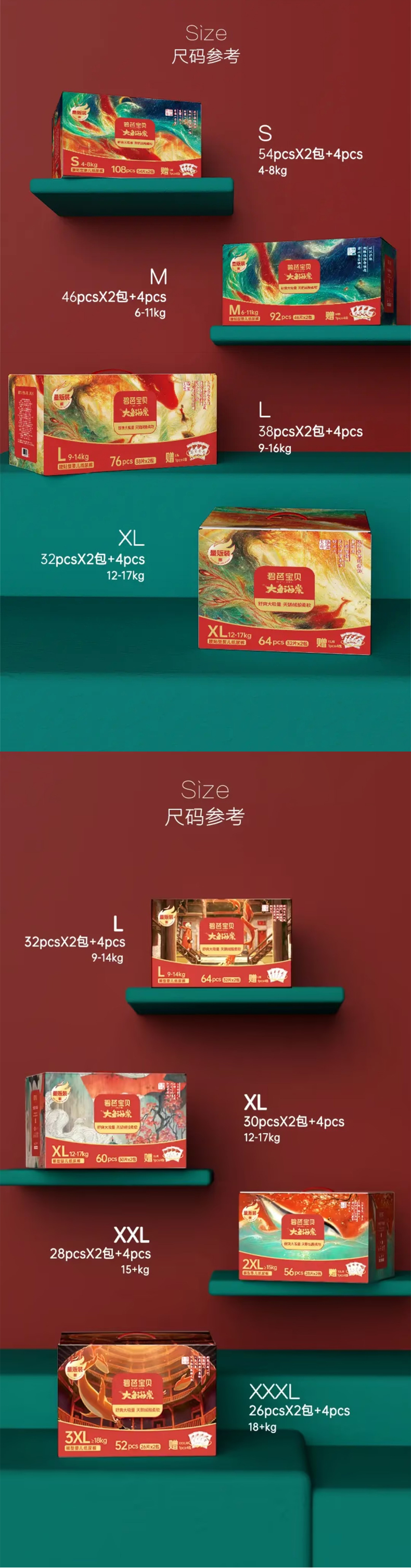 【积分兑换】碧芭宝贝 大鱼海棠系列鎏金装婴儿纸尿裤便携装4片 NB-XL