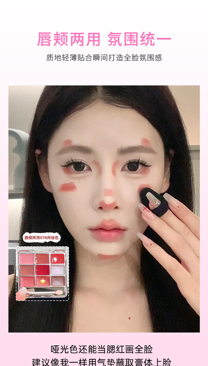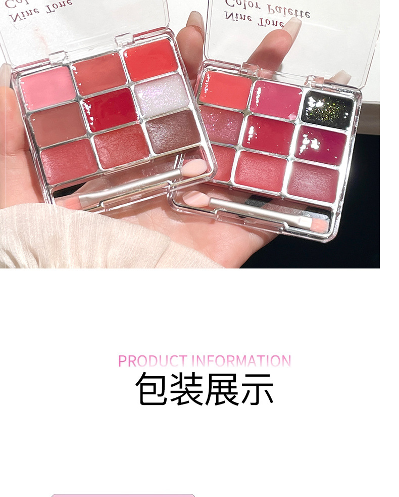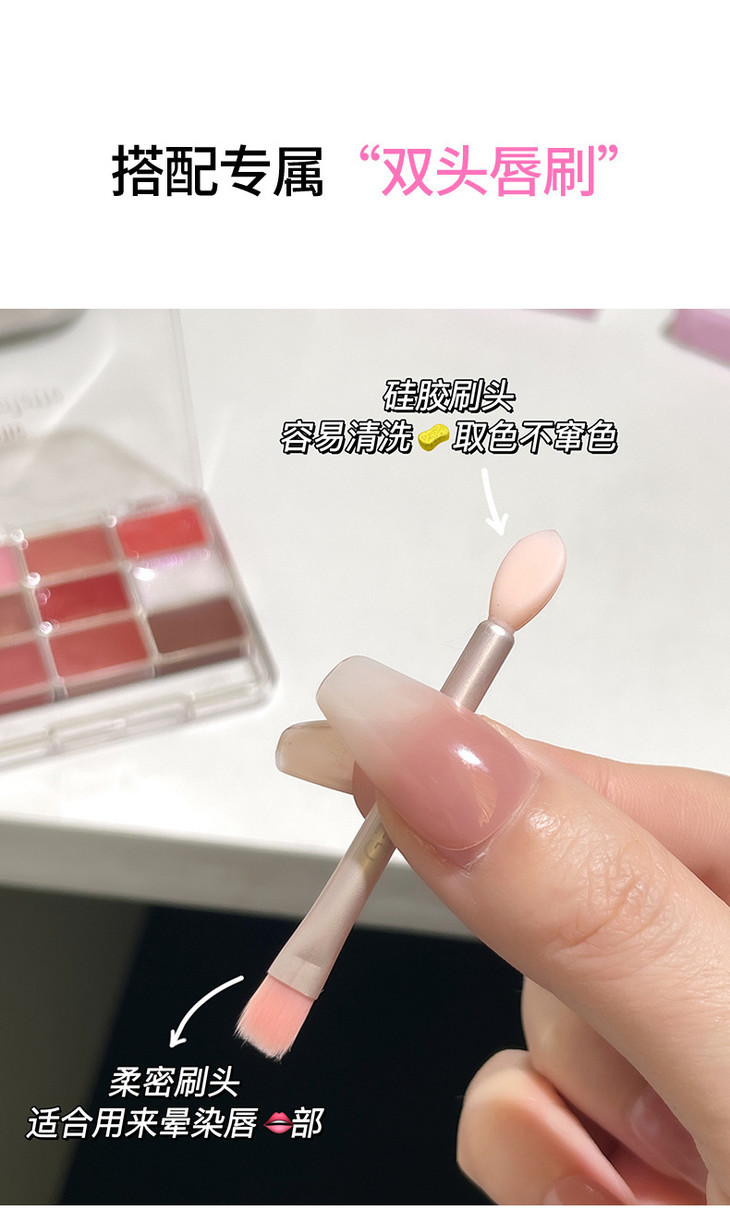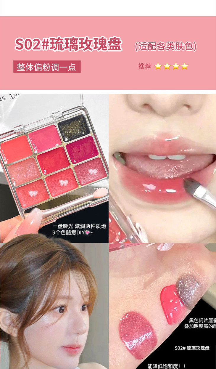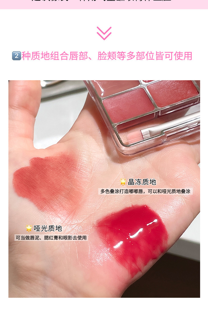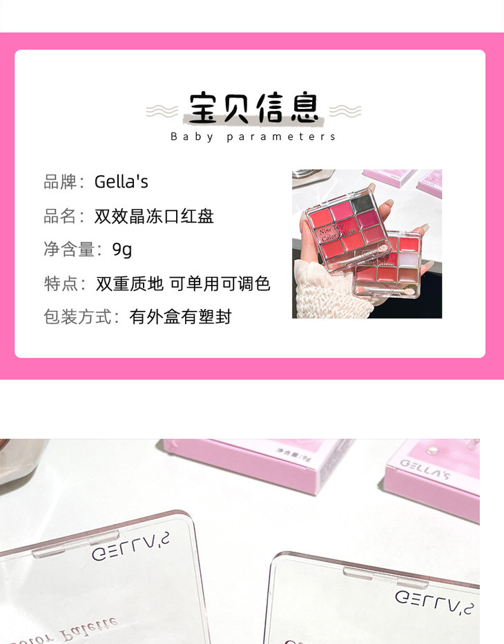 网红同款 gellas口红唇冻调色盘 唇颊两用水光镜面唇蜜丝绒唇泥九色叠涂diy