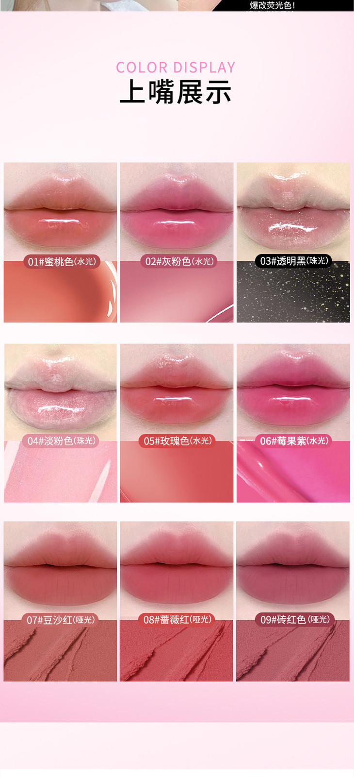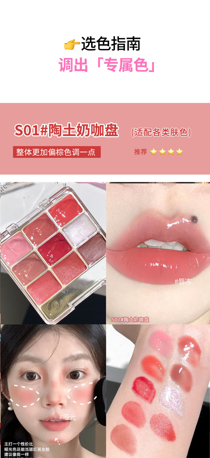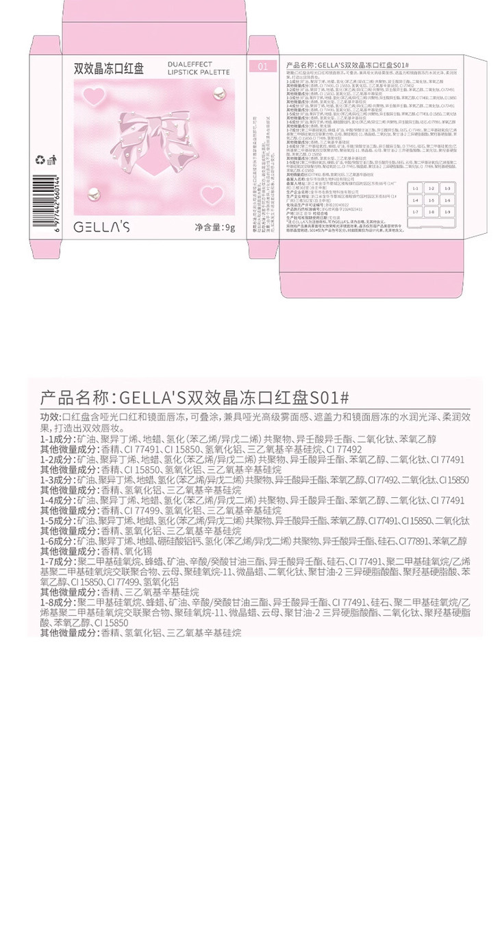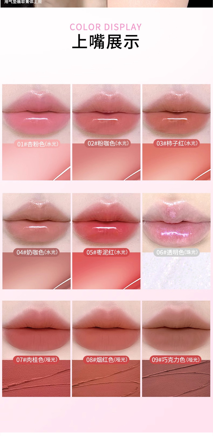 网红同款 gellas口红唇冻调色盘 唇颊两用水光镜面唇蜜丝绒唇泥九色叠涂diy