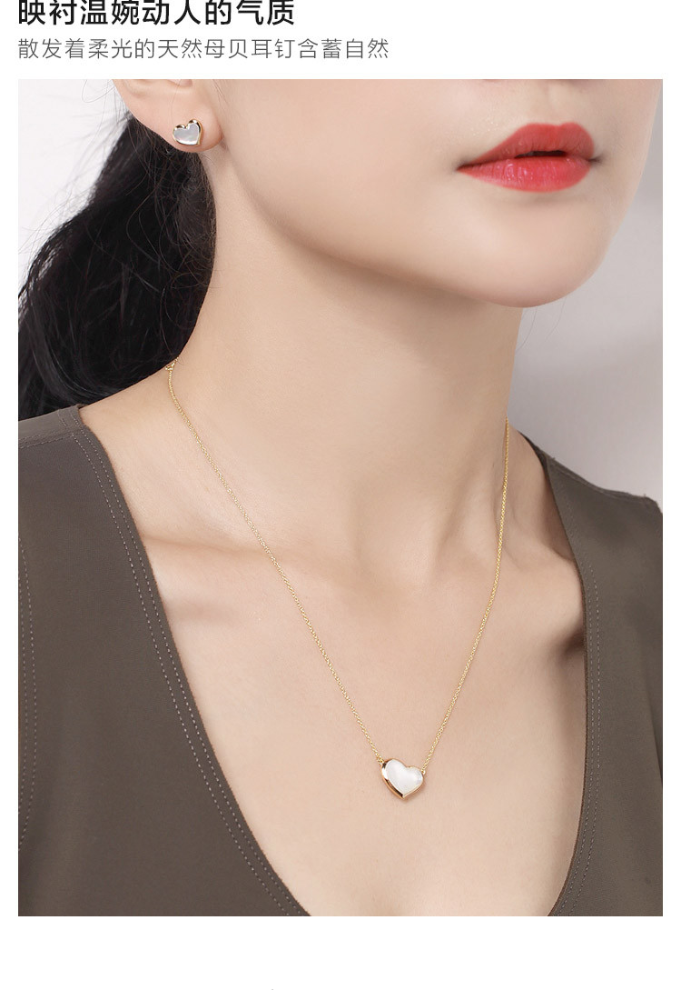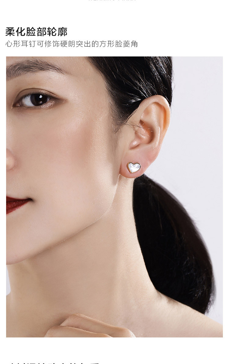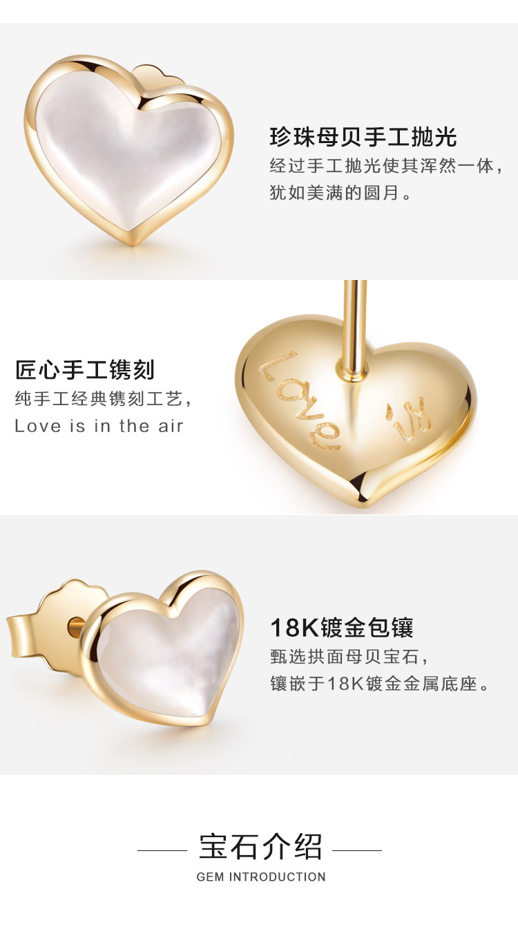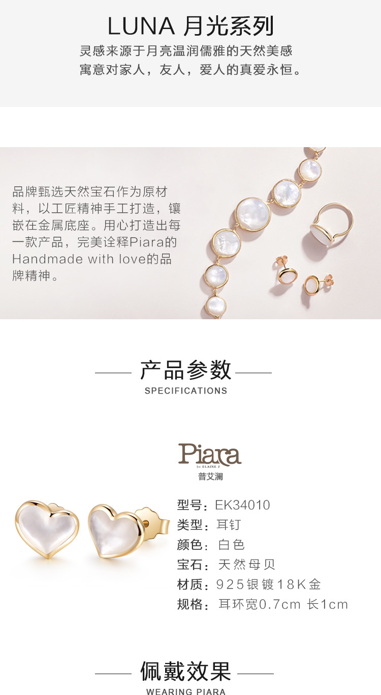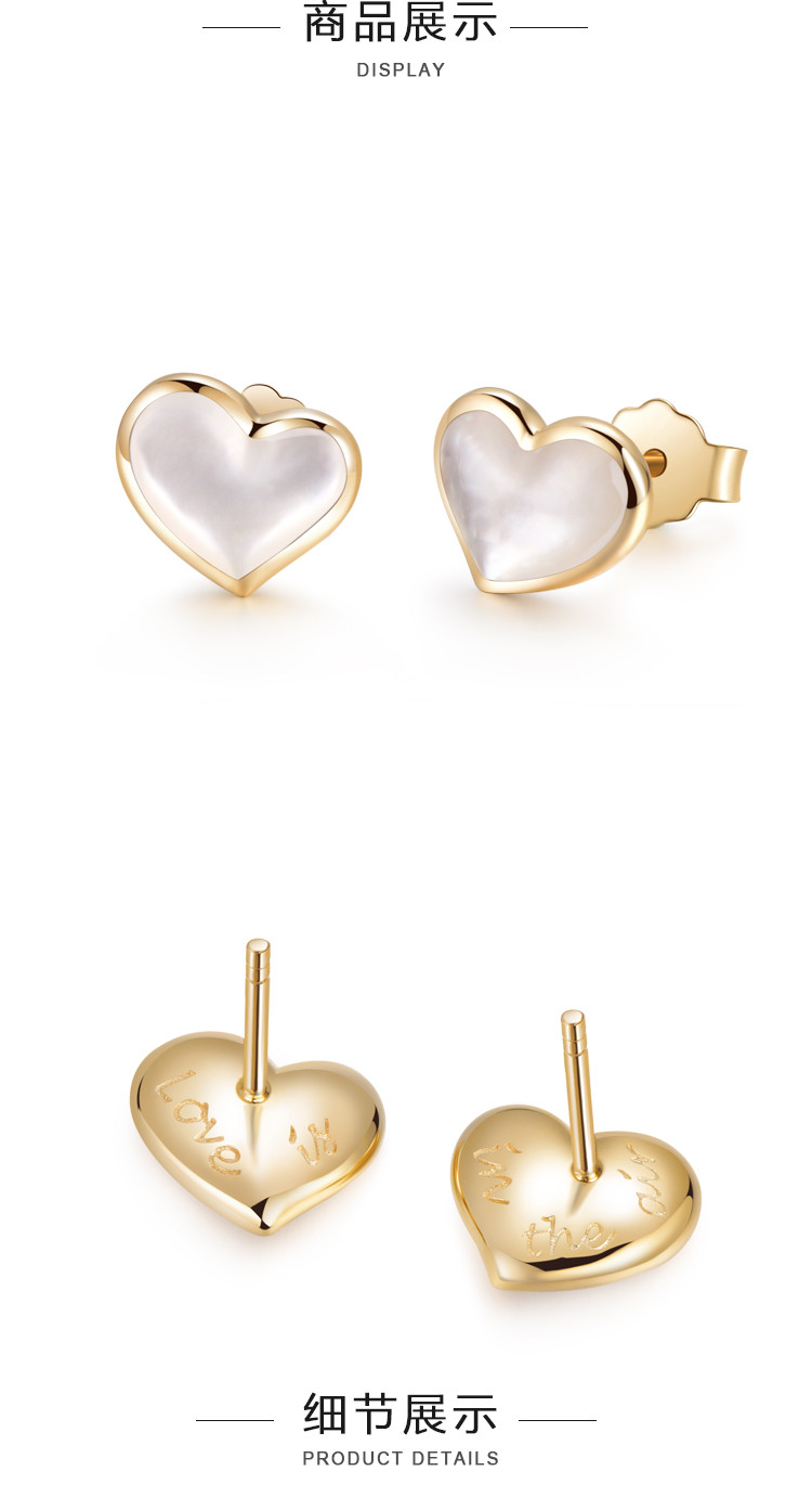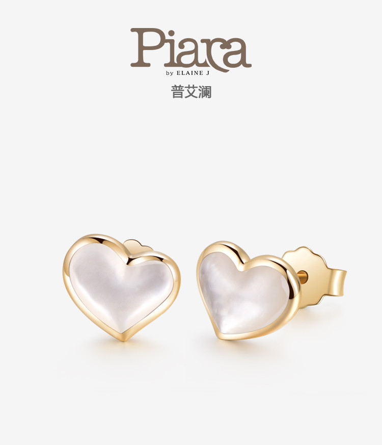 PIARA 新款欧美天然贝母女圆形心形简约耳钉EK34010