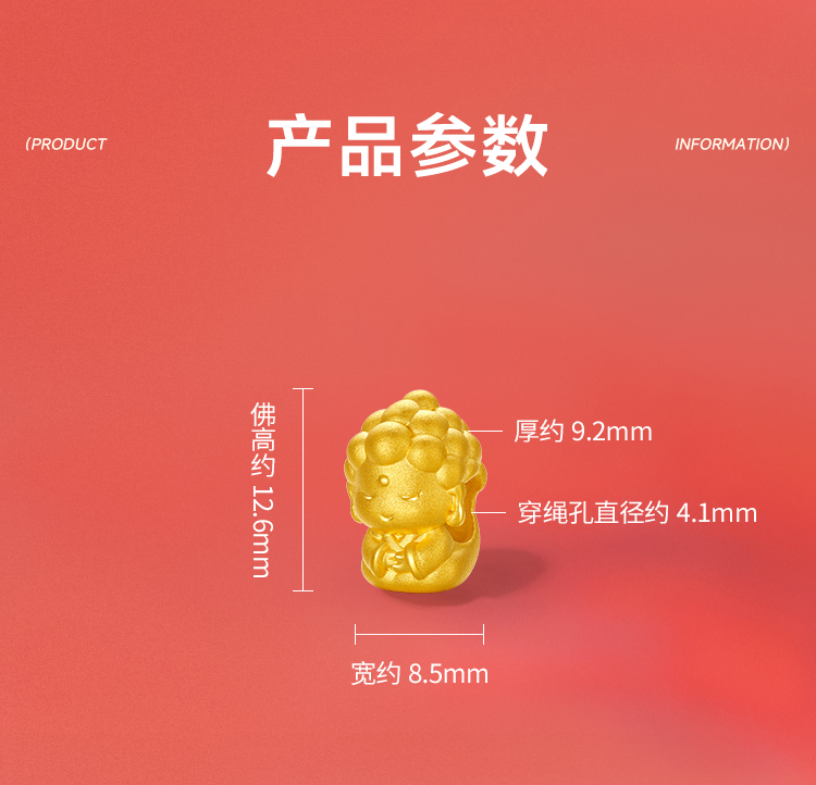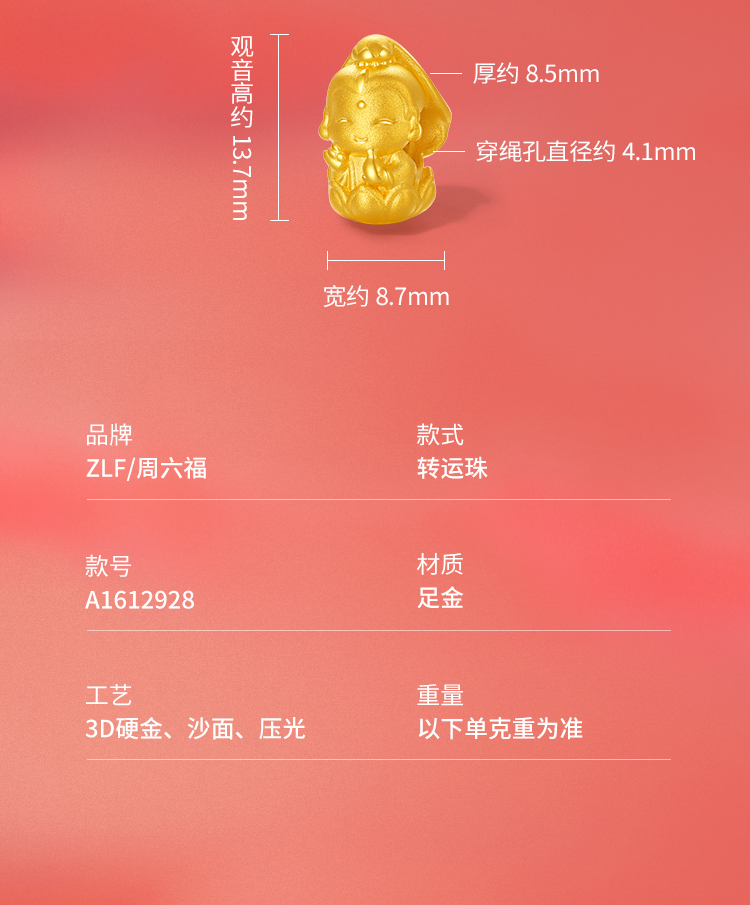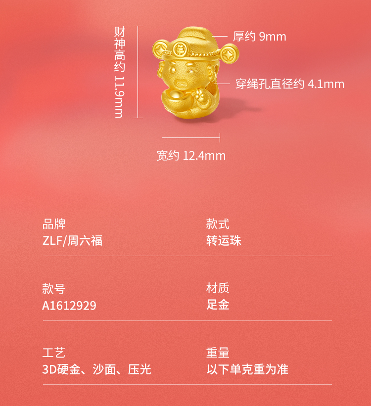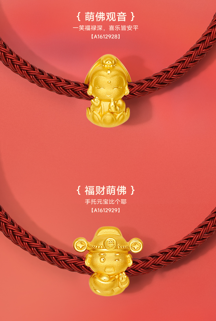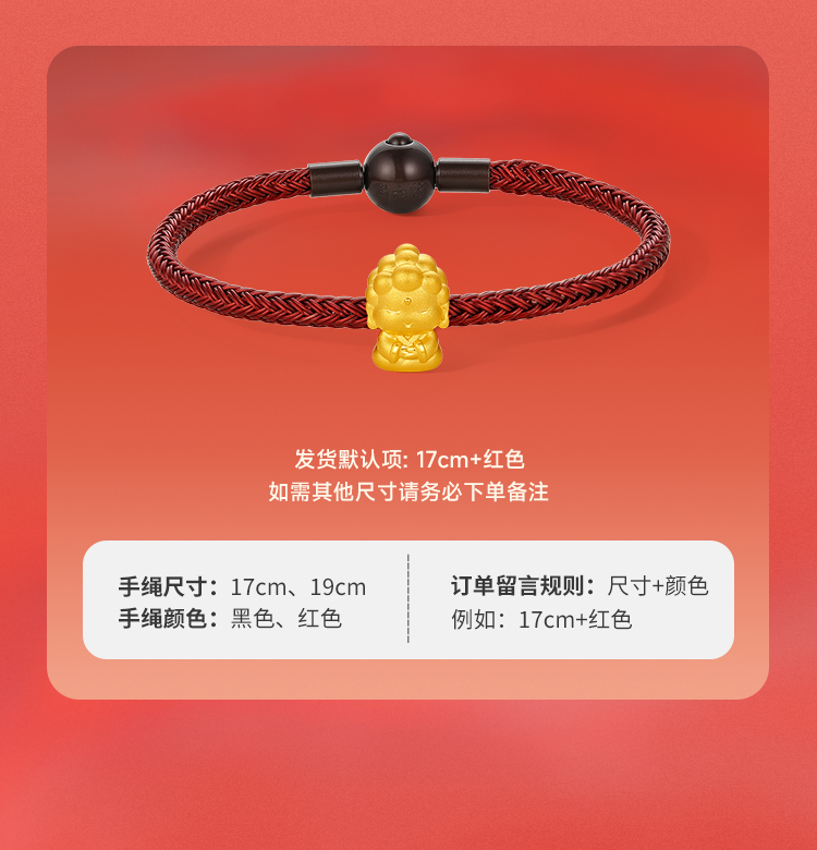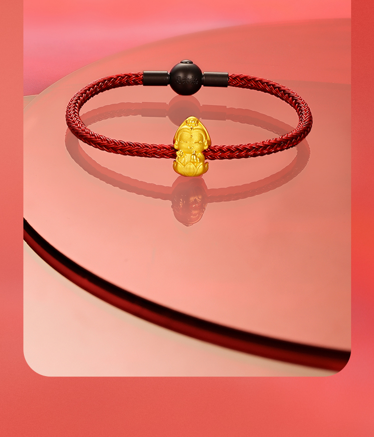 周六福黄金转运珠手链女定价萌佛驾到手绳萌佛驾到系列送女友礼物