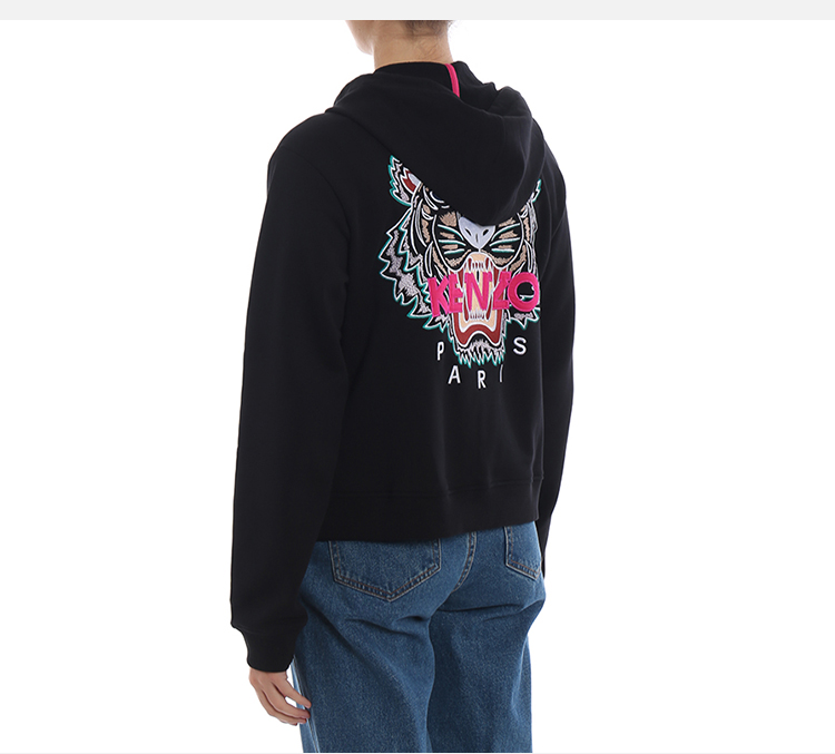 KENZO 高田贤三 女士棉质彩色虎头标志刺绣图案抽绳连帽卫衣 黑色 F862 BL721 4XA 99