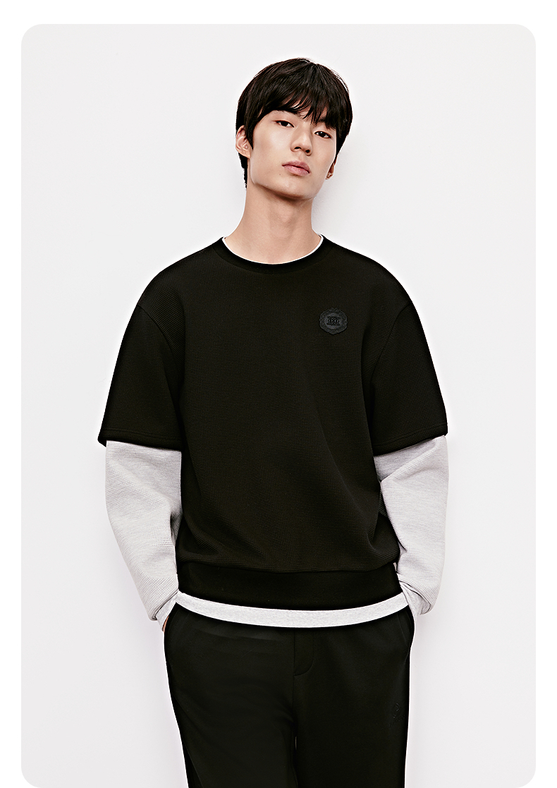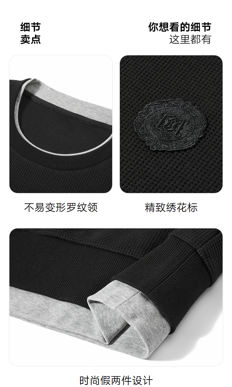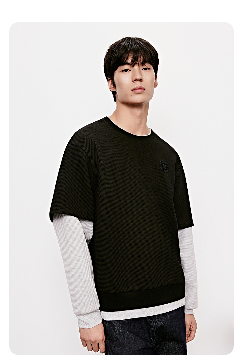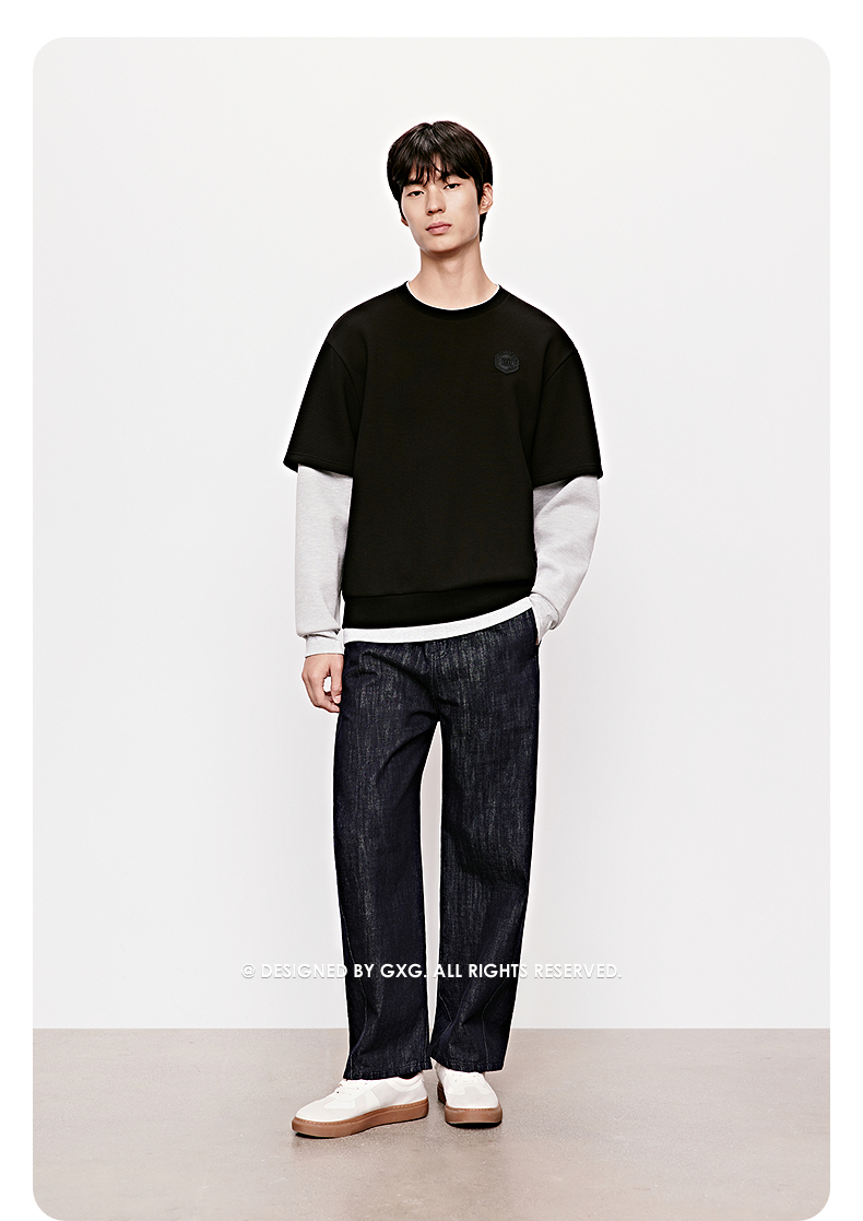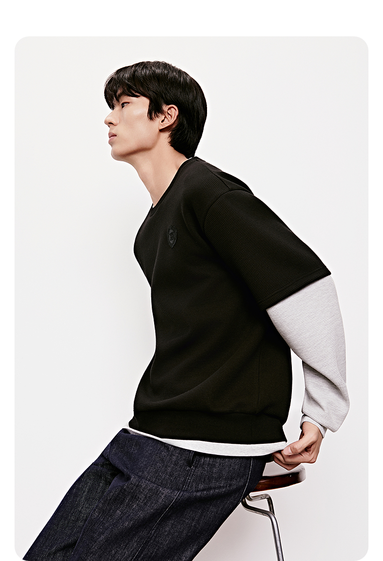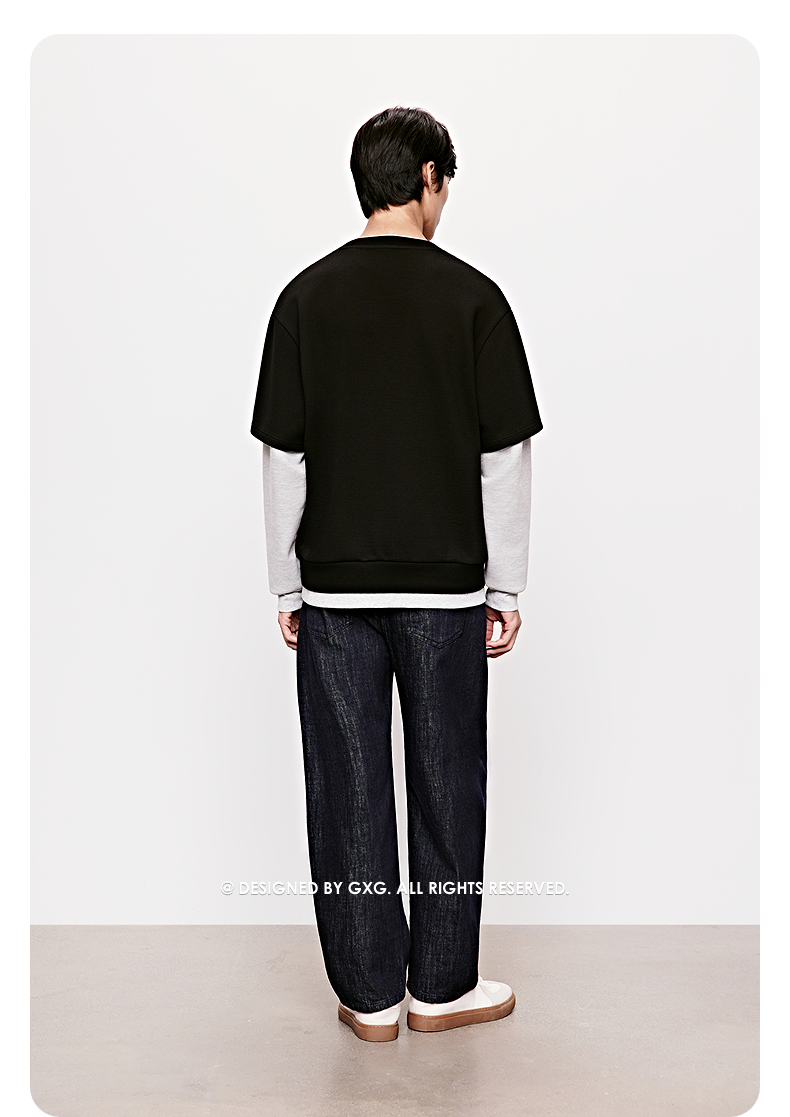 GXG男装 圆领套头卫衣假两件肌理上衣长袖卫衣 25冬热卖款