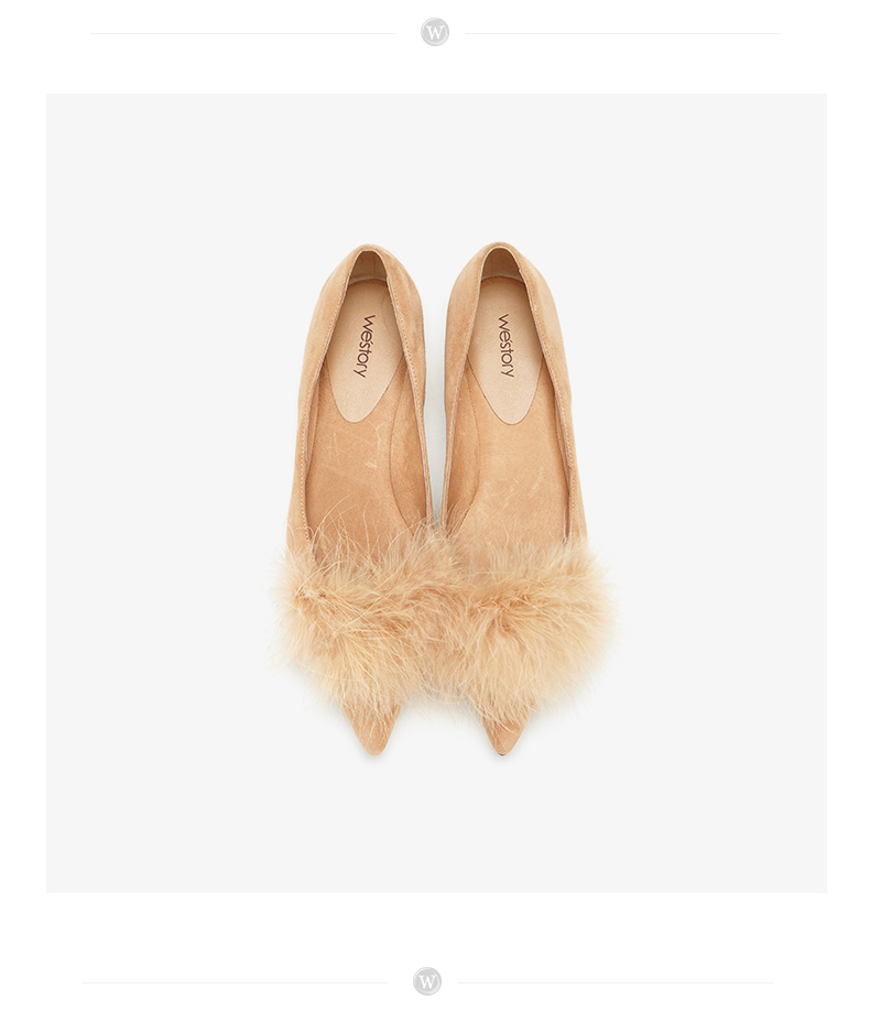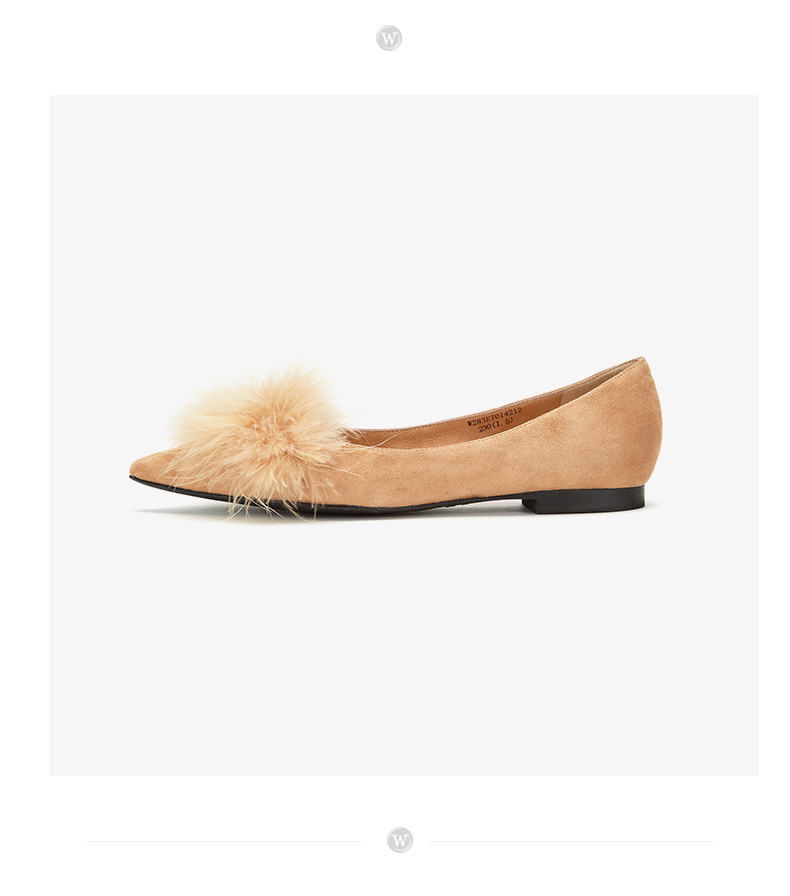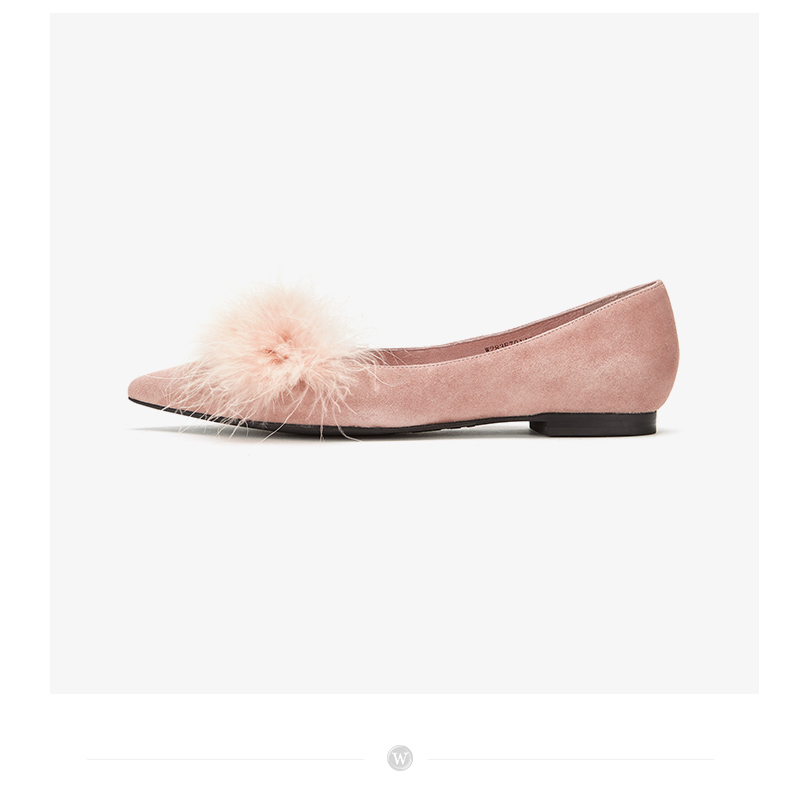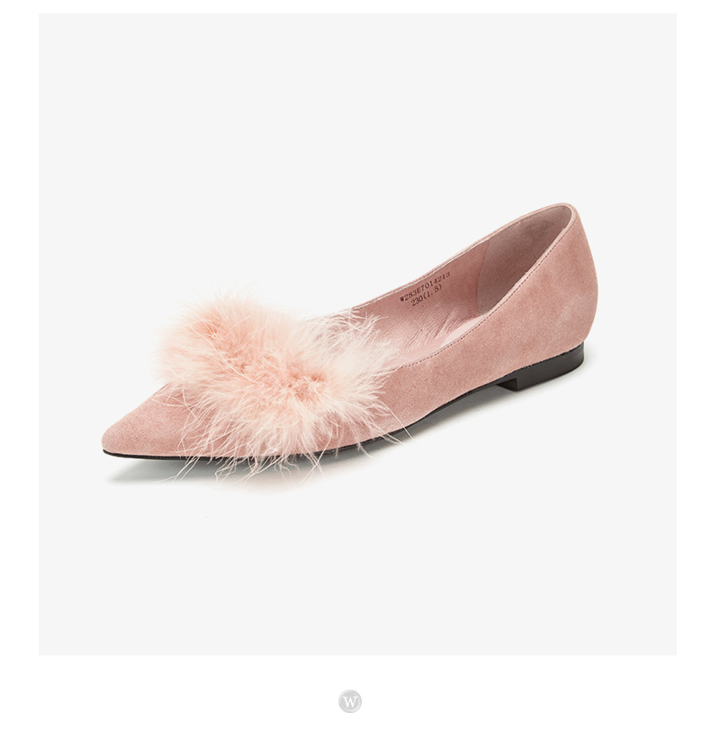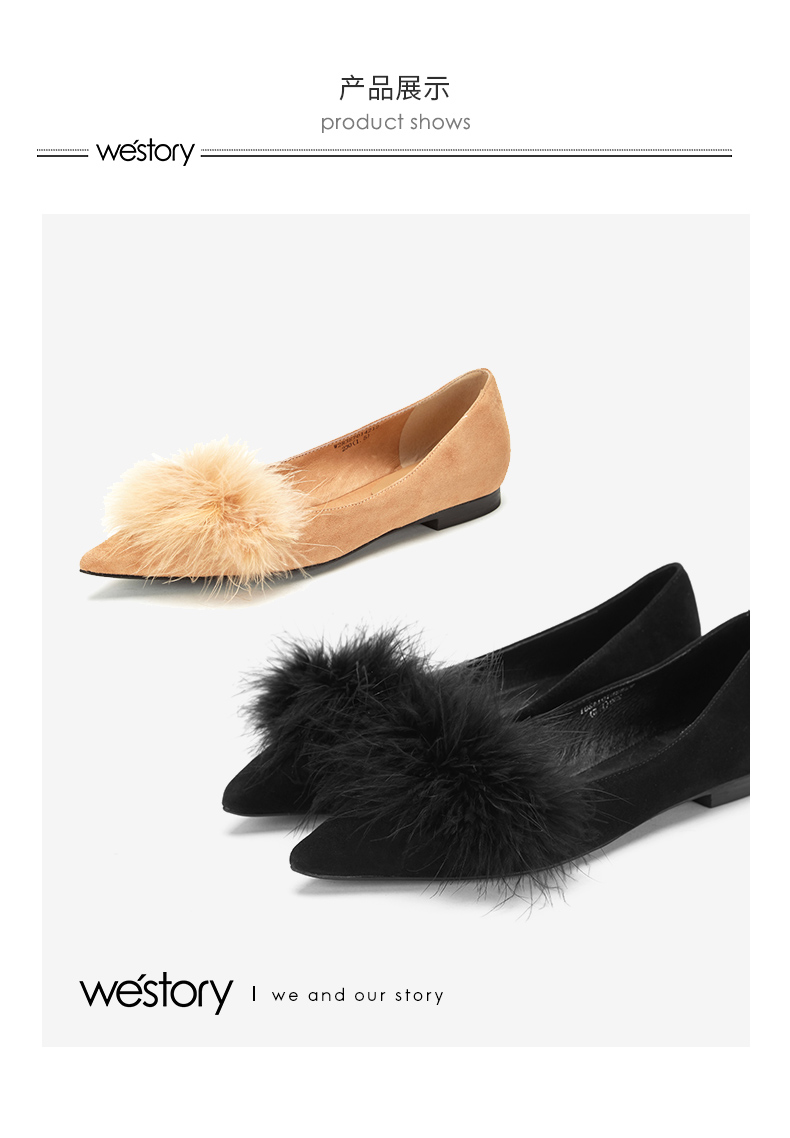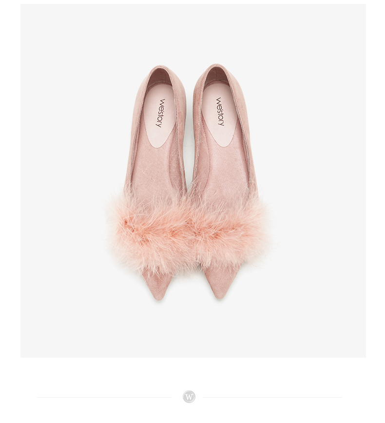 westory浅口尖头单鞋平底舒适皮里毛毛鞋女W283E70142
