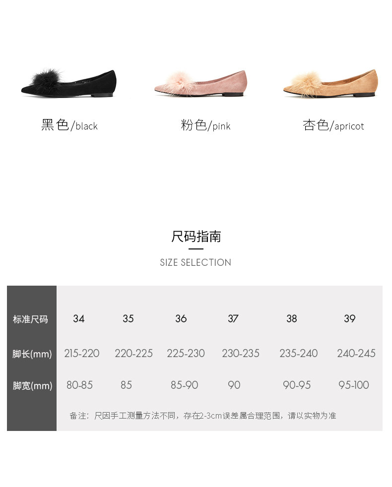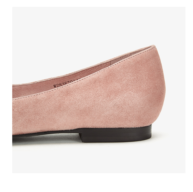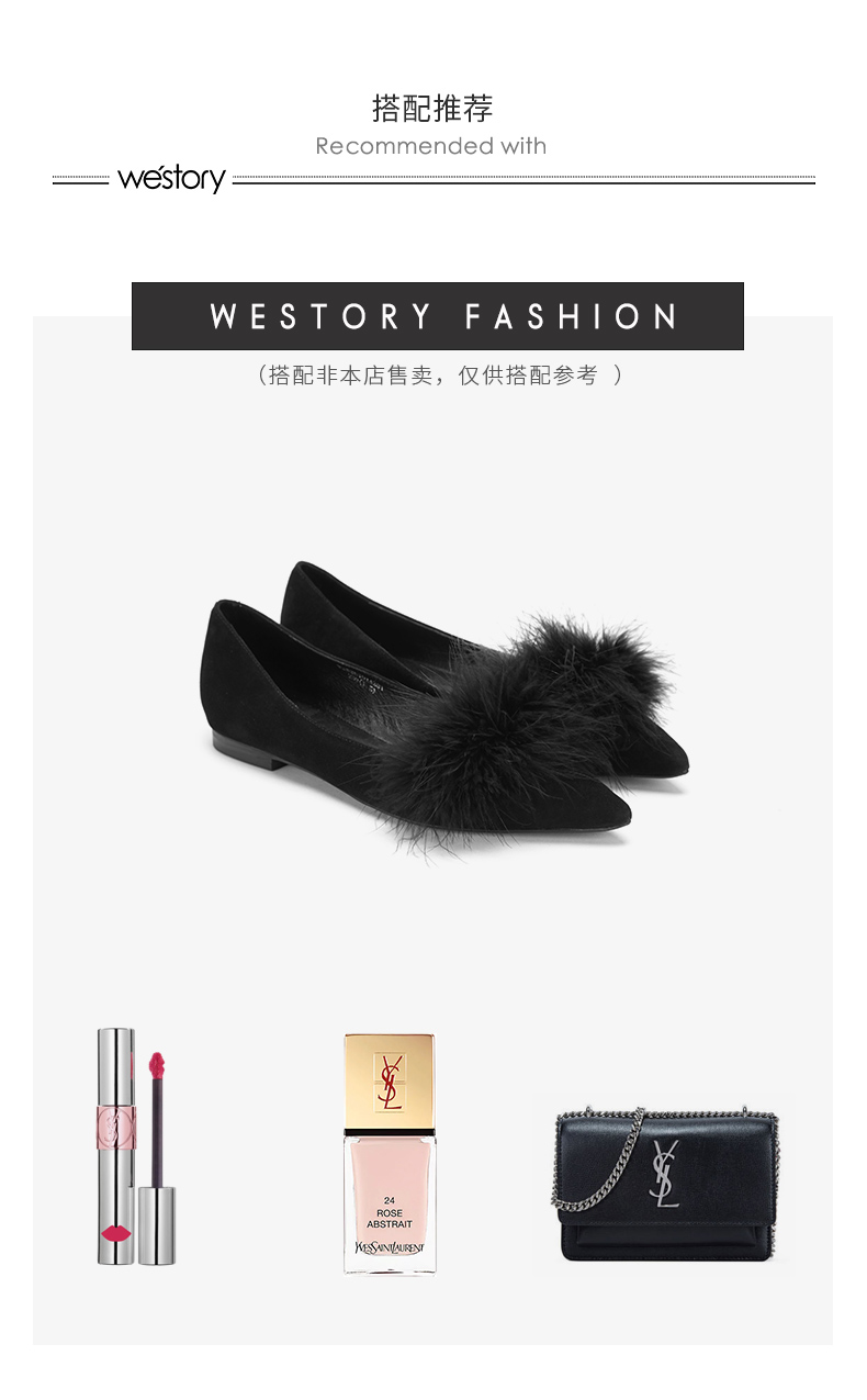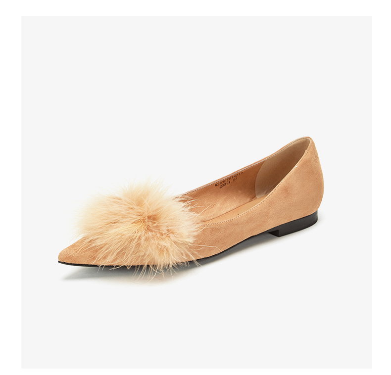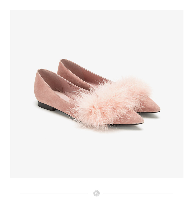 westory浅口尖头单鞋平底舒适皮里毛毛鞋女W283E70142