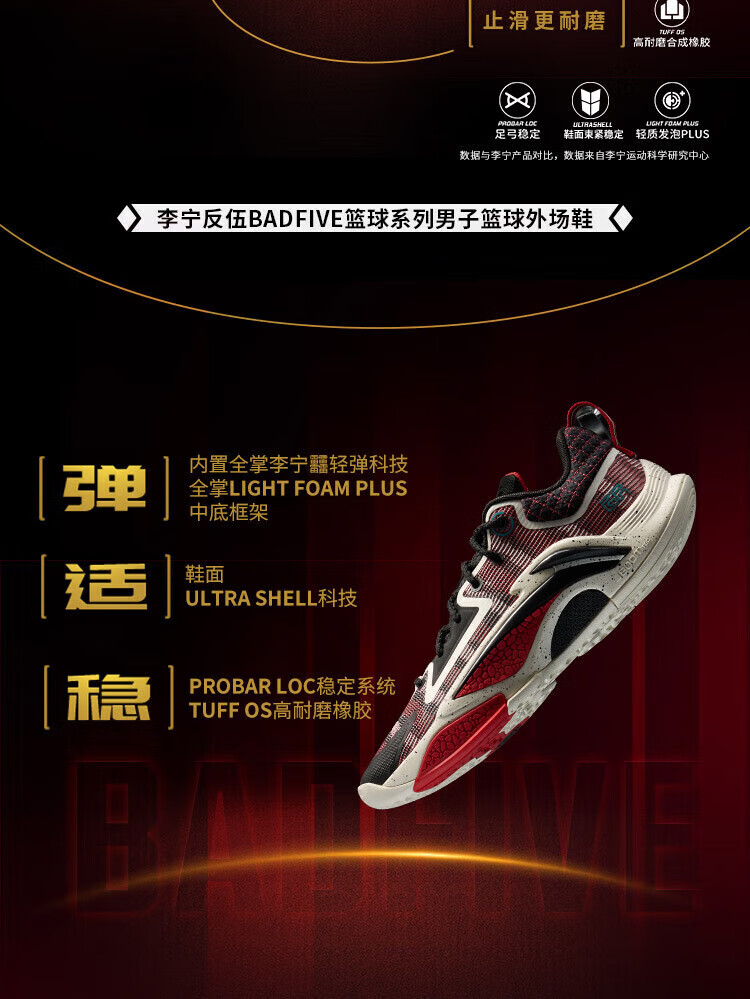 李宁反伍BADFIVE追猎1篮球鞋低帮男鞋2024新款回弹运动鞋子 ABFV003