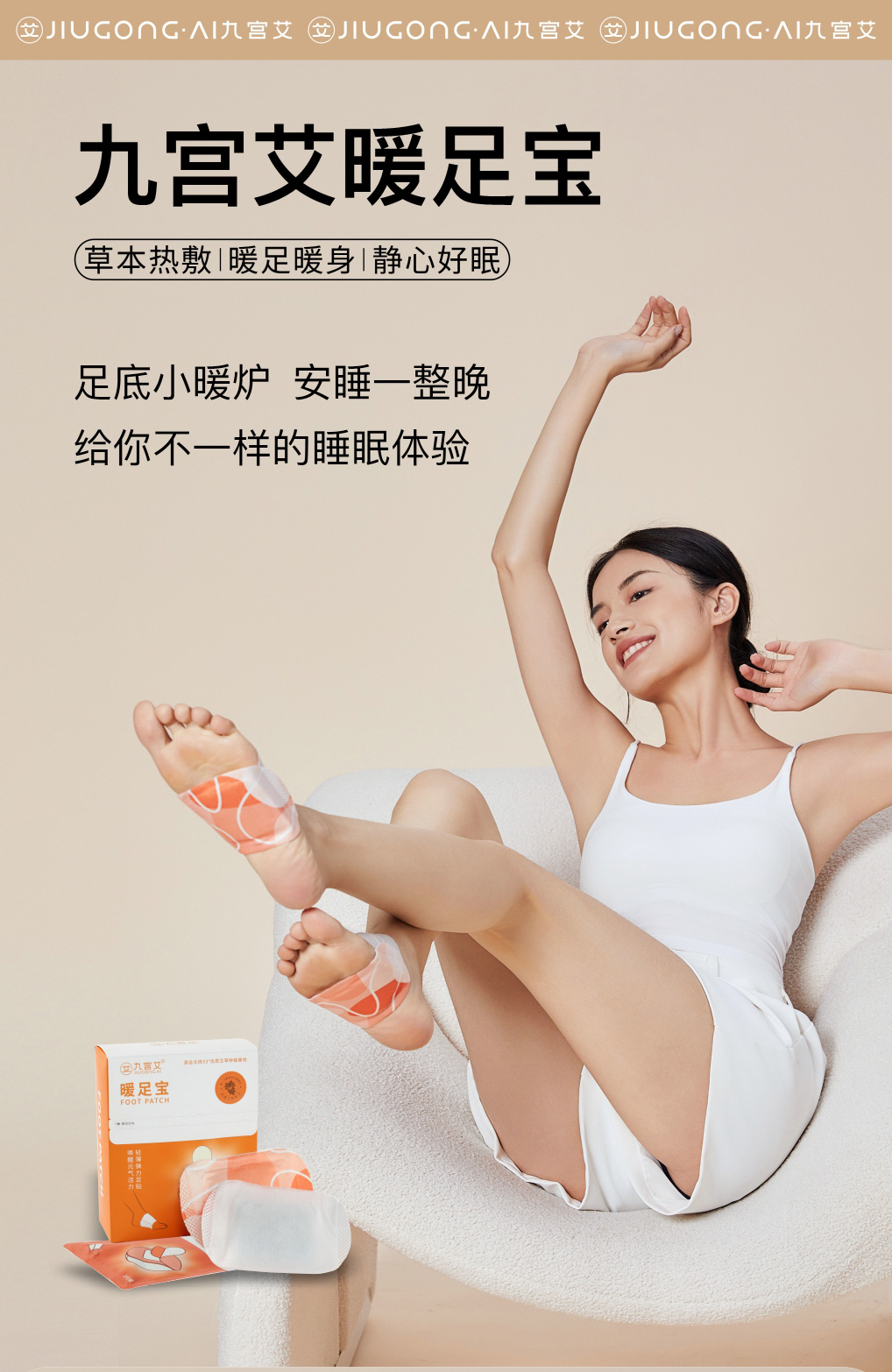 九宫艾艾草暖足贴暖脚神器脚底发热睡觉被窝暖脚宝办公室保暖