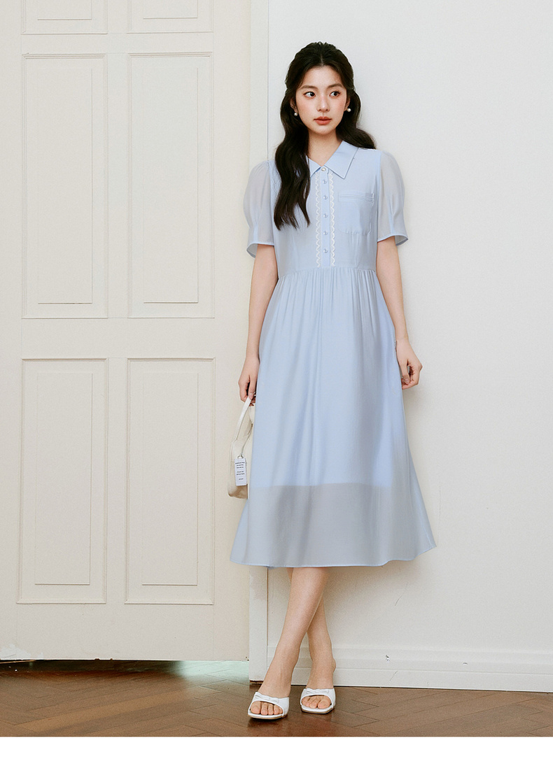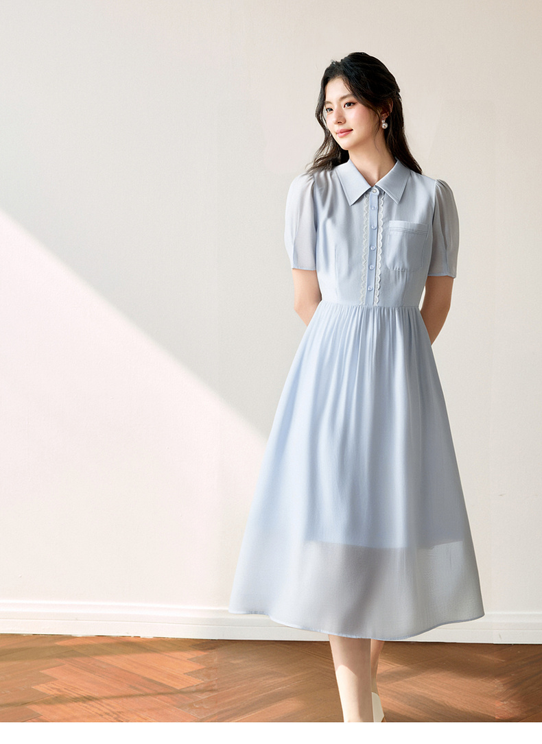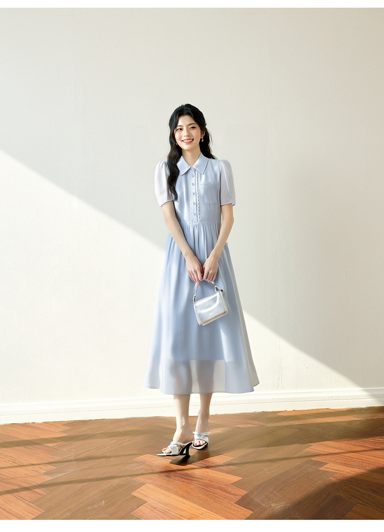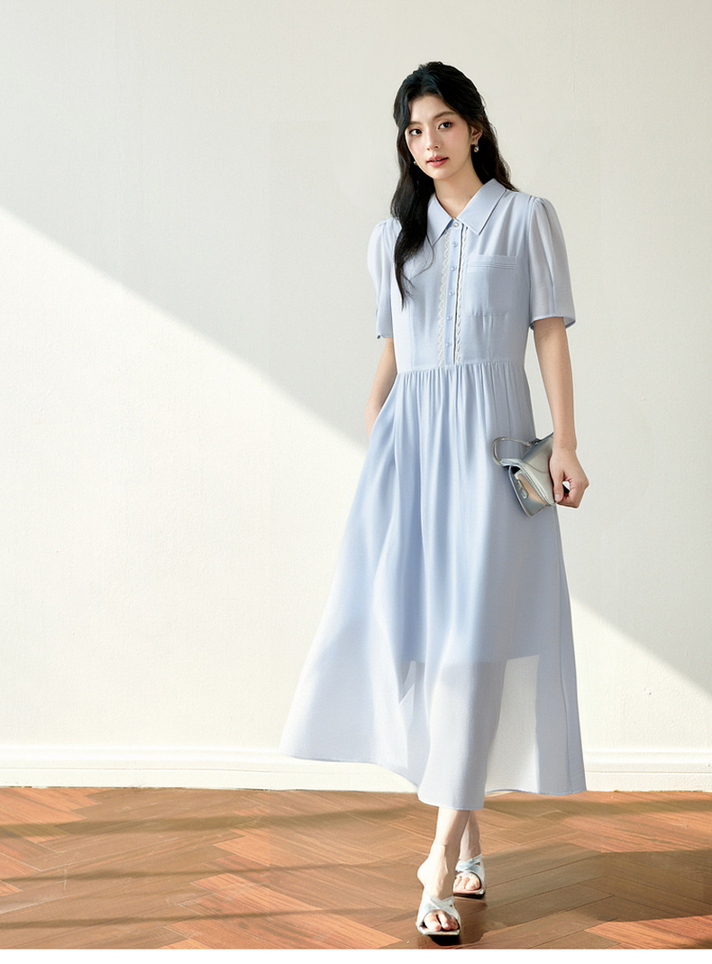 【商场同款】诗凡黎学院风衬衫裙2025秋新款花边领裙子3G7191341