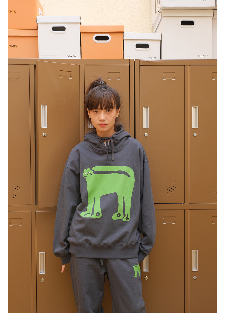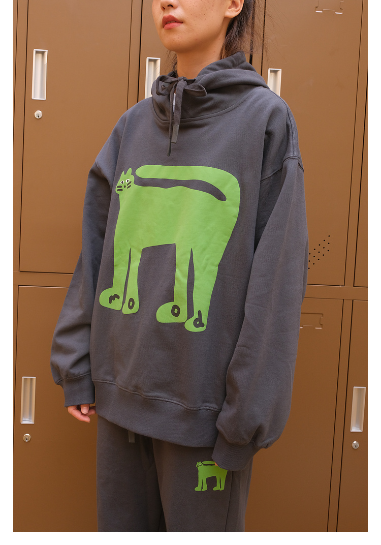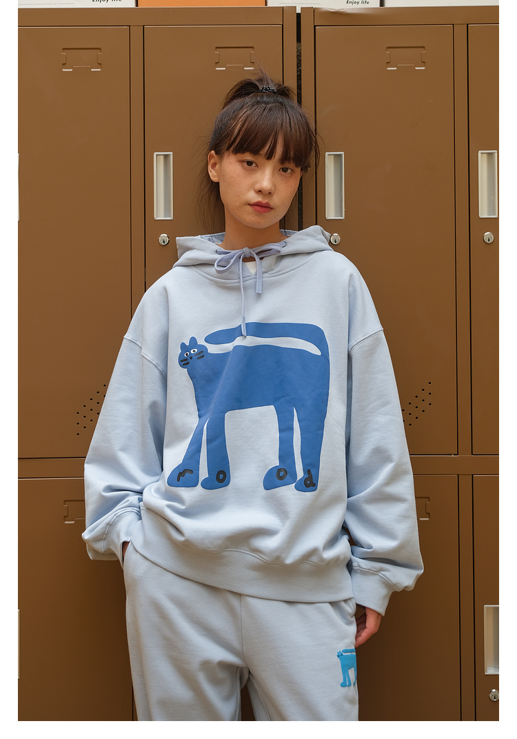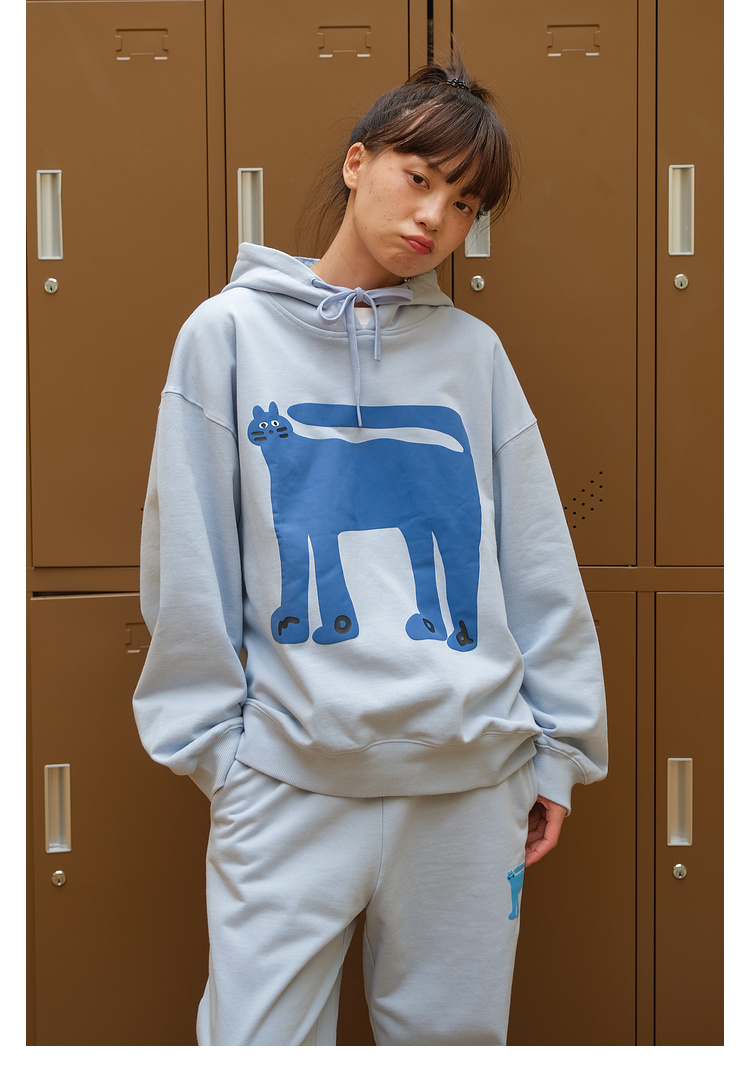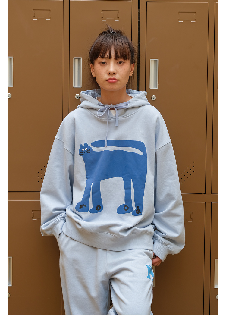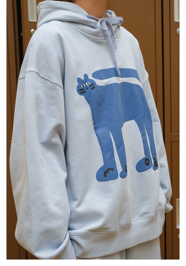 Mood Like Me/MWY2366/翘尾猫咪手绘发泡印花连帽卫衣
