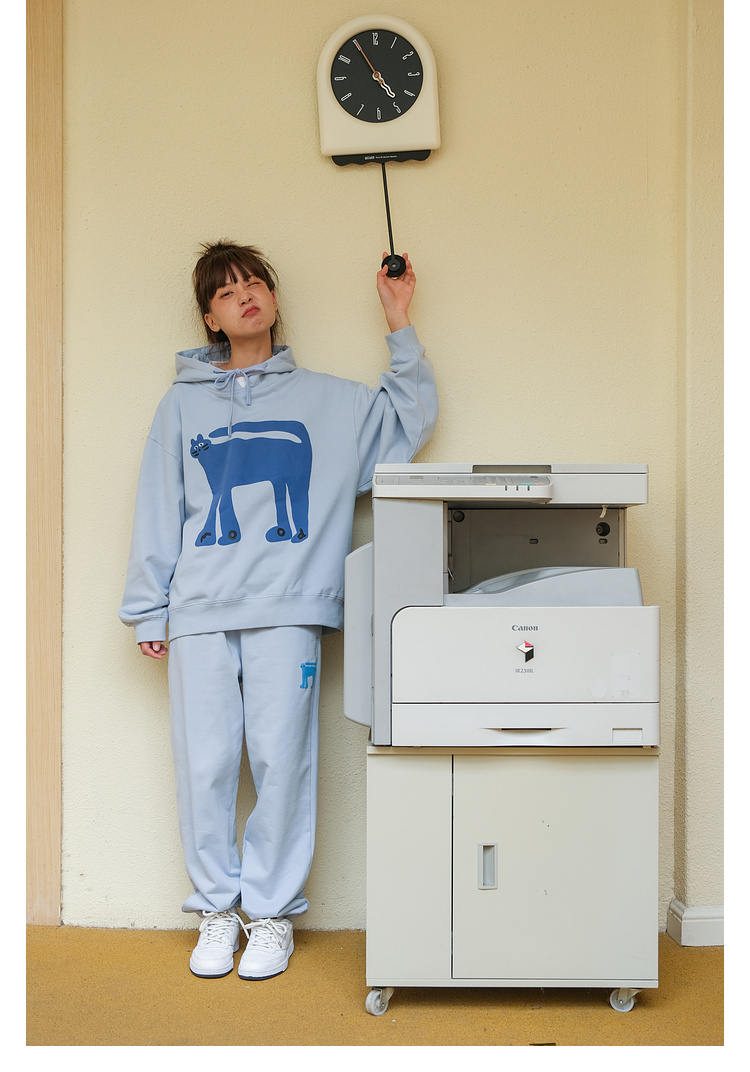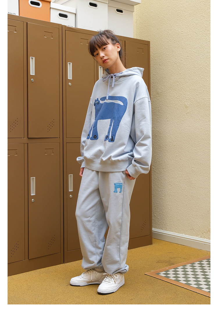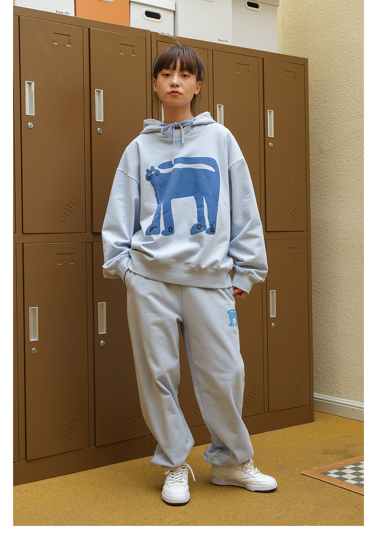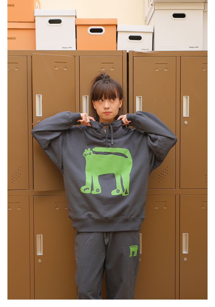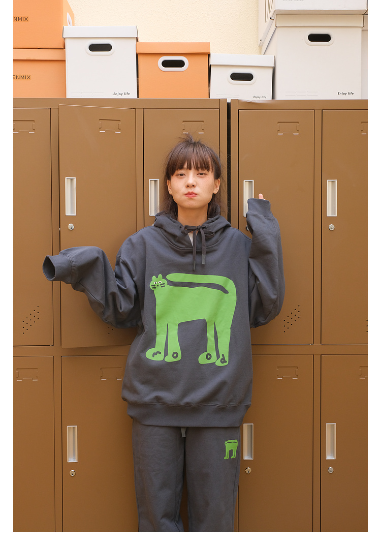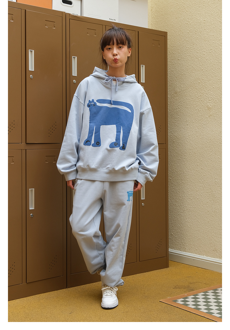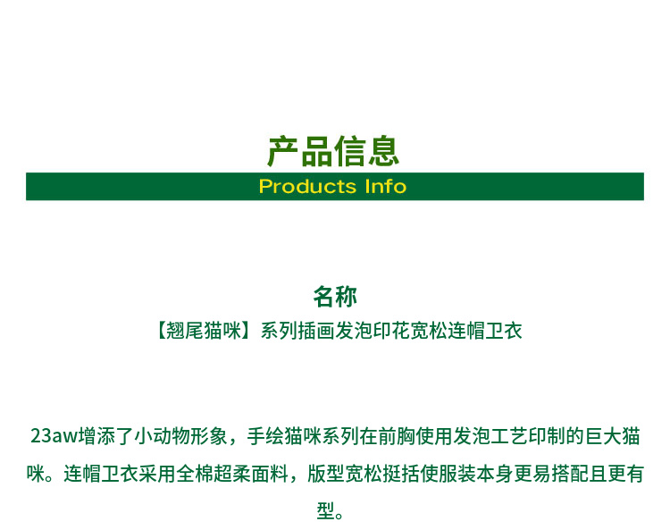 Mood Like Me/MWY2366/翘尾猫咪手绘发泡印花连帽卫衣
