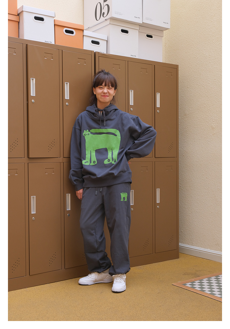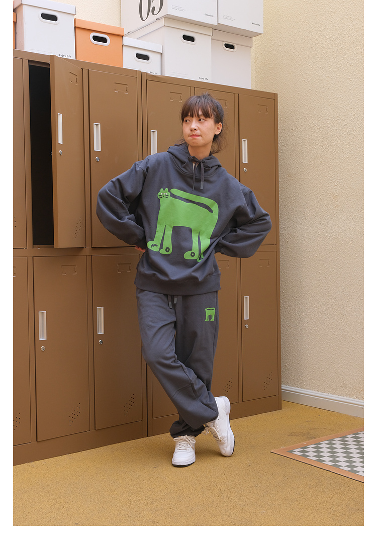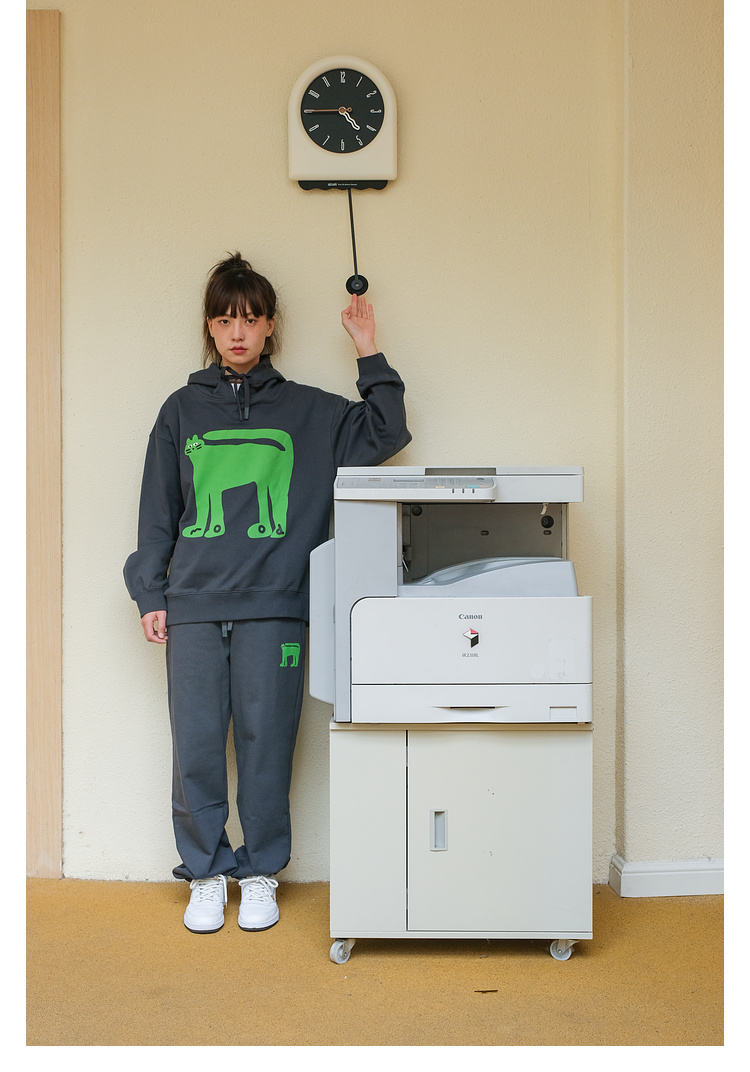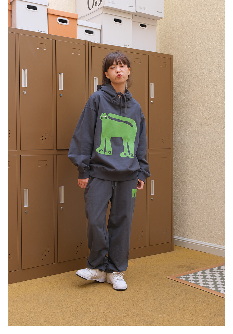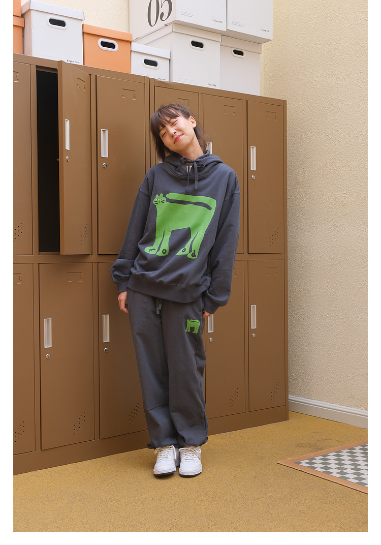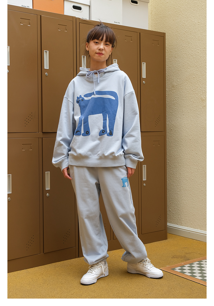 Mood Like Me/MWY2366/翘尾猫咪手绘发泡印花连帽卫衣