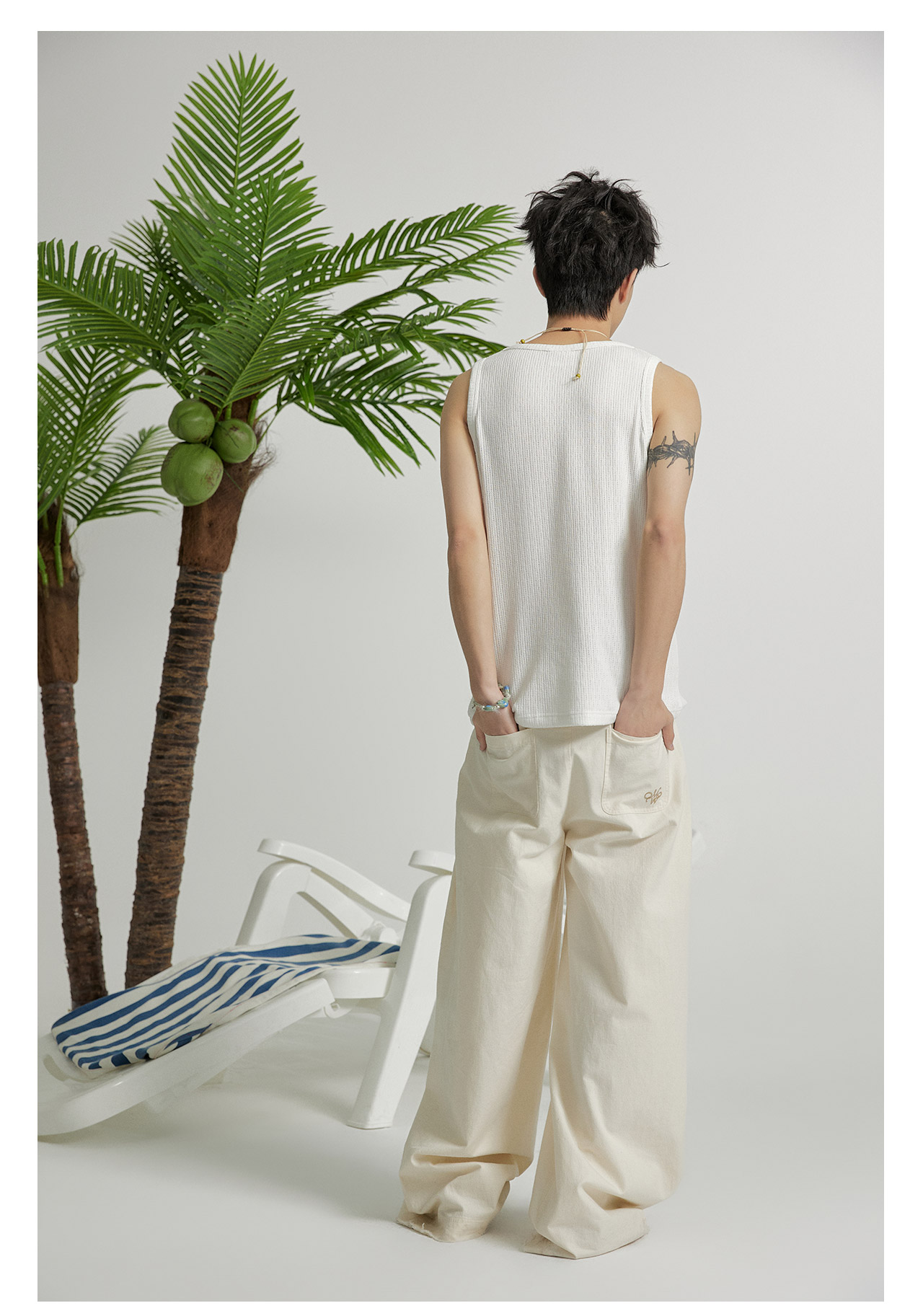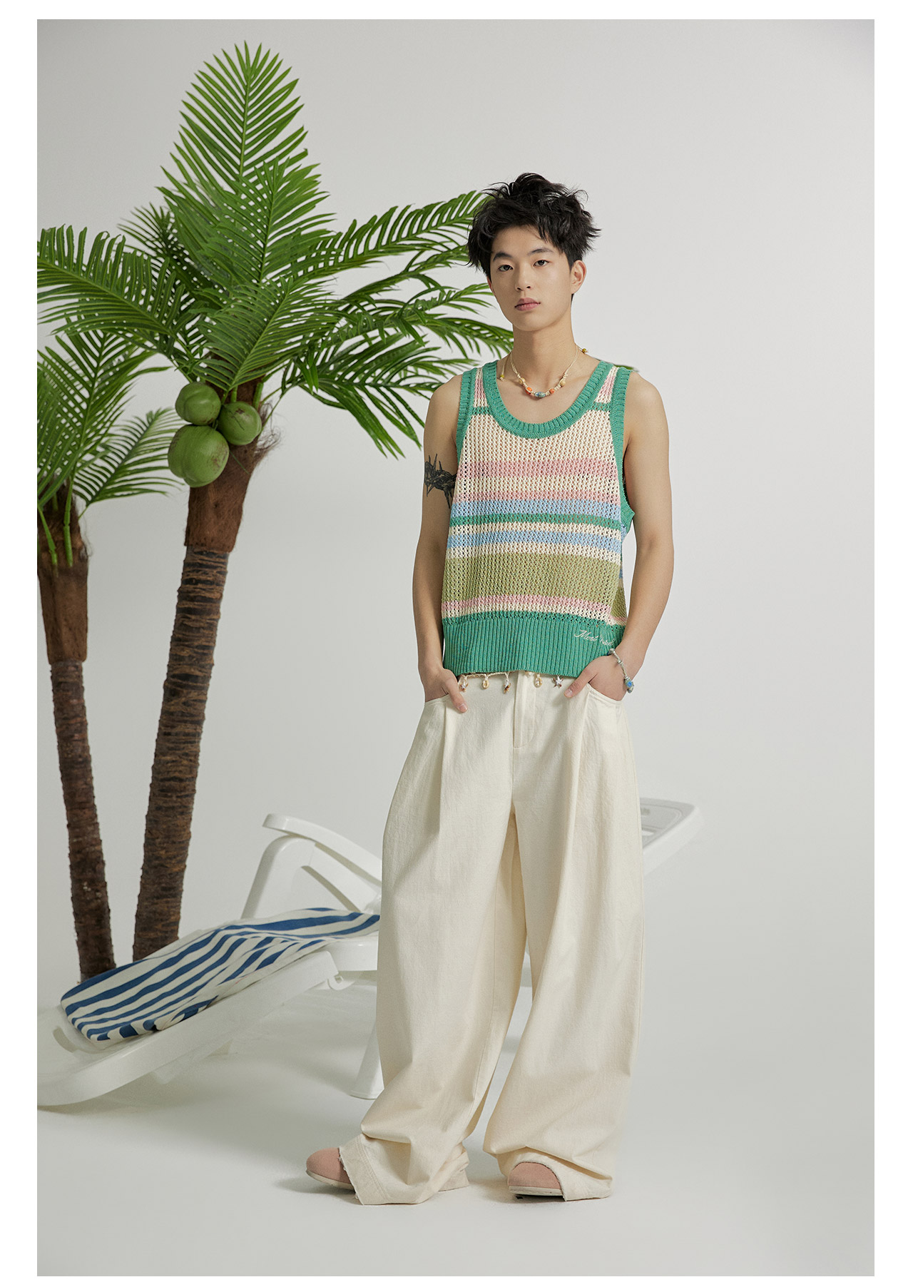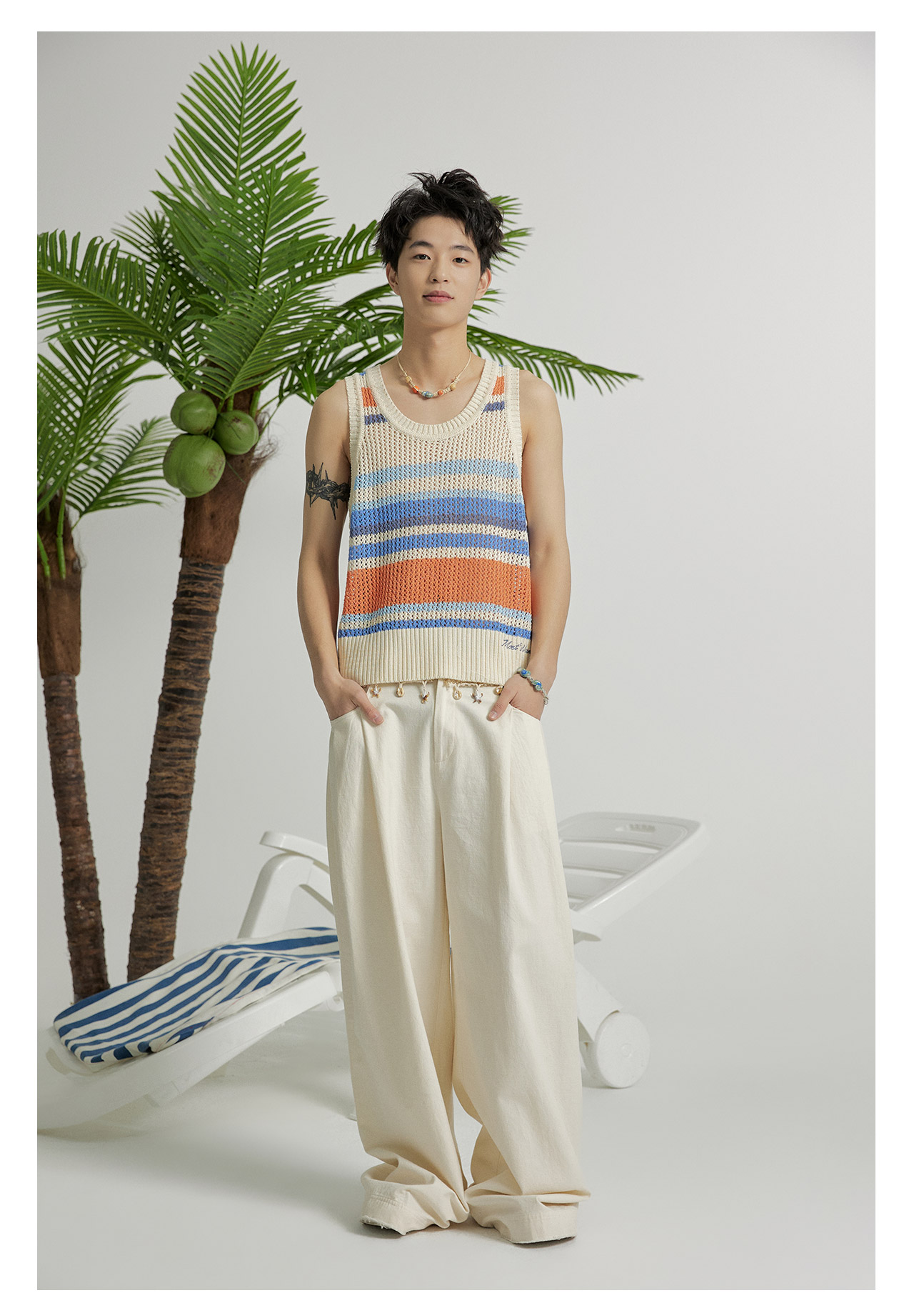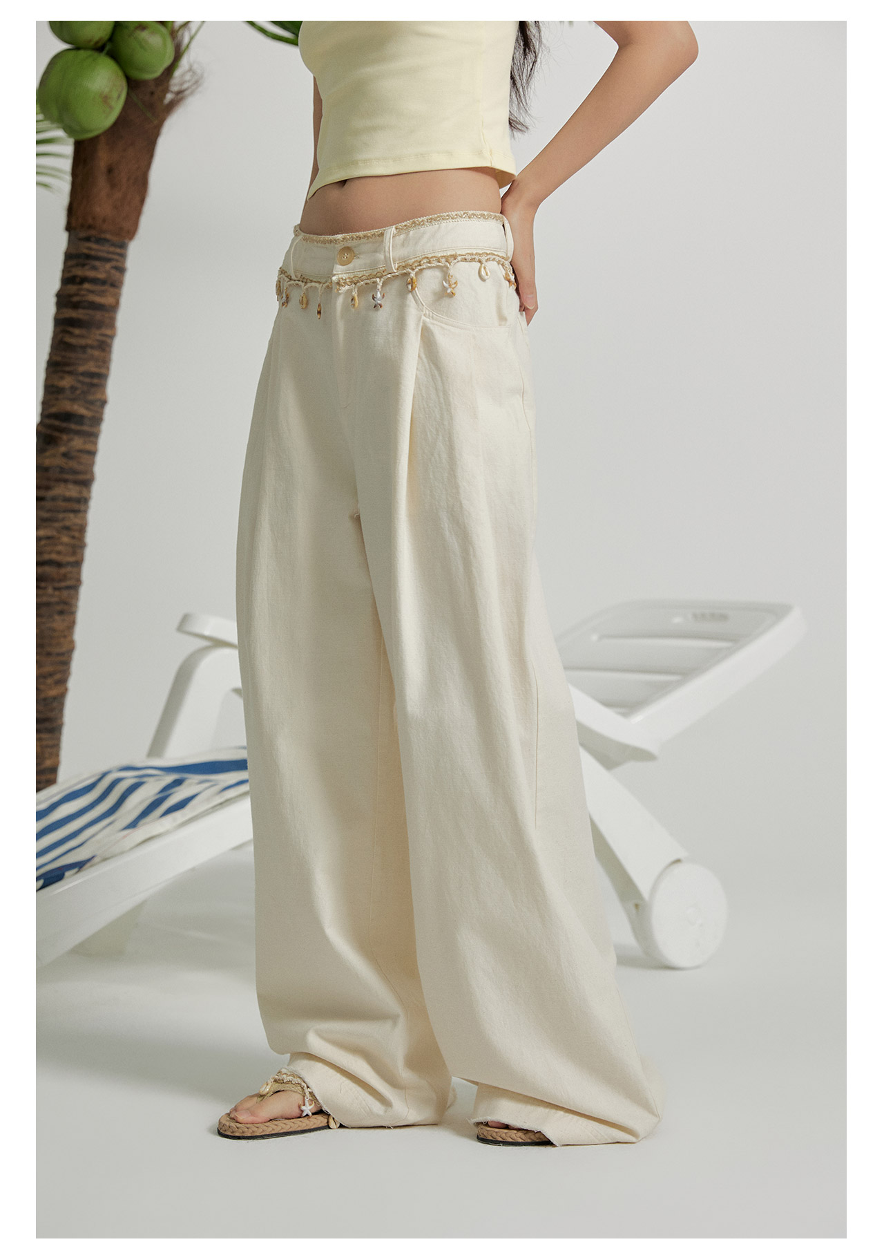 mostwantedlab彩虹/M2412164/原胚亚麻阔腿裤