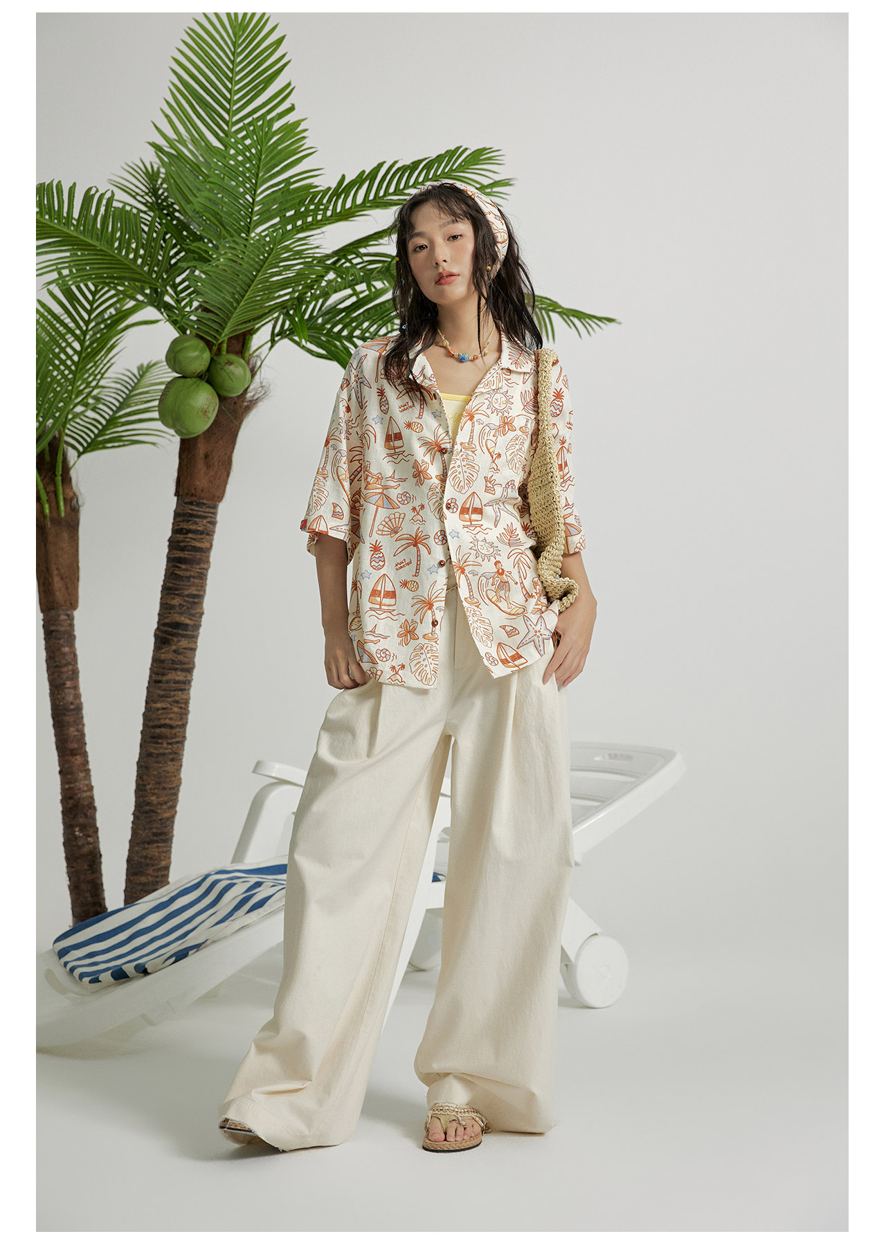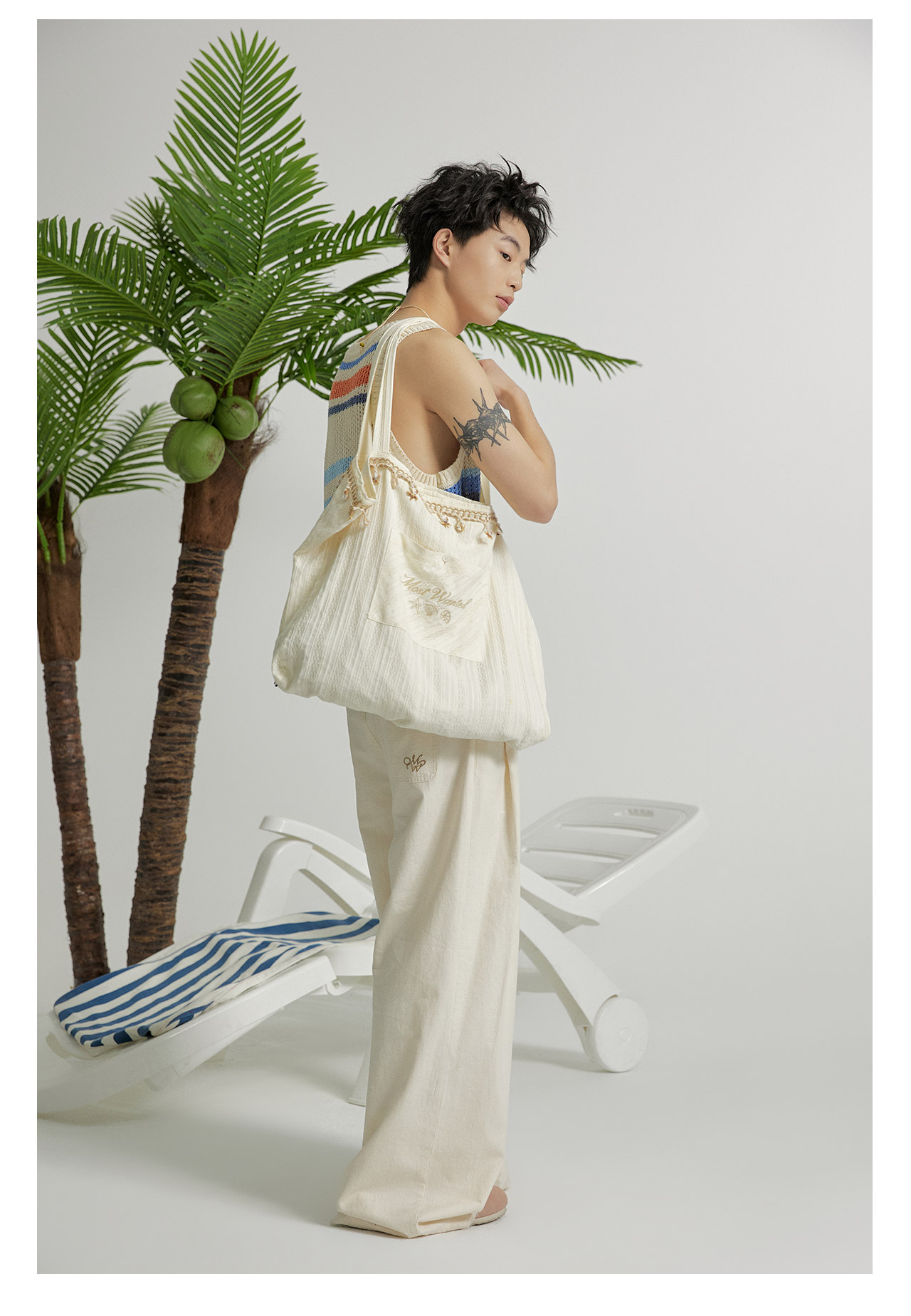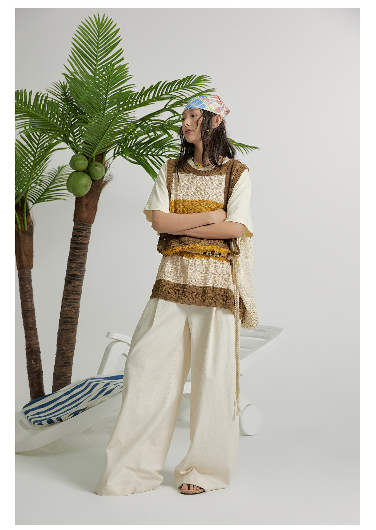 mostwantedlab彩虹/M2412164/原胚亚麻阔腿裤