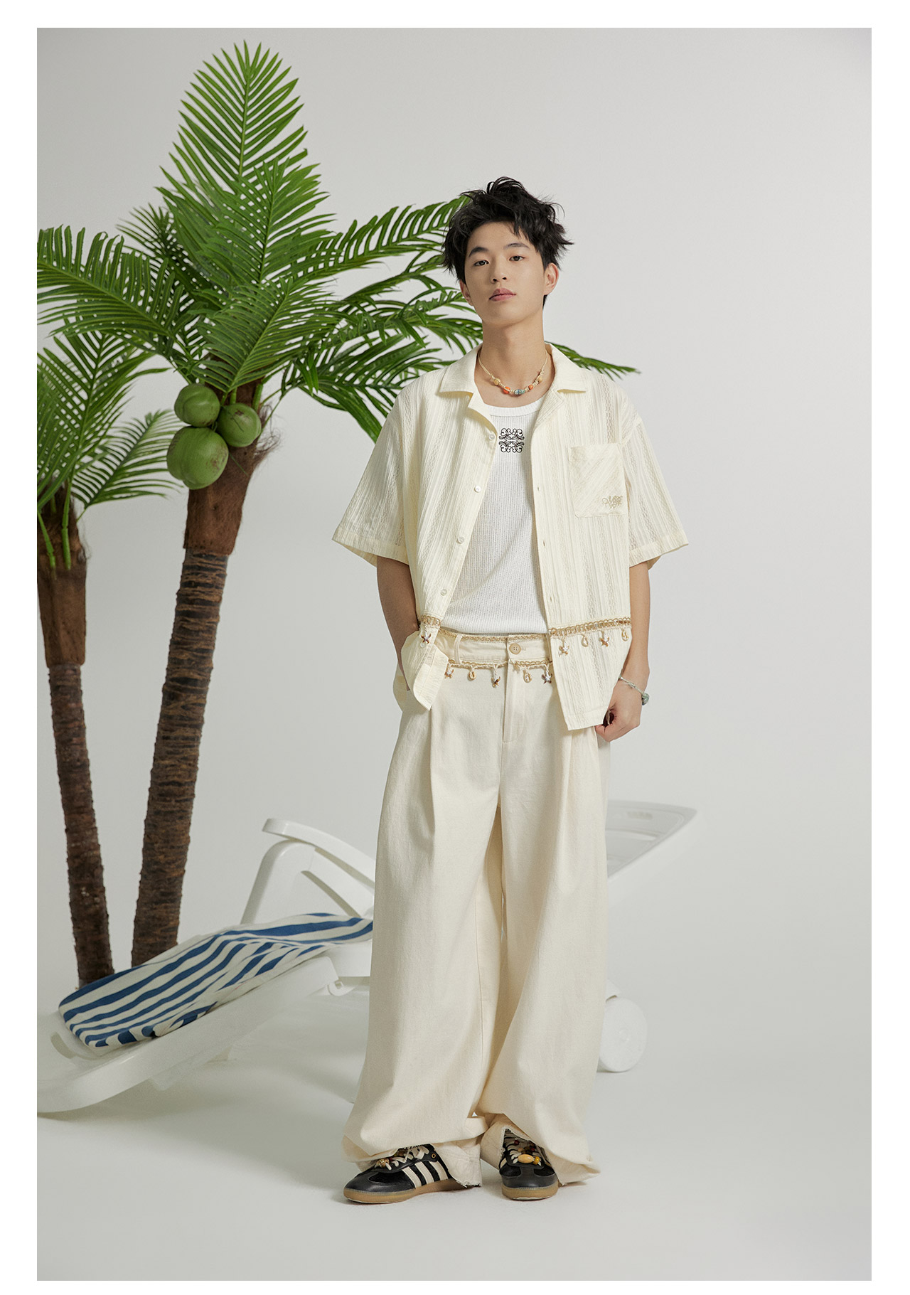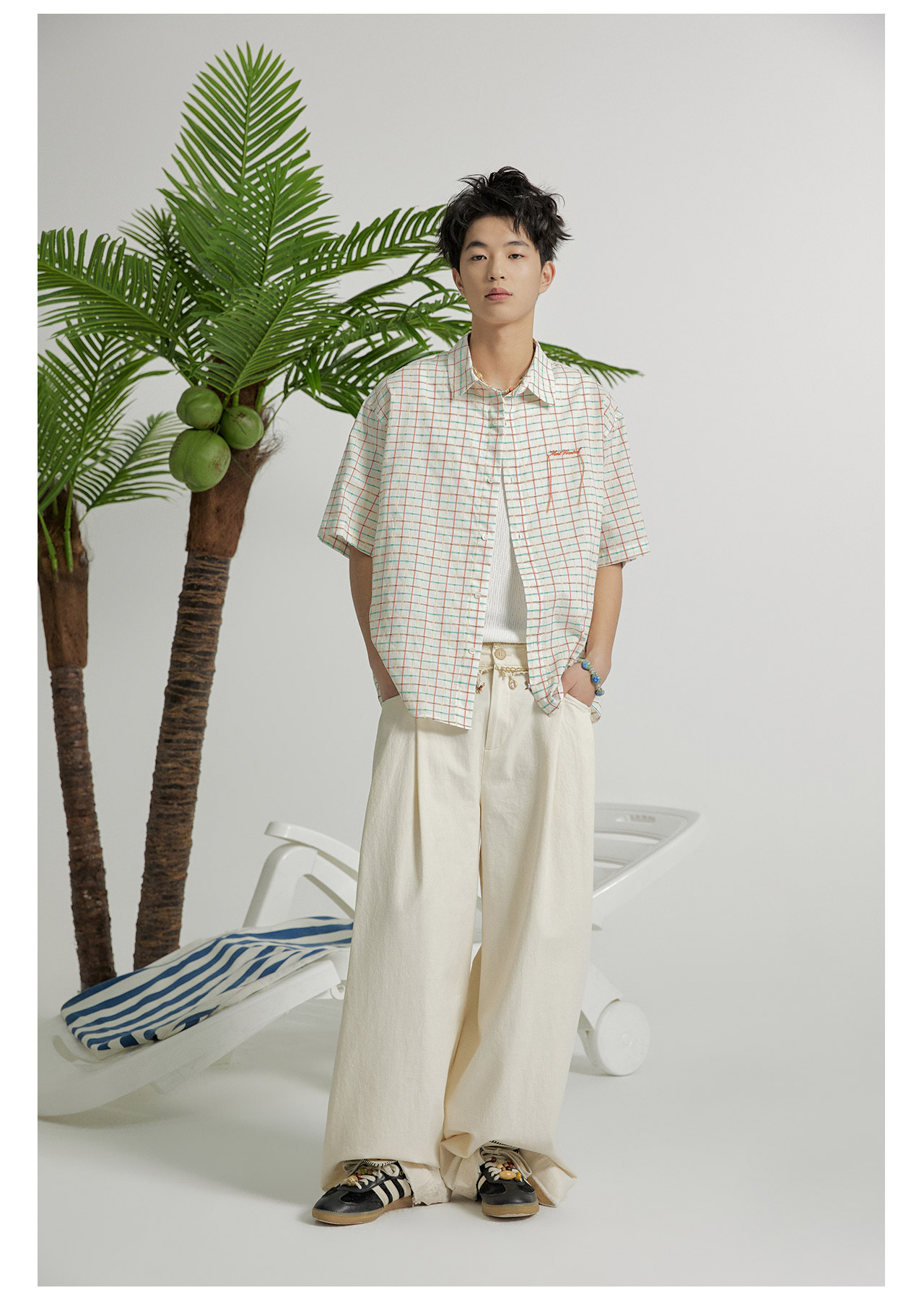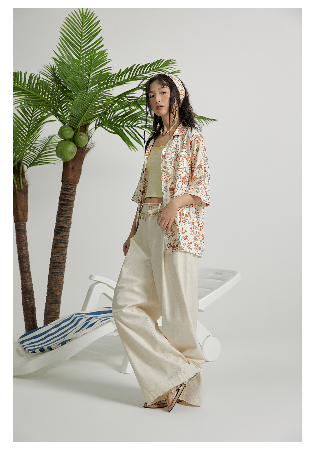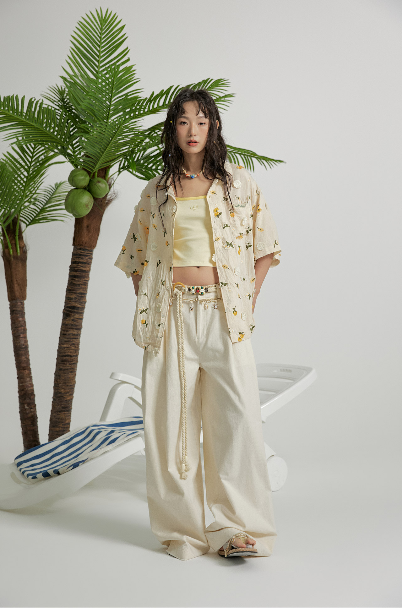 mostwantedlab彩虹/M2412164/原胚亚麻阔腿裤