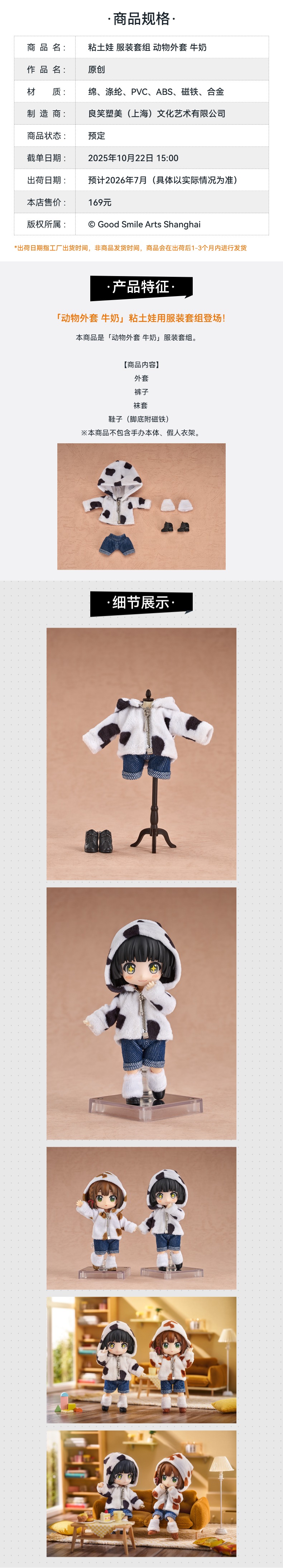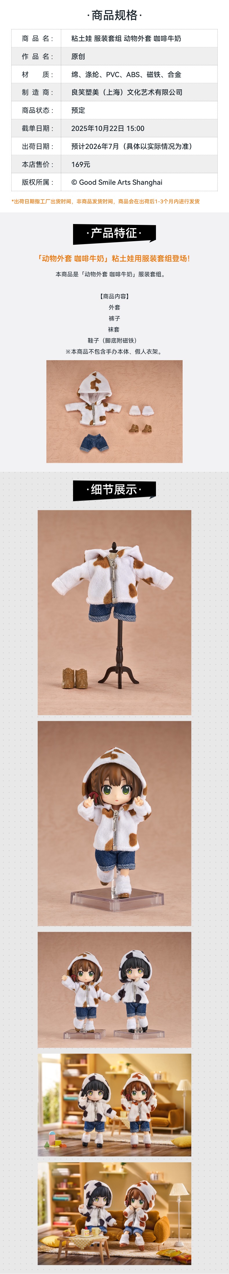 【GSC预售定金】粘土娃 服装套组 动物外套 咖啡牛奶/牛奶