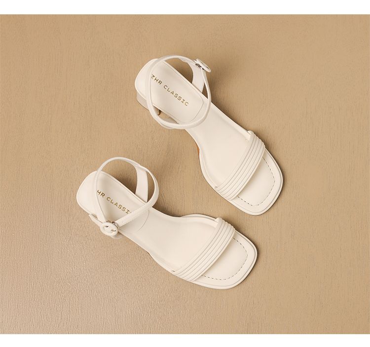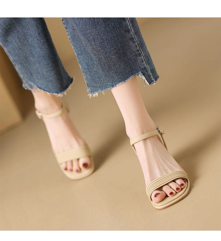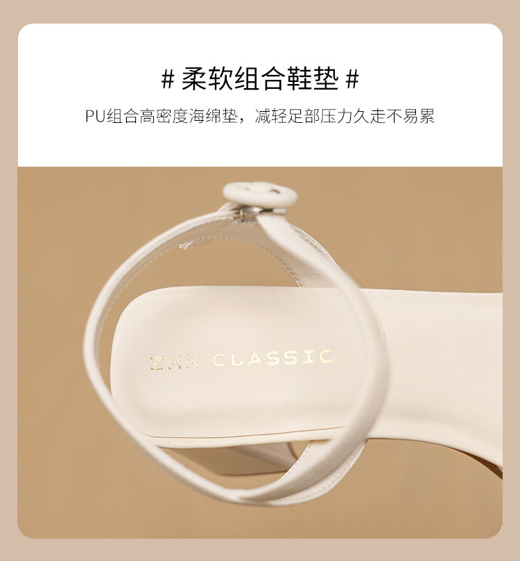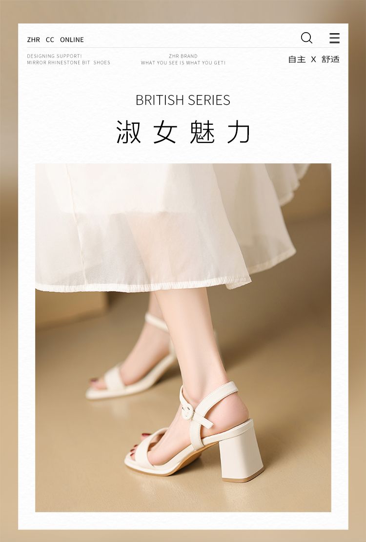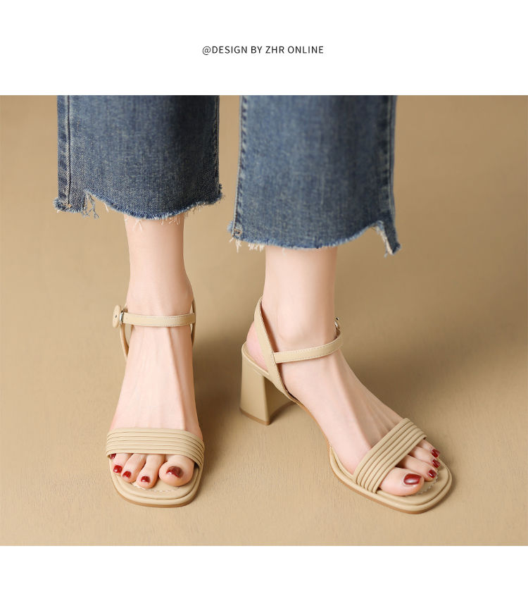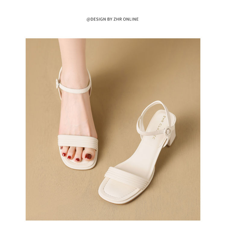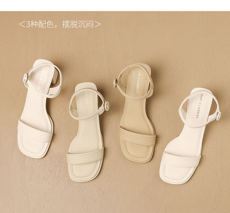 ZHR则则一字带粗跟凉鞋女2024夏季新款休闲百搭时装凉鞋通勤单鞋