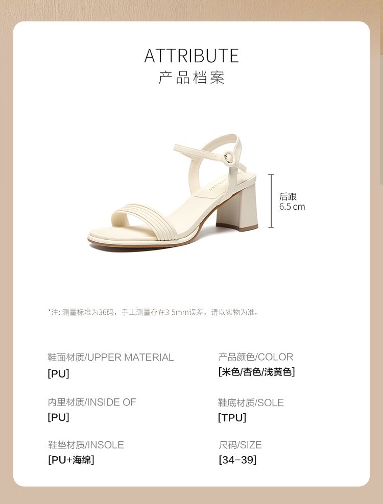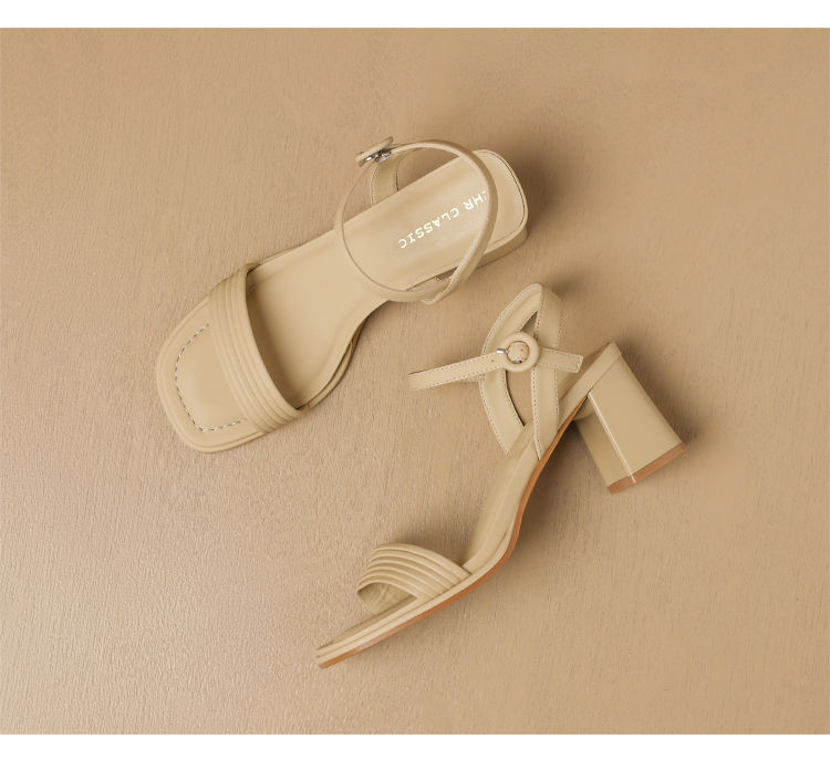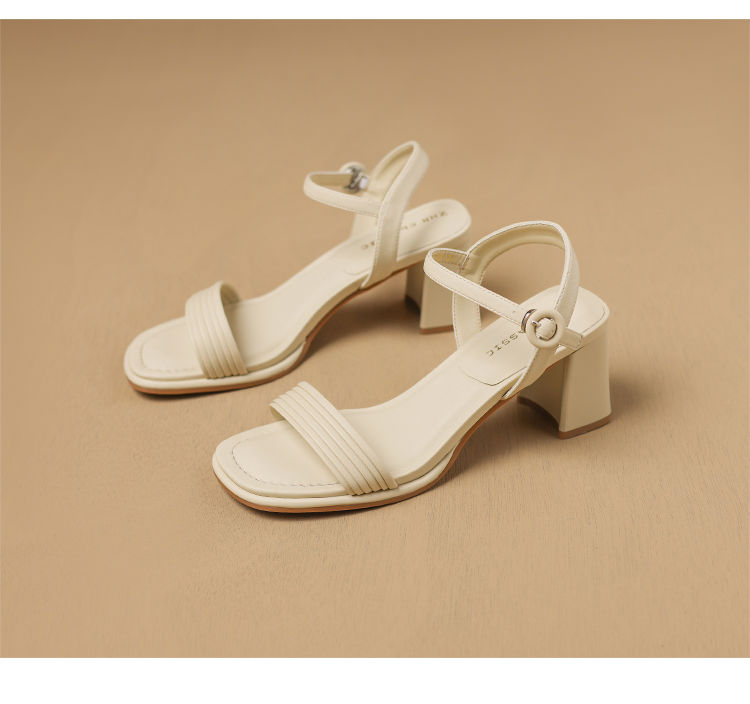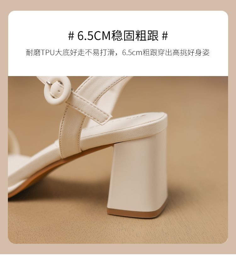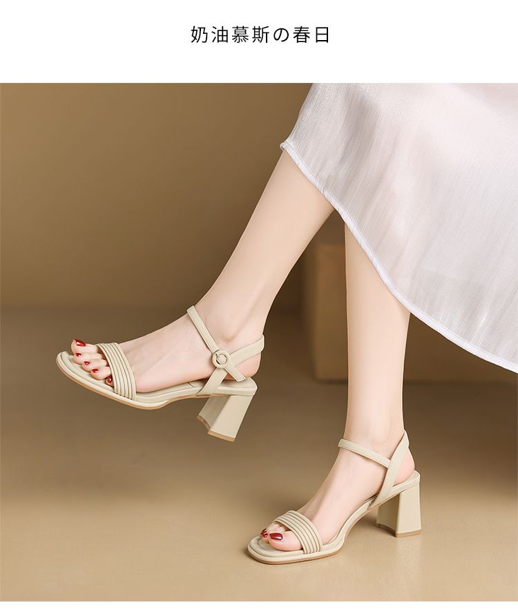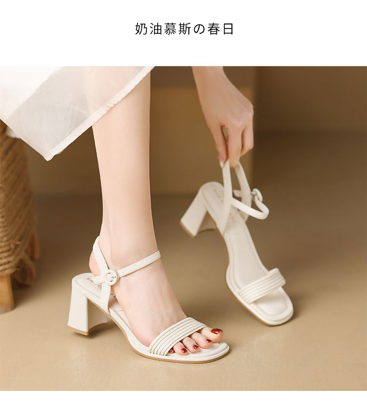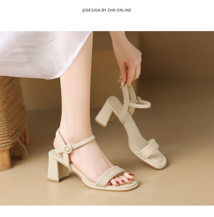 ZHR则则一字带粗跟凉鞋女2024夏季新款休闲百搭时装凉鞋通勤单鞋