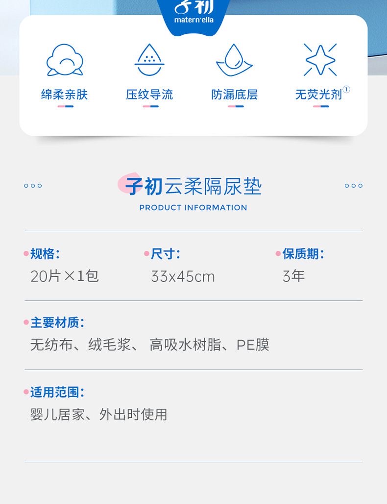 子初 云柔隔尿垫 33*45cm 50片/包,20片/包