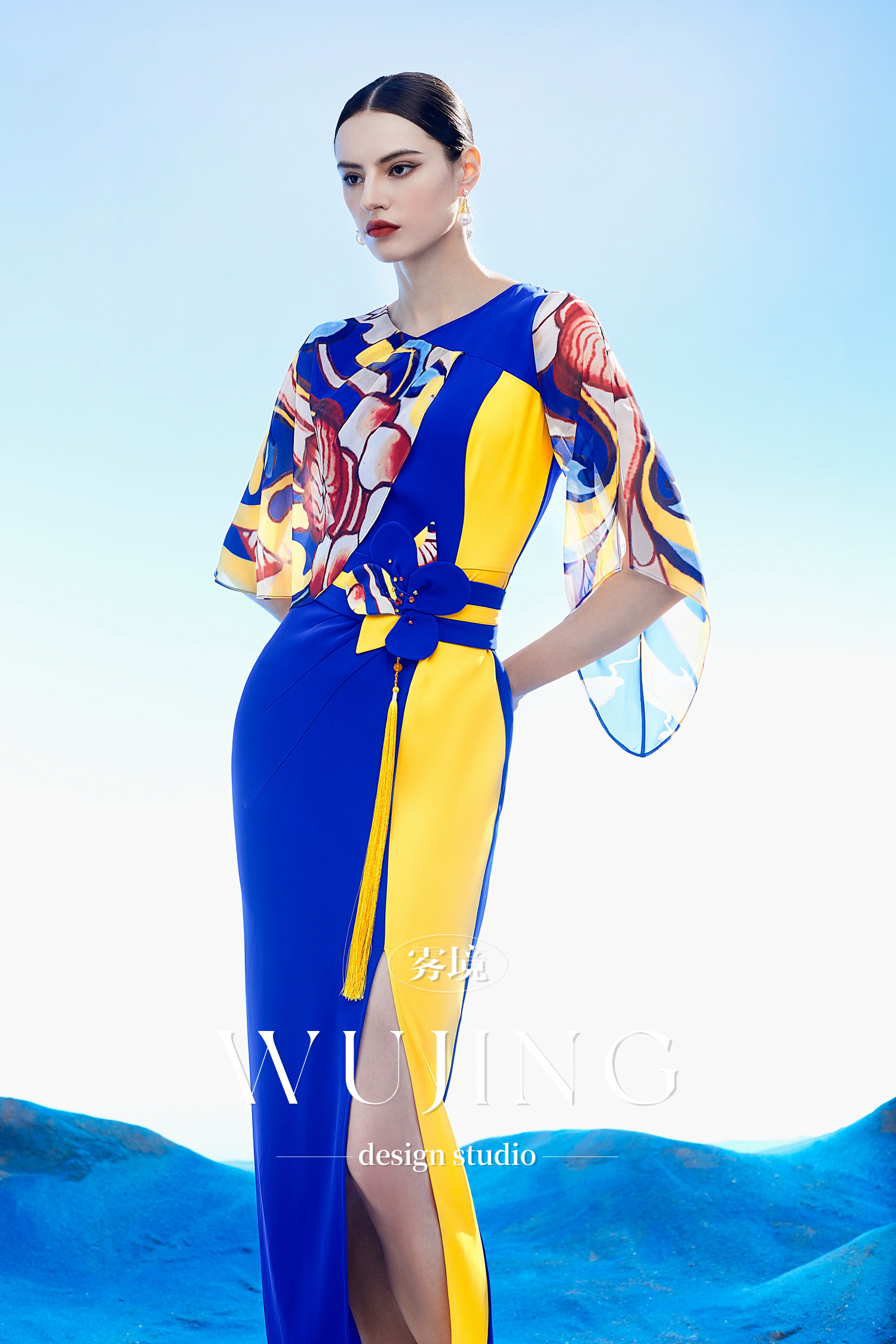 3204011 扶光莲雾 韩国进口水晶乔其纱进口纹理蜂窝缎连衣裙 雾境
