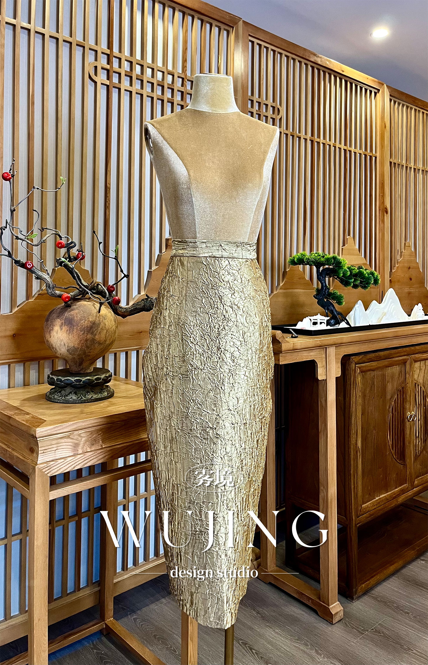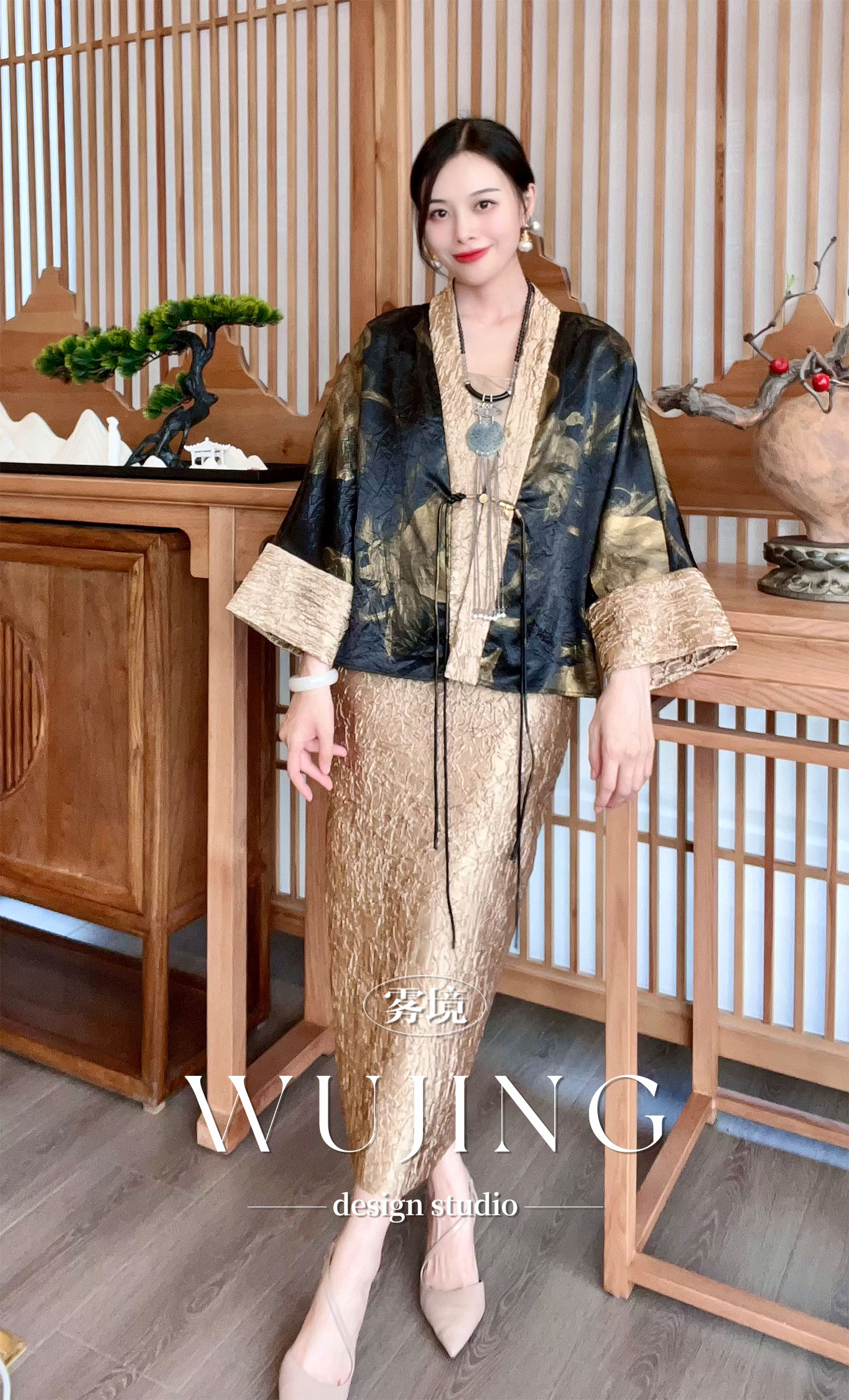 【雾境定制】浮花疏影系列华贵老钱风金属肌理半裙 3204058