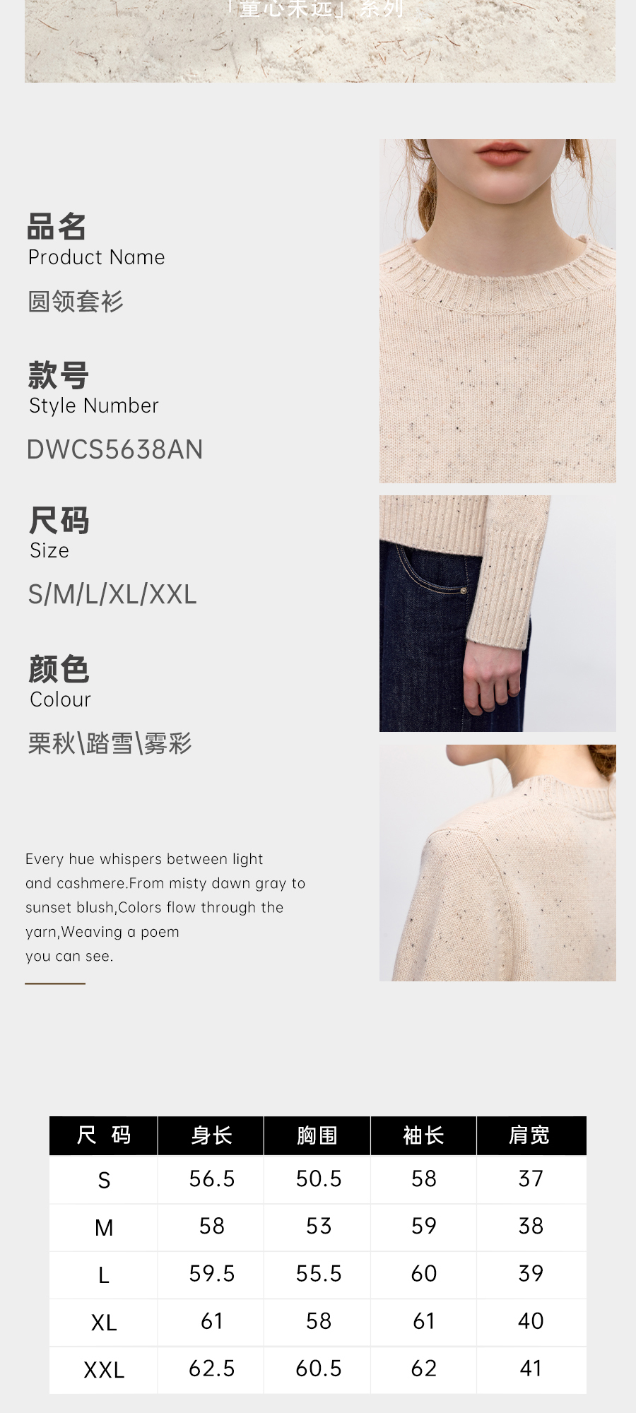 东黎•童心未远 香草曲奇 山羊绒女士冬季圆领套衫 5638