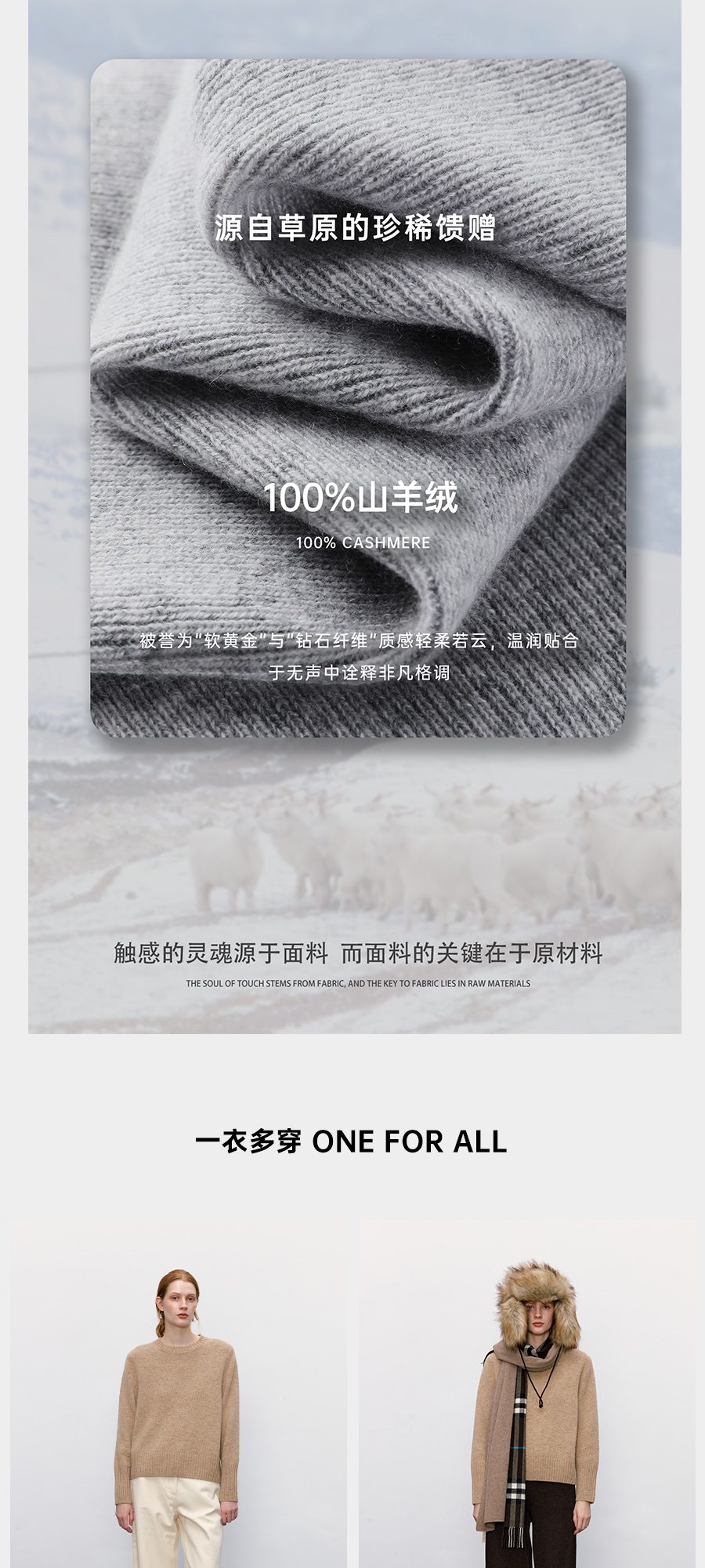 东黎羊绒是赤峰东荣集团自主品牌,自有牧场/羊绒制品全产业链优势,实现了羊绒从“牧场”到“商场”的华丽转变。