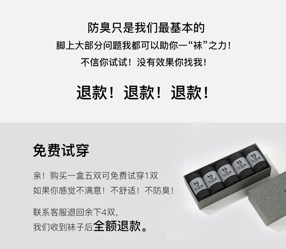 【温馨提示】收到后试穿一双无效果、不满意将剩余的原包装退回即可全额退款(建议一双可以试穿几天,明显能体验防臭效果)穿过的无需退回!