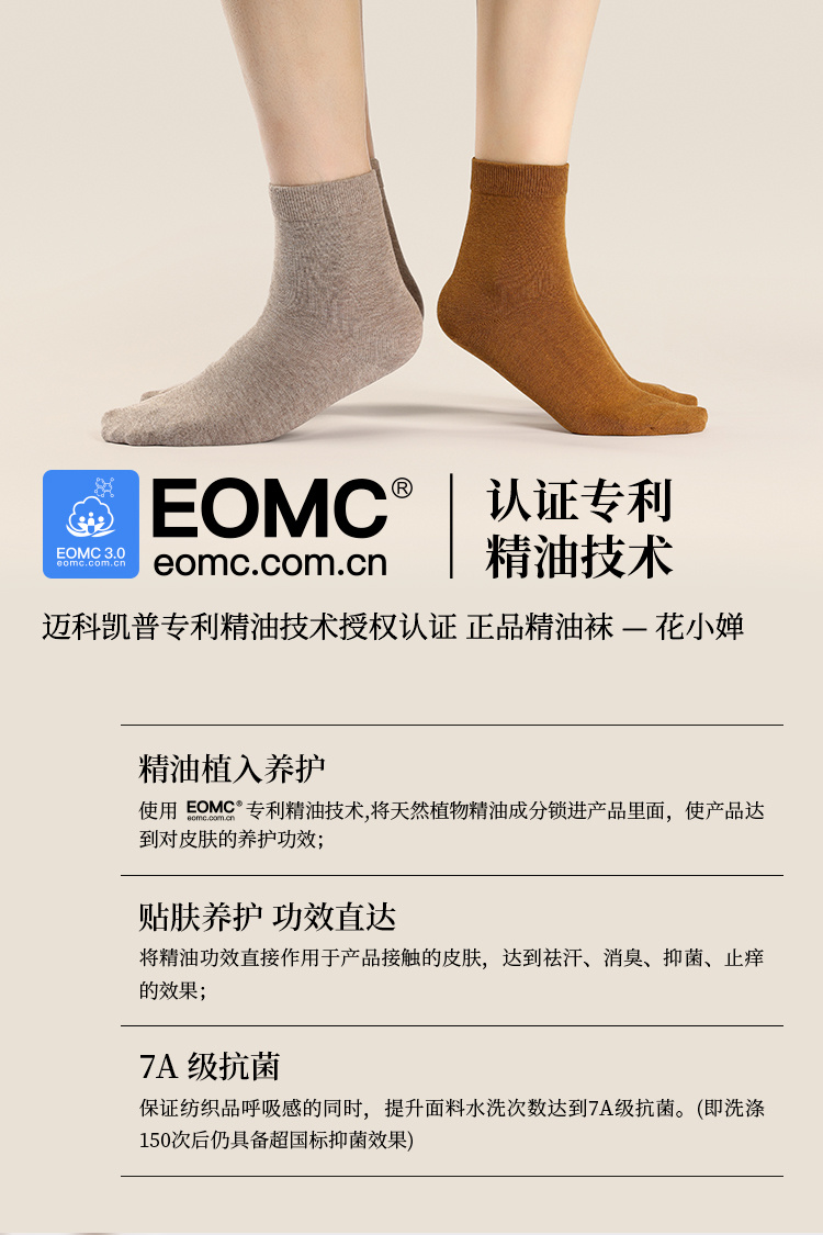 【工艺处理】EOMC精油技术 、一体缝头 、整袜莱卡 、头跟加固 、高弹面料