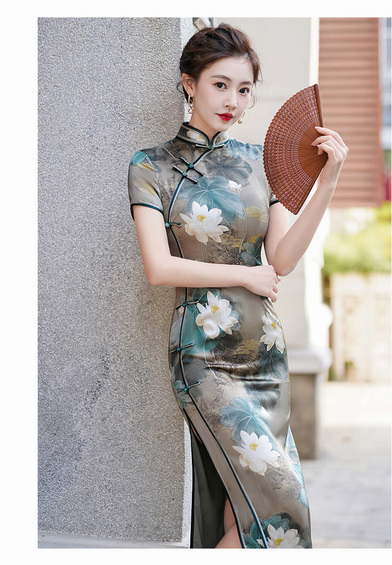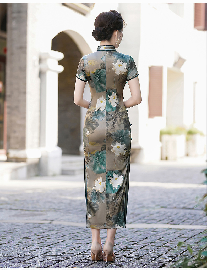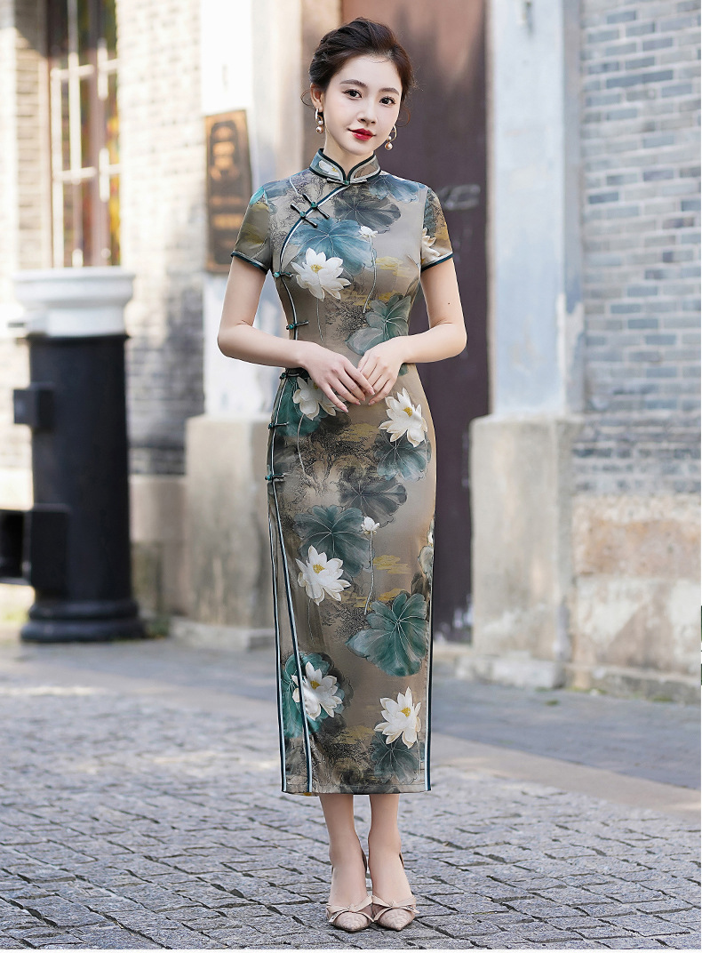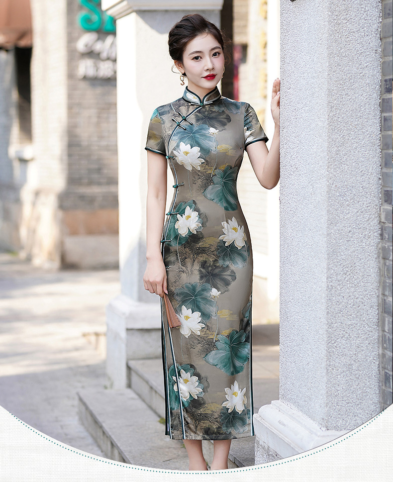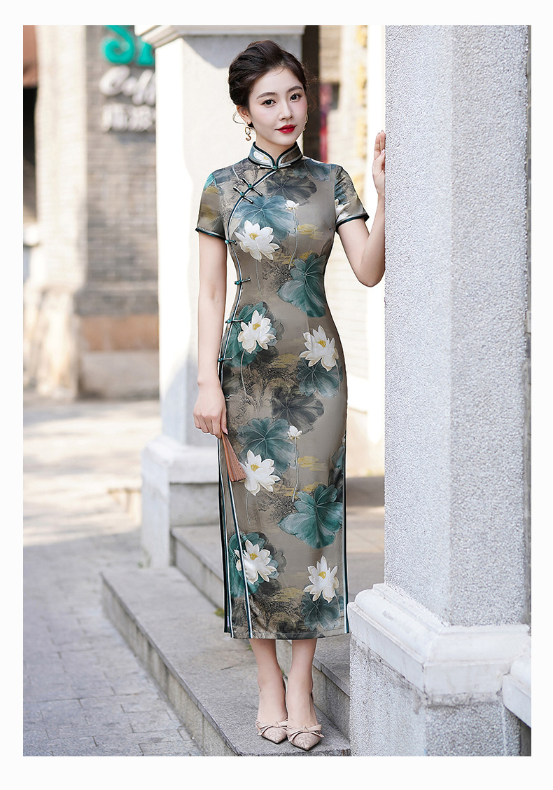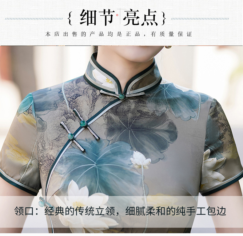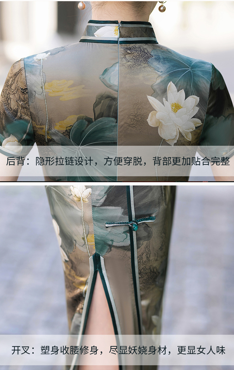改良修身,桑蚕丝短袖旗袍连衣裙WXG-037