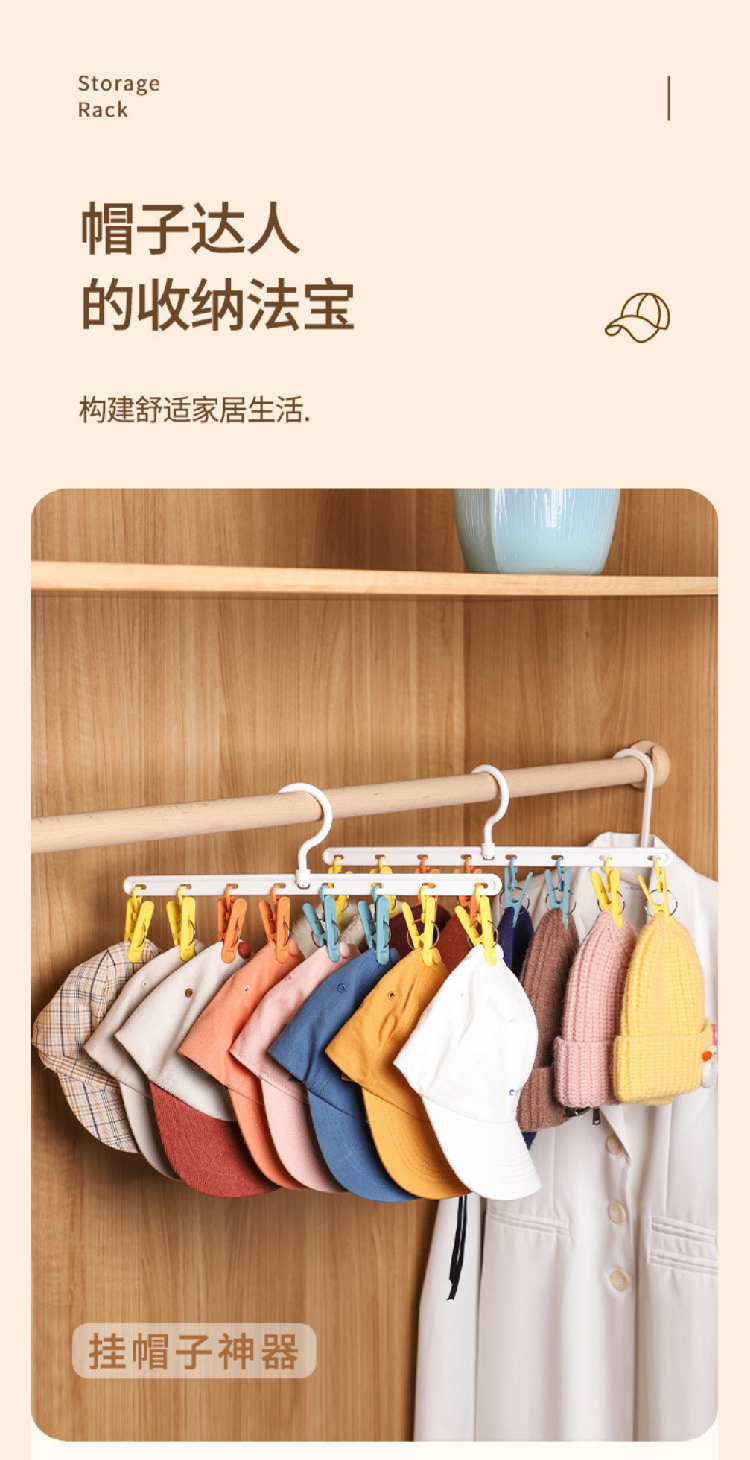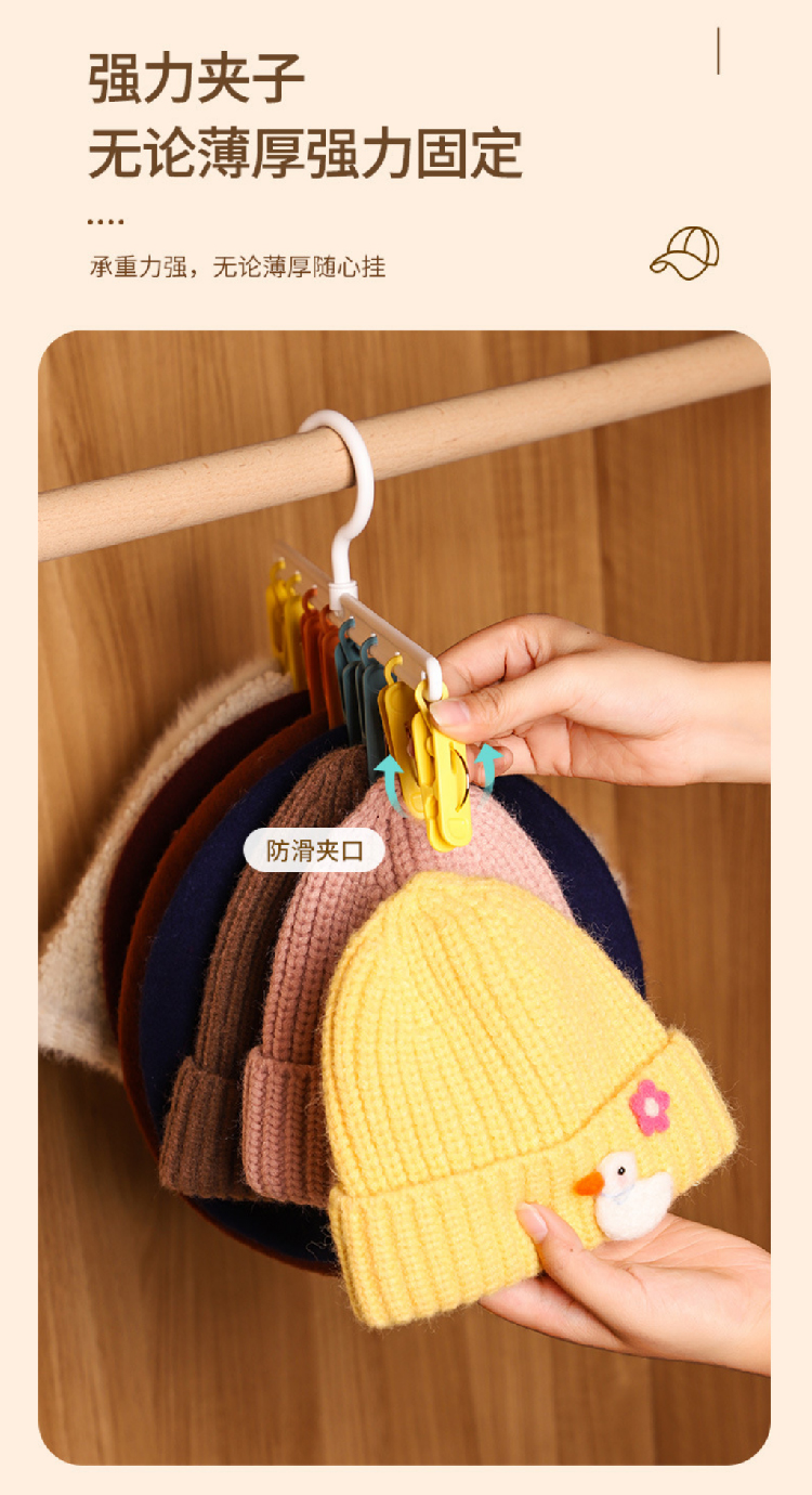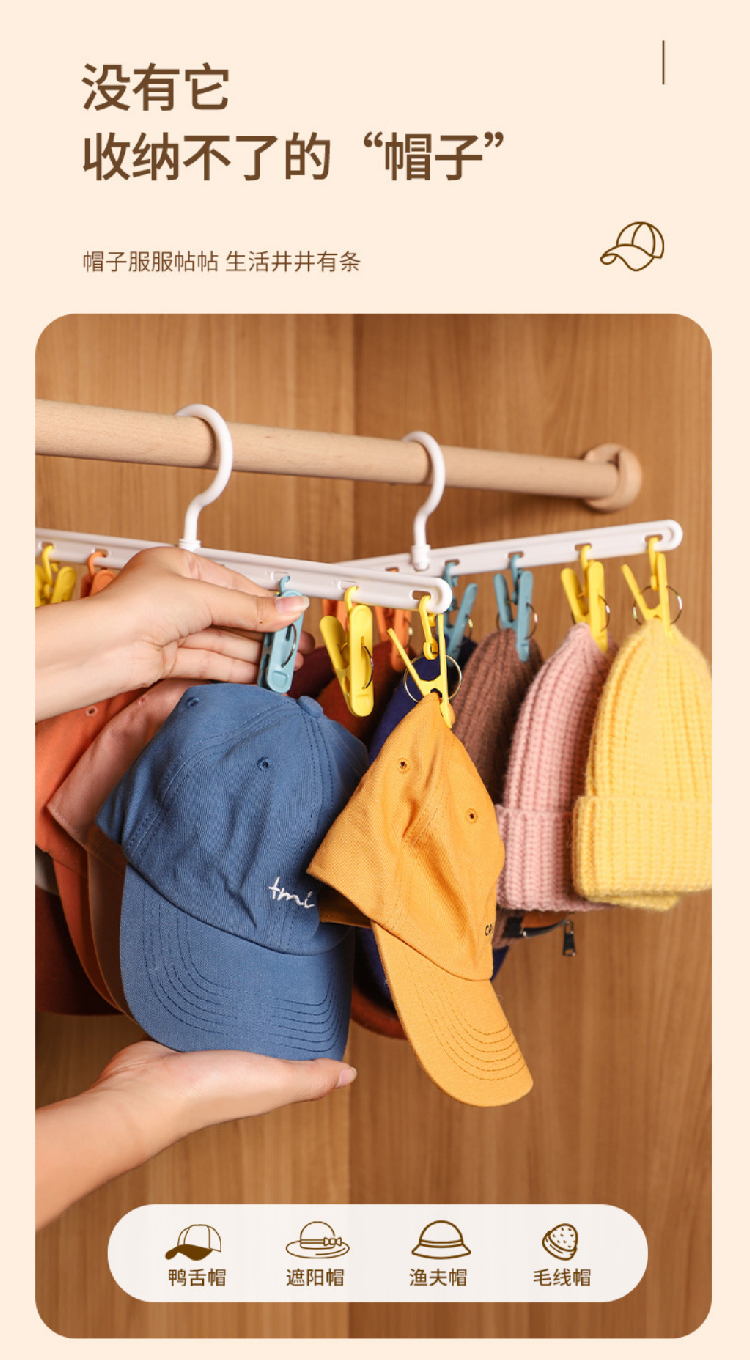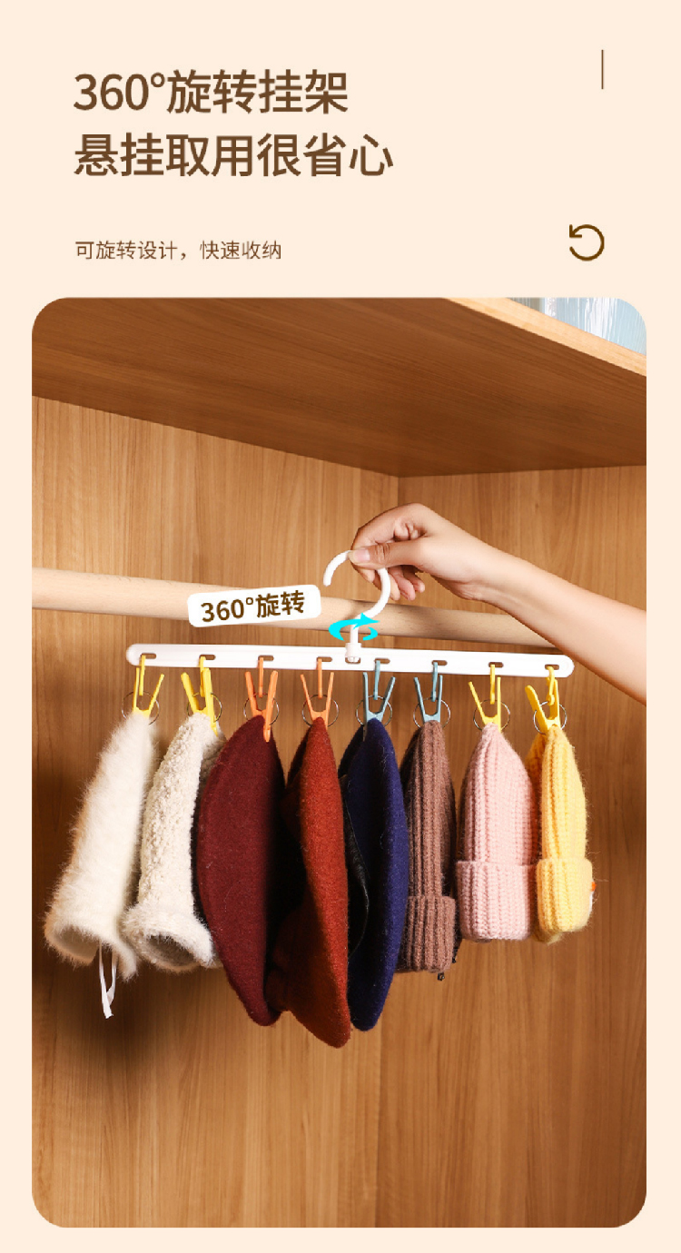【挂帽子收纳2排】免打孔挂钩多功能置物架 可旋转毛巾夹8个衣帽挂钩