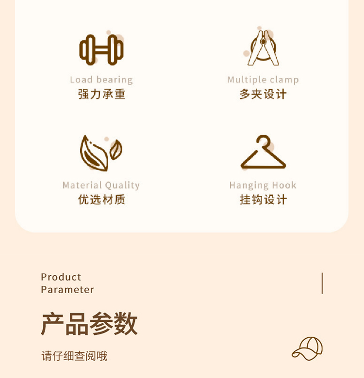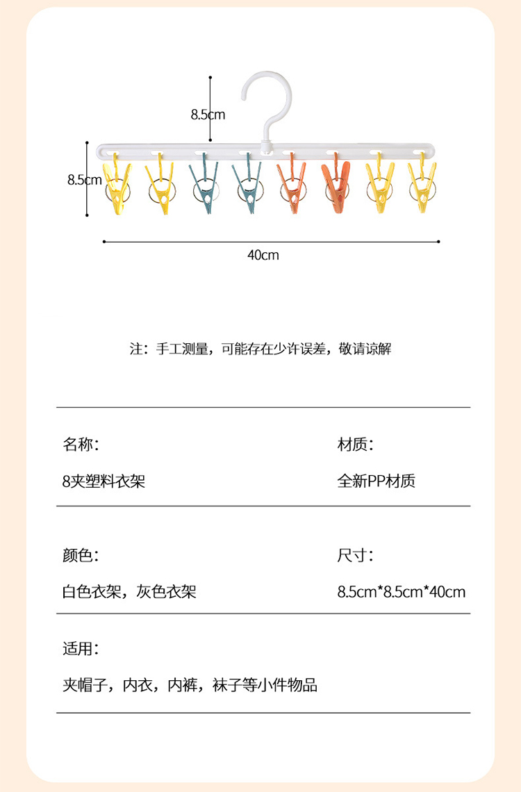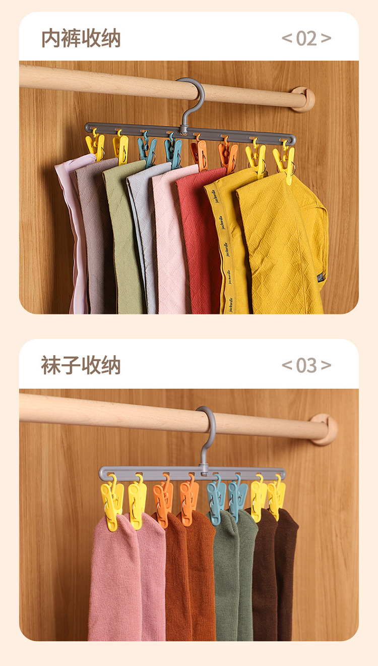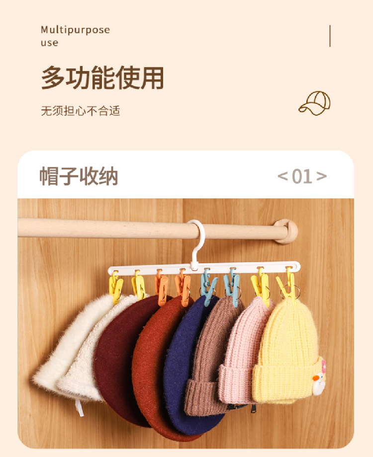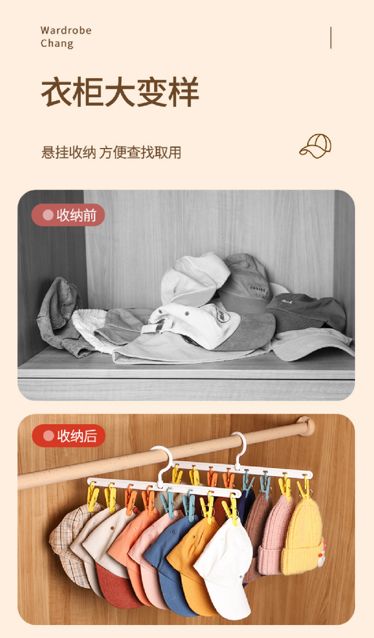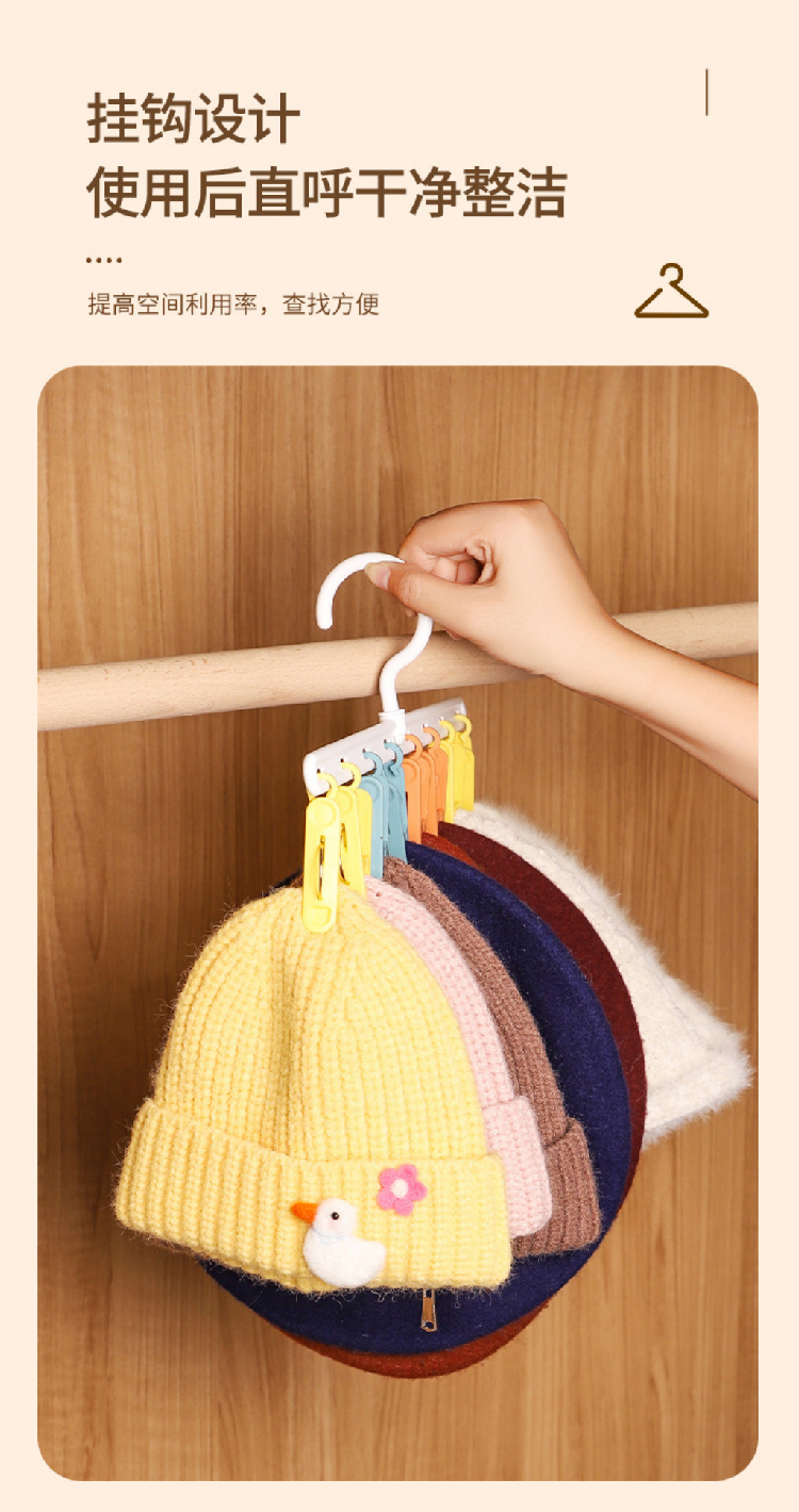 【挂帽子收纳2排】免打孔挂钩多功能置物架 可旋转毛巾夹8个衣帽挂钩