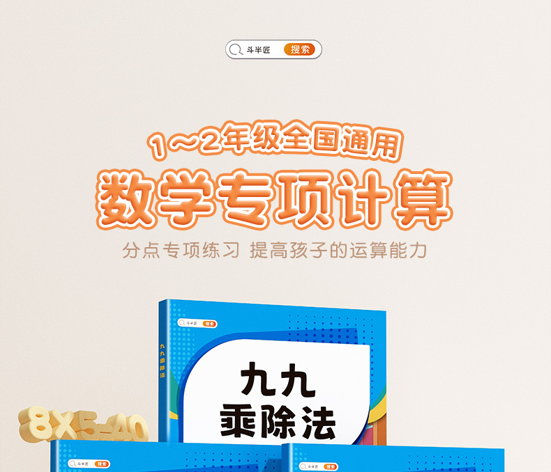 【斗半匠】小学数学专项训练表内乘法 表内除法 九九乘除法