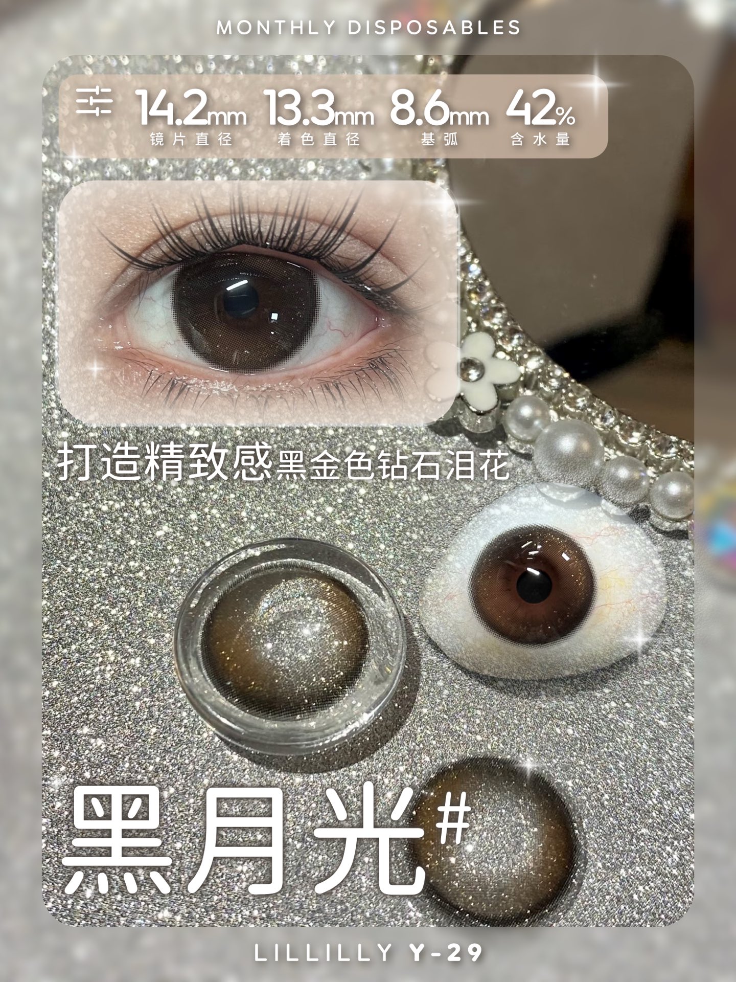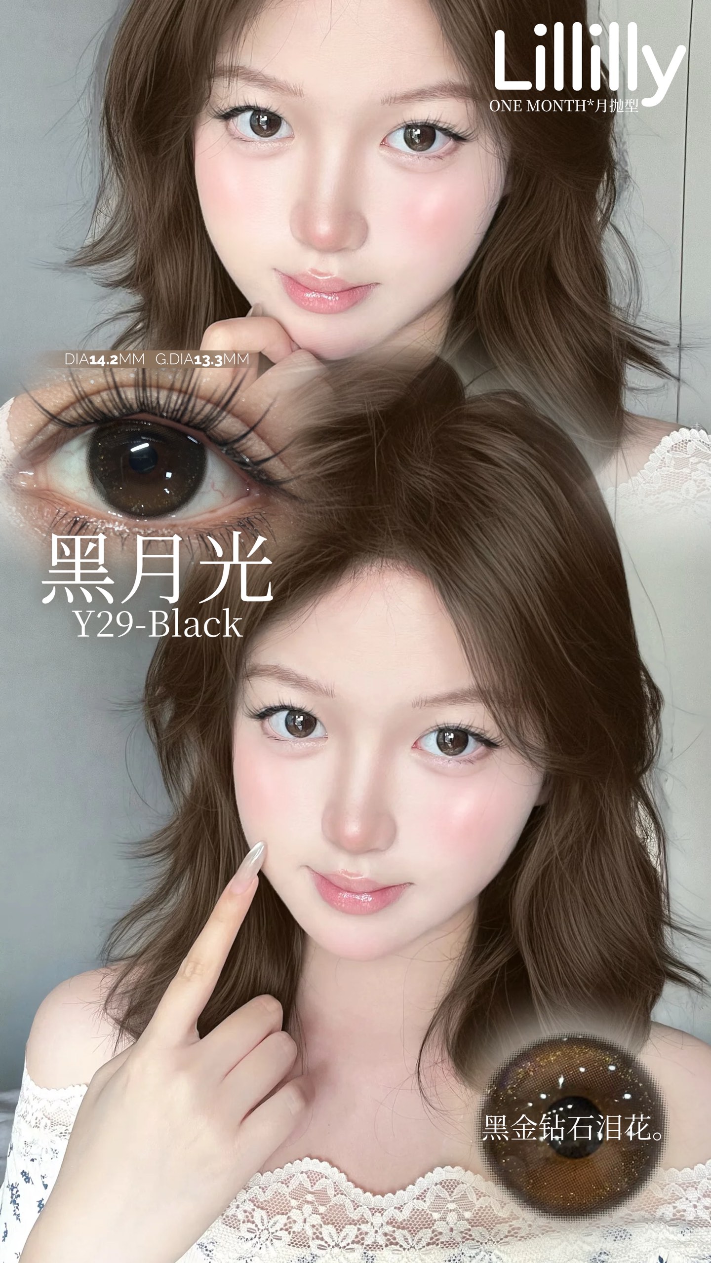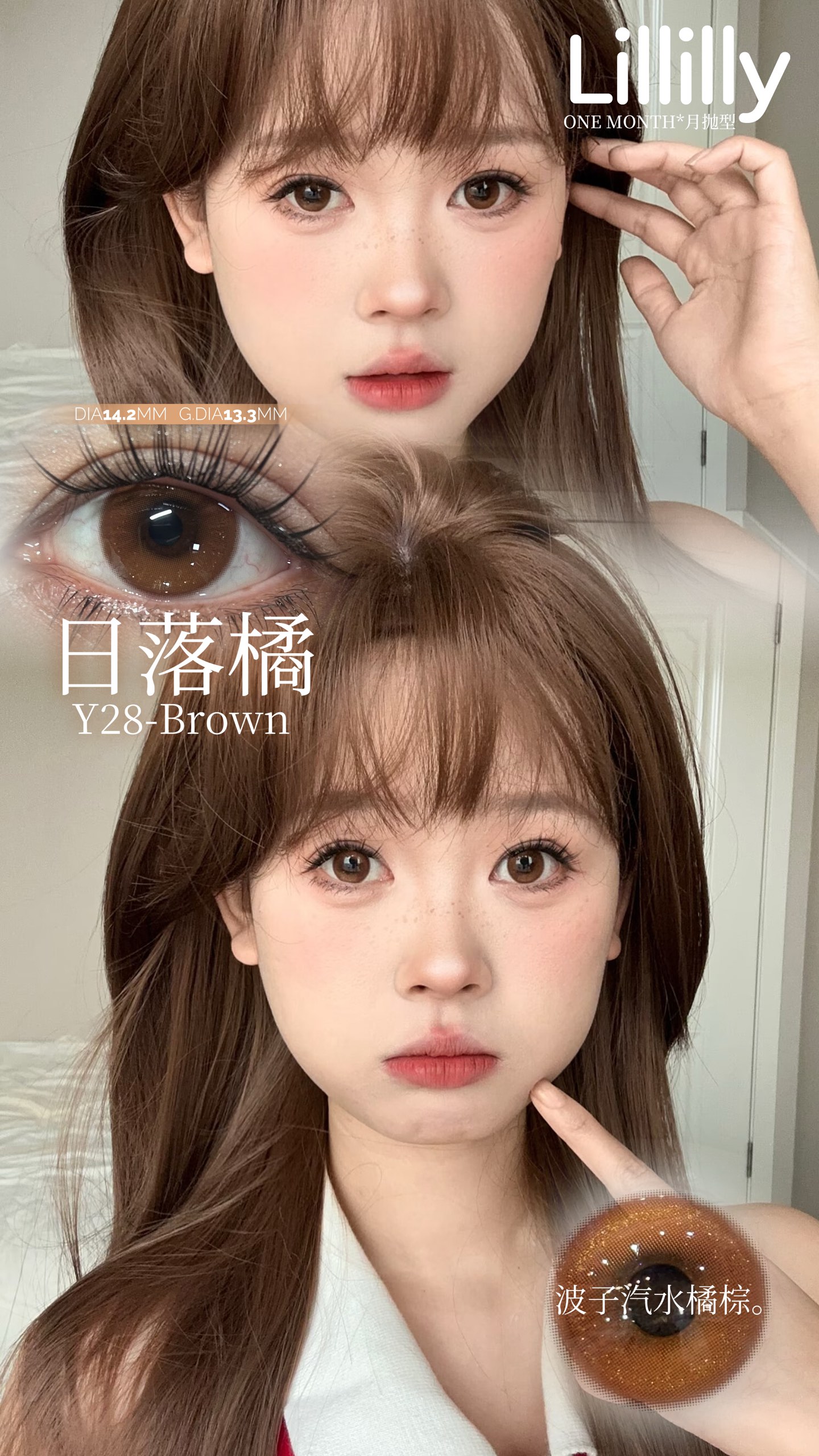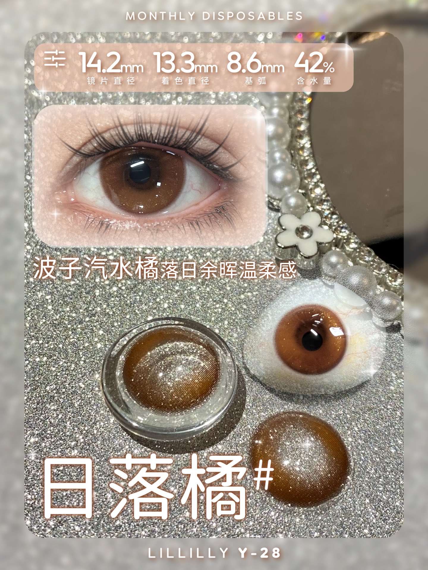 月抛lillilly Y28日落橘 棕/Y29黑月光 14.2mm 非离子