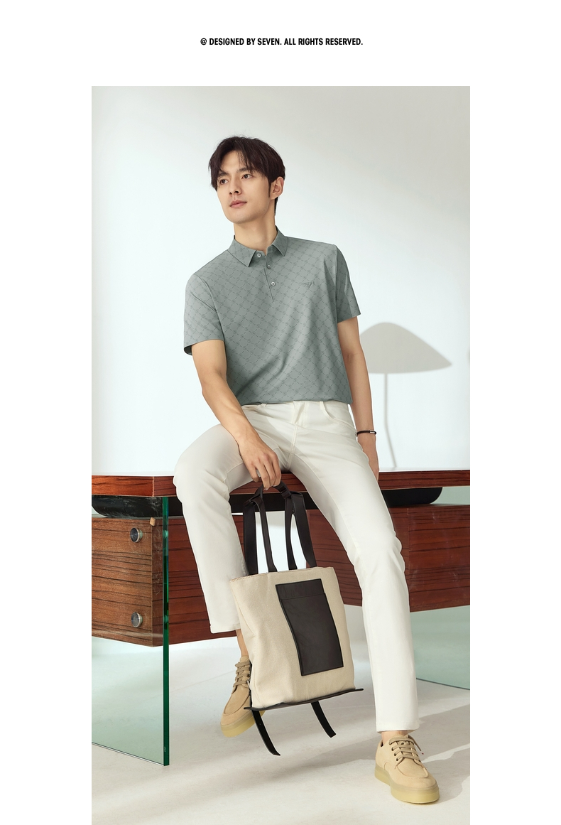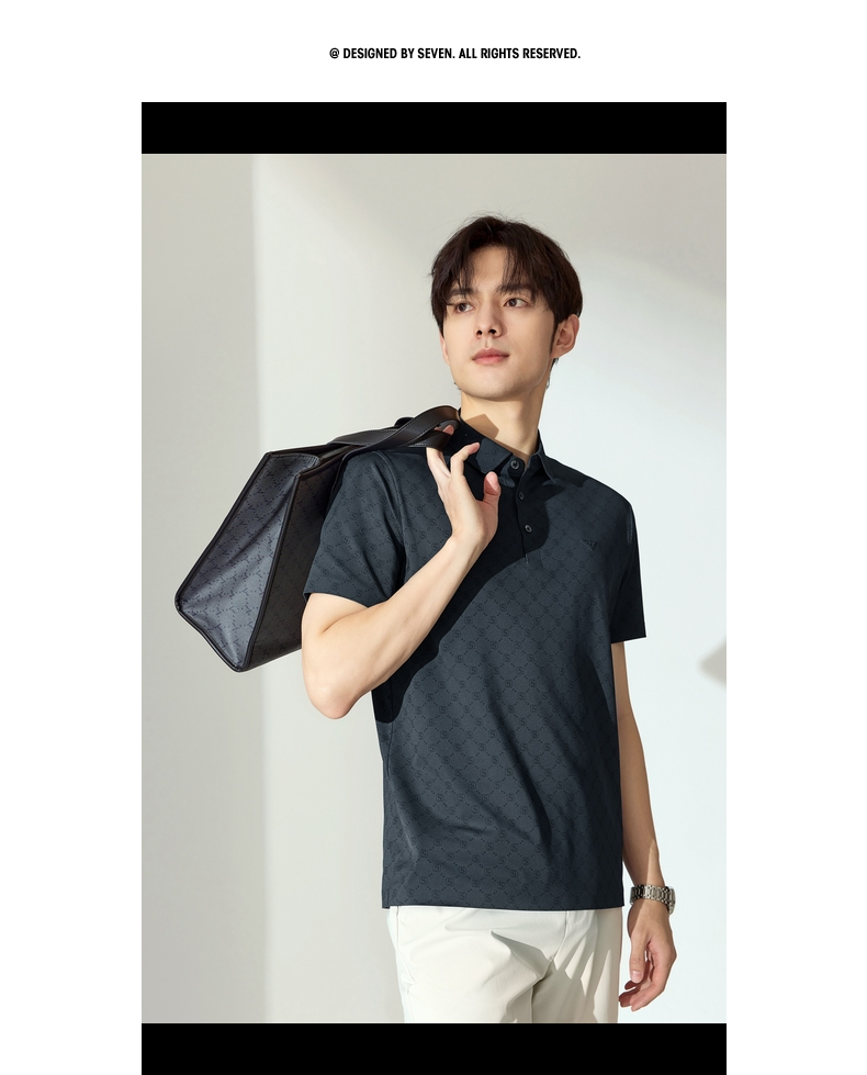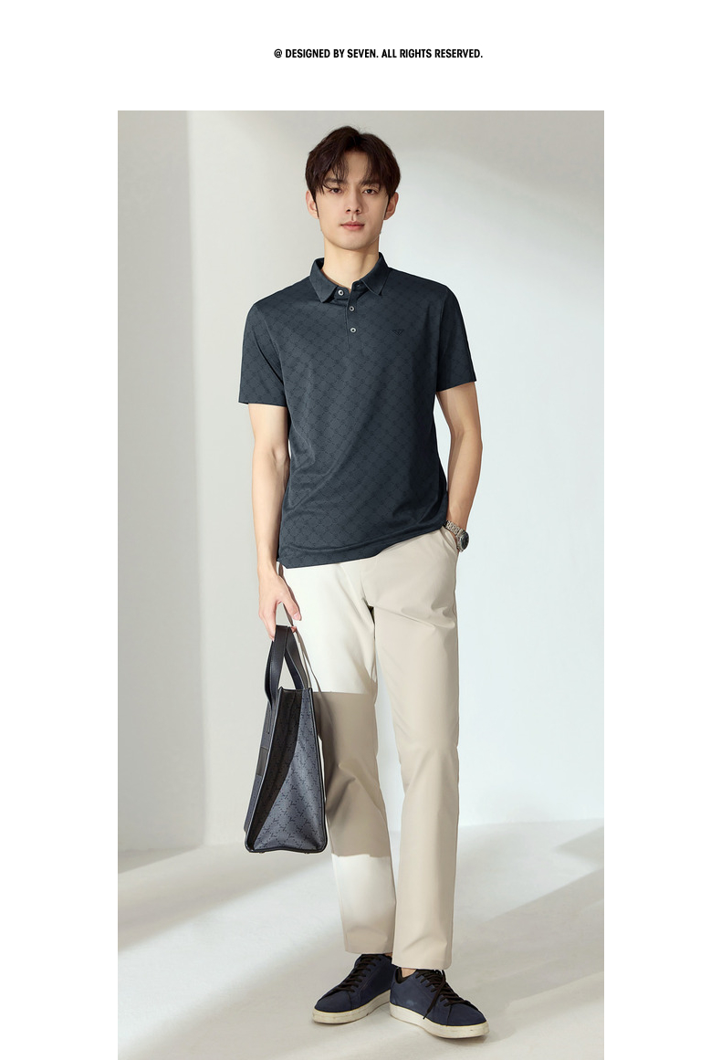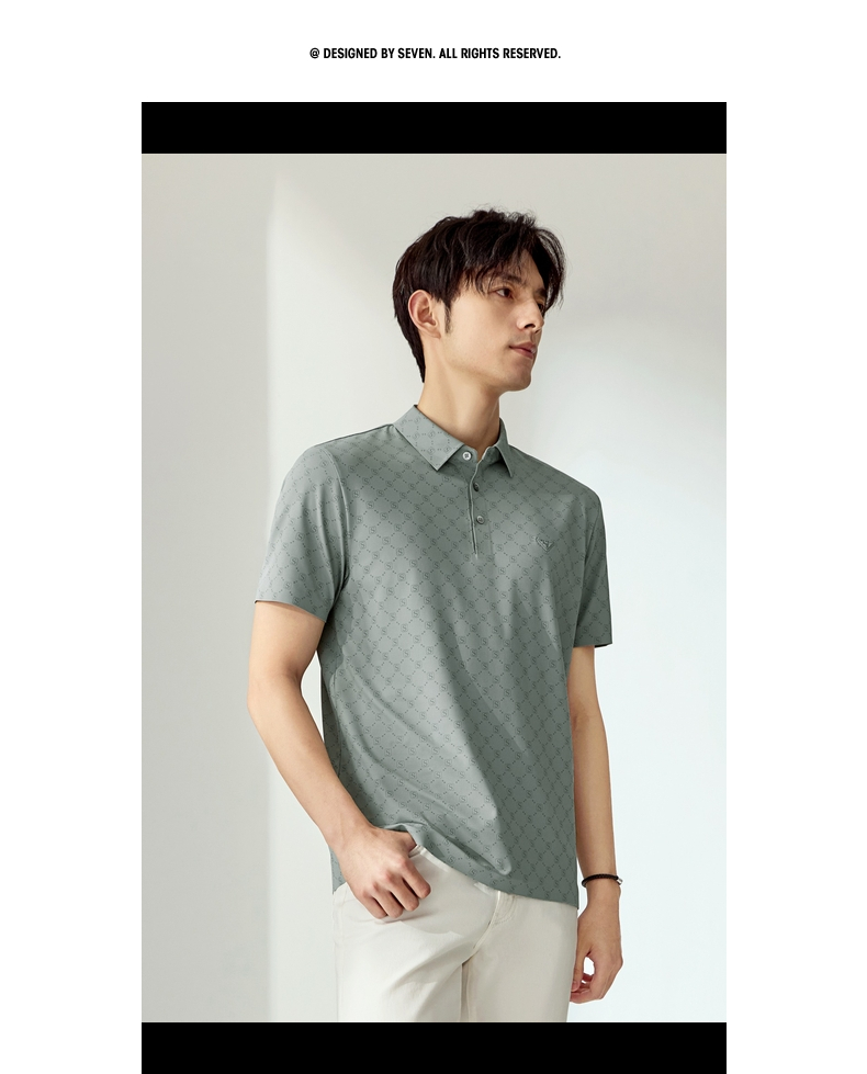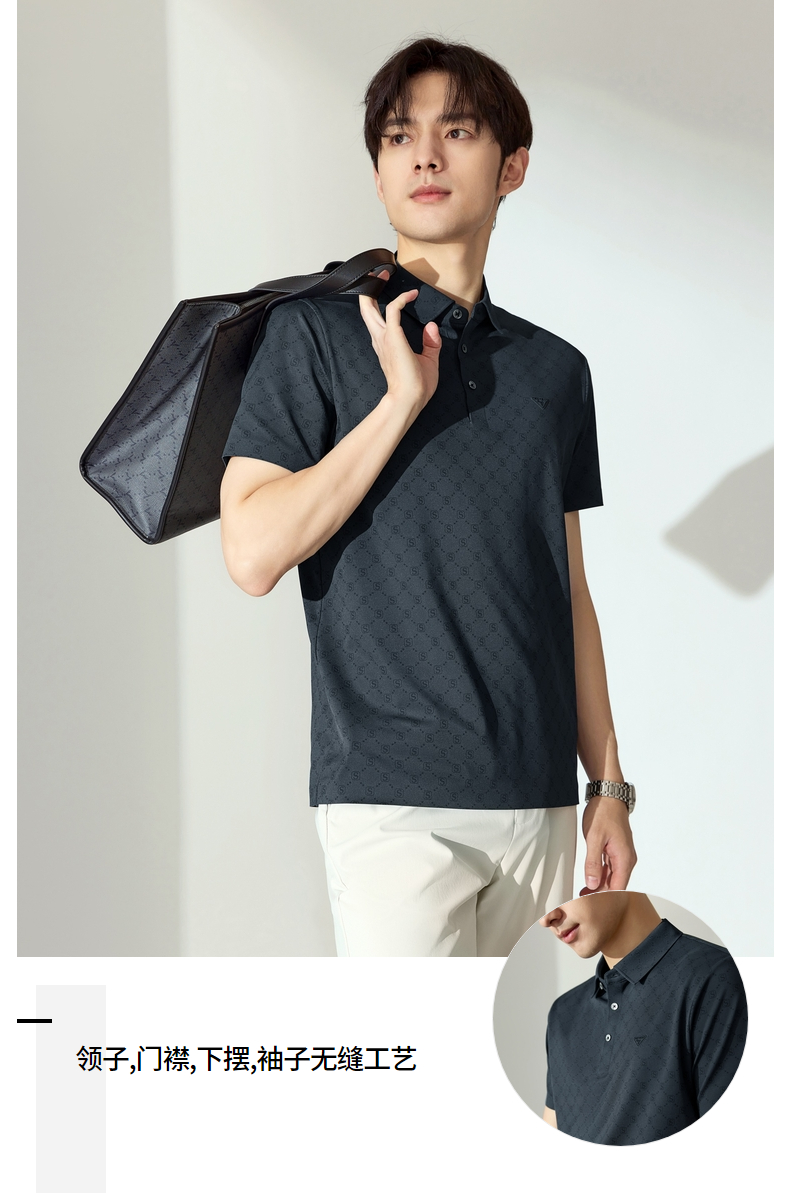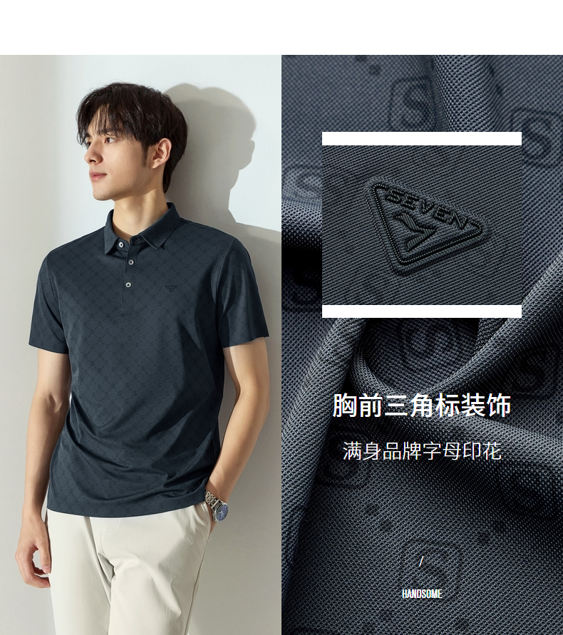 【特价】【无缝工艺/满身印花】柒牌短袖Polo衫男夏季薄款字母满印翻领T恤128T72600