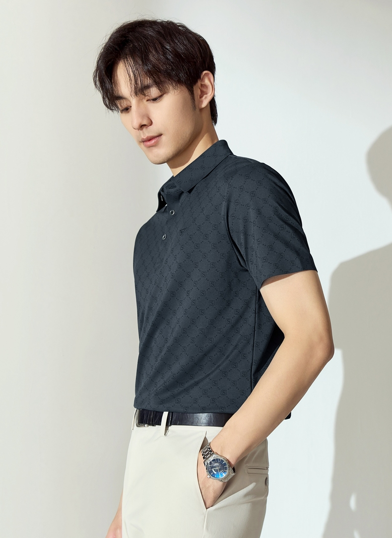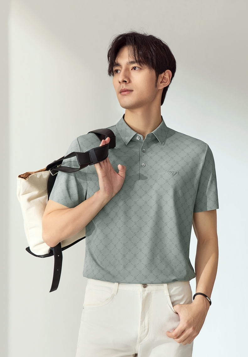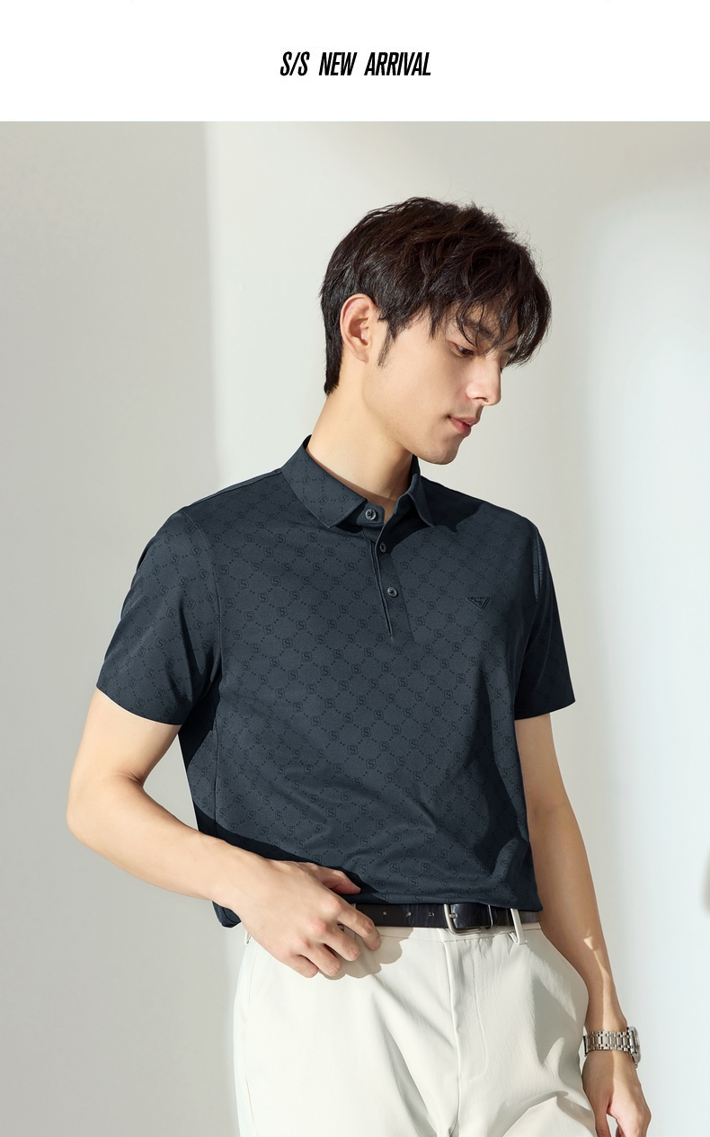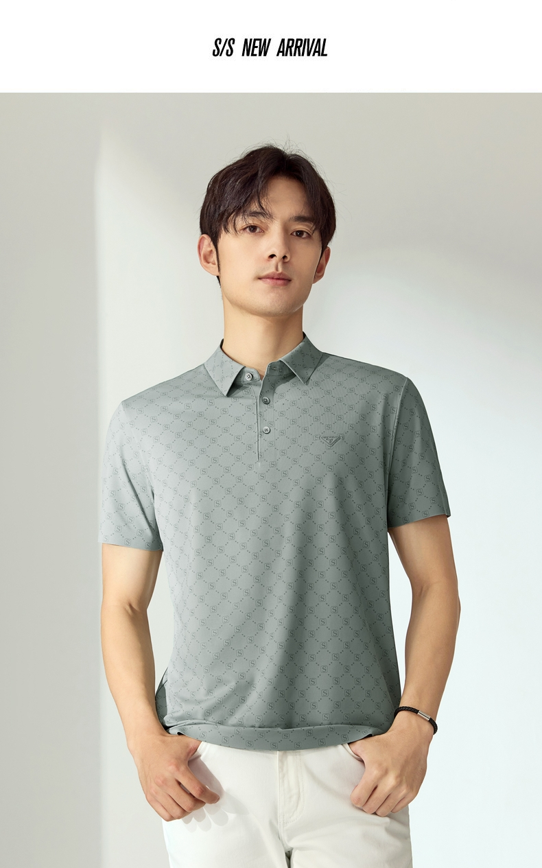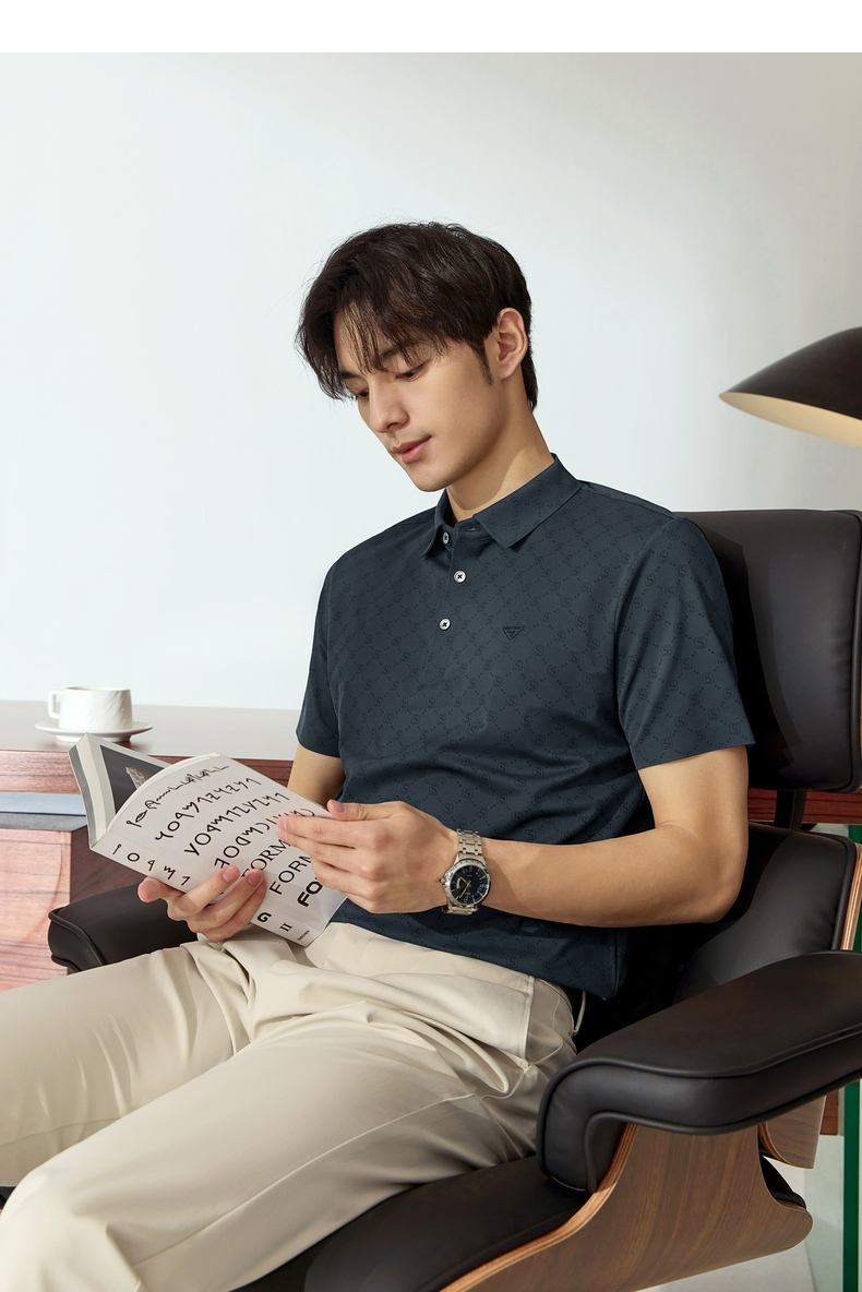 【特价】【无缝工艺/满身印花】柒牌短袖Polo衫男夏季薄款字母满印翻领T恤128T72600
