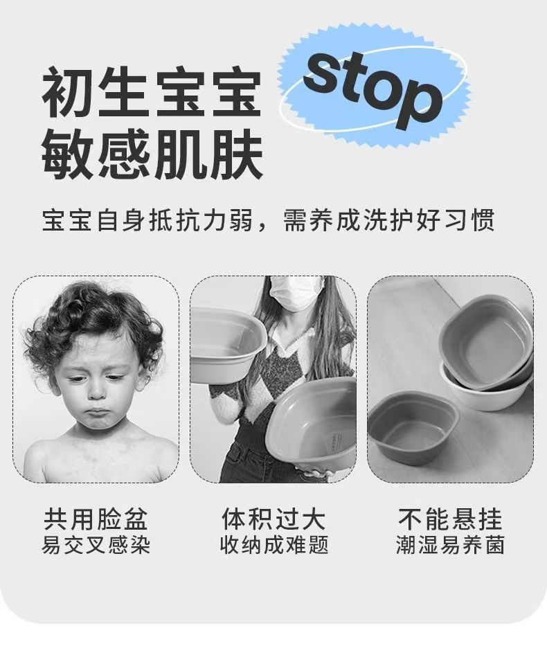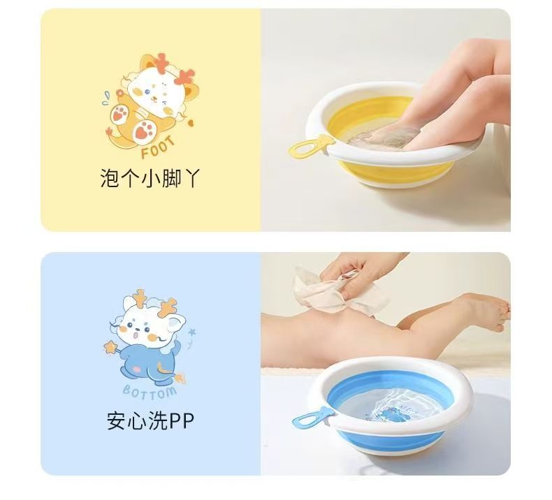 婴儿可折叠洗脸盆儿童洗屁屁专用小盆子三件套