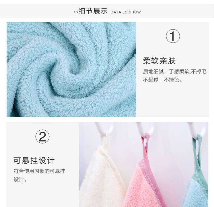 【挂钩设计!方便悬挂】3条装男女家用毛巾柔软吸水珊瑚绒亲肤舒适可悬挂颜色随机,独特悬挂设计,满足你的家居需求。