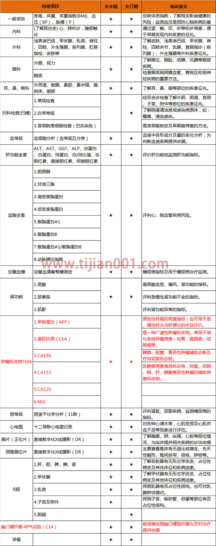白富美的健康评估套餐,全方位的为这群生活昼夜颠倒,熬夜,经常酗酒抽烟的男女进行一个健康评估。对胸肺状况,血脂肝功能,肾功能,男性的前列腺检查进行一个全方位评估。是一个适合年轻高端人群的优选健康评估套餐。
