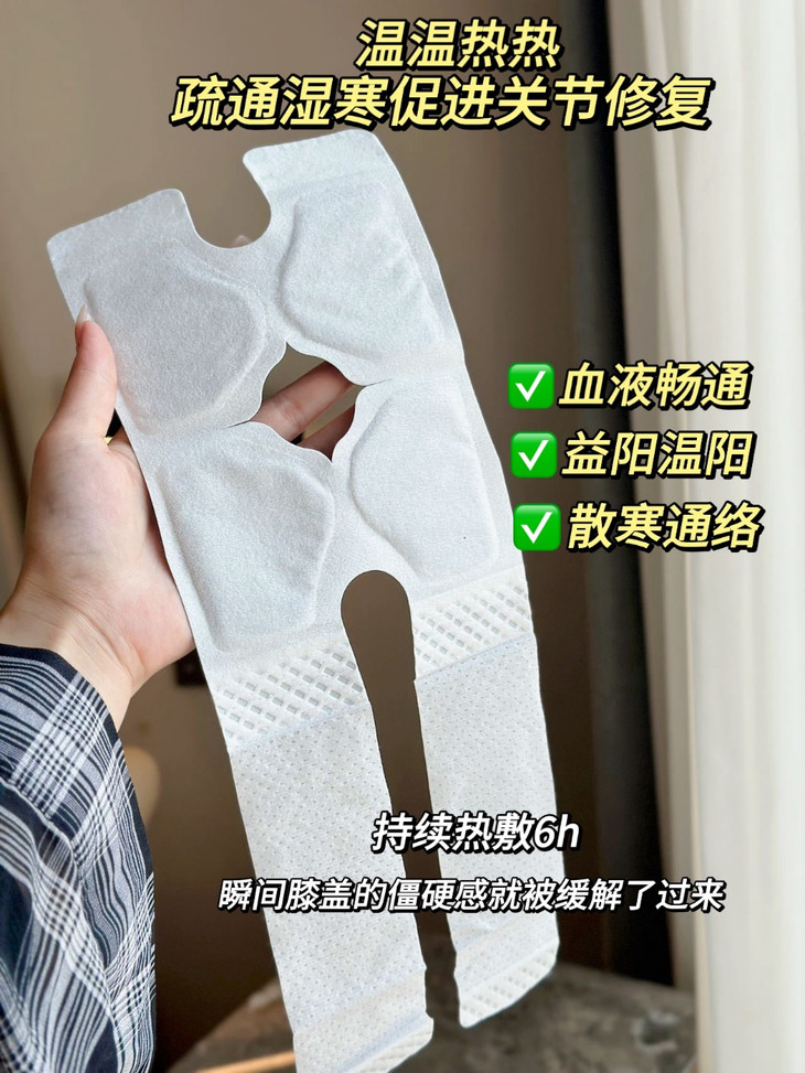 贴在膝盖上暖暖的,身体一下子就舒服了! 撕下来能看到满满的汗 帮你赶走“老寒腿”,过冬能缓解很多! 采用的非常柔软的无纺布材质 亲肤透气,松紧得宜,不紧绷不勒腿 弹性魔术贴,贴合肌肉曲线 不易掉落不紧绷,覆盖到全膝