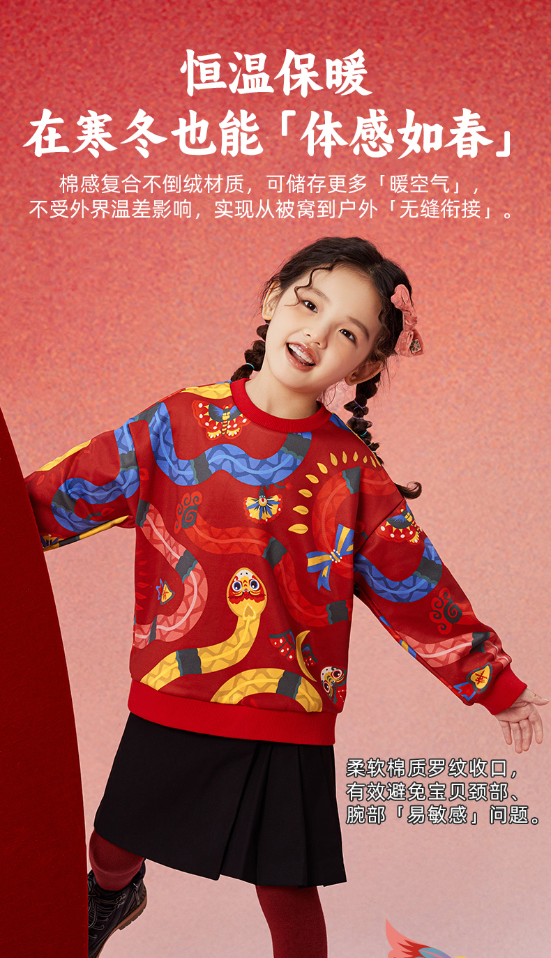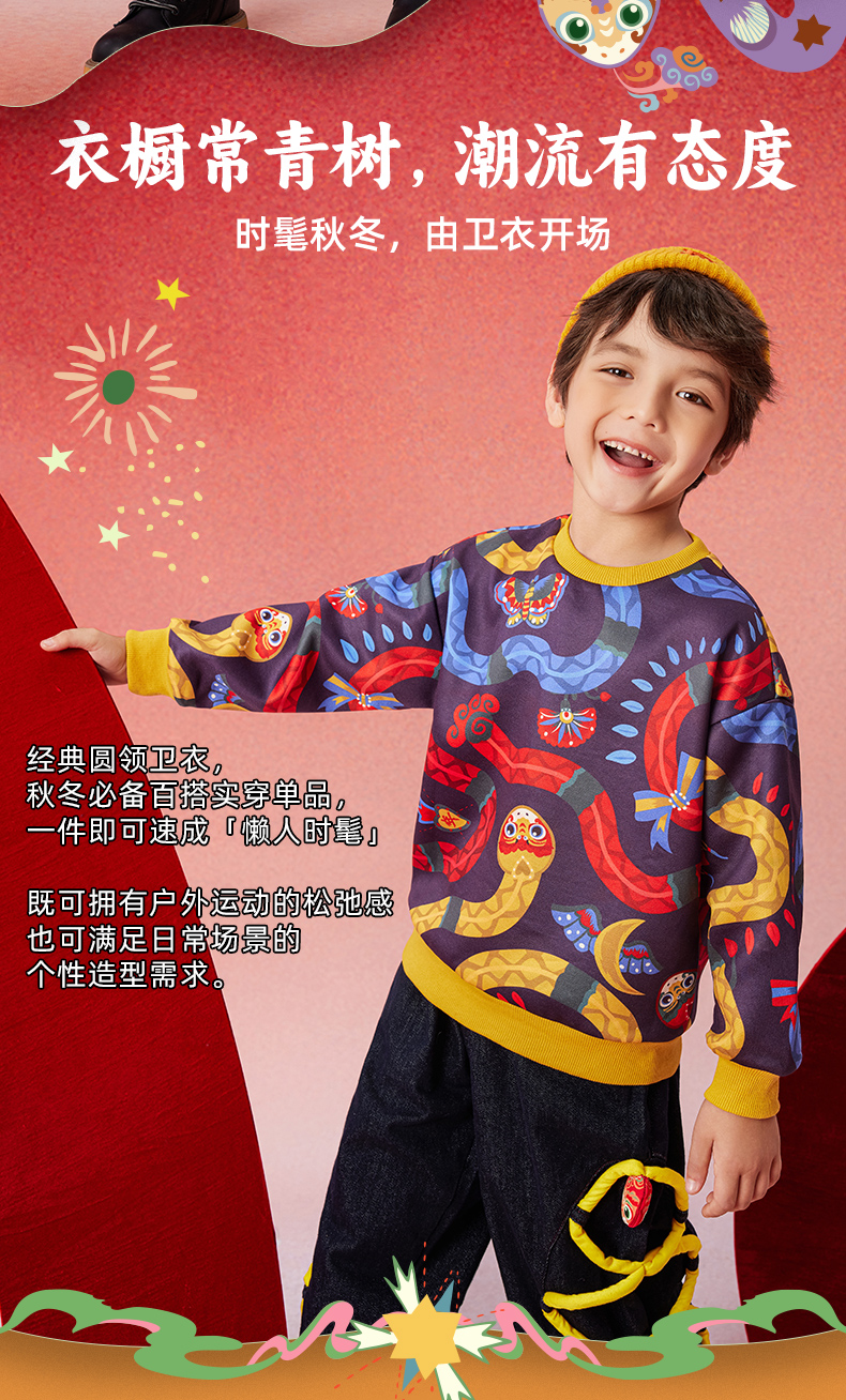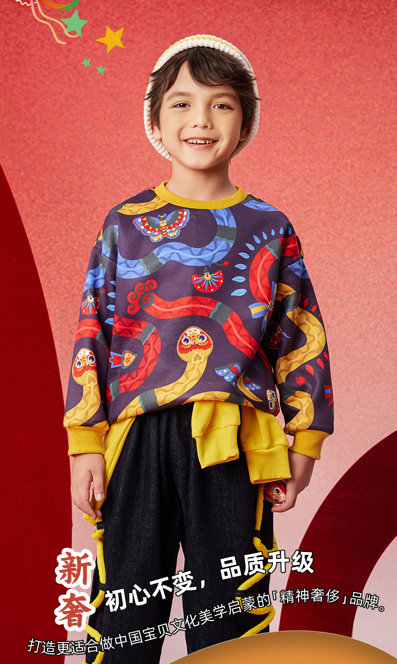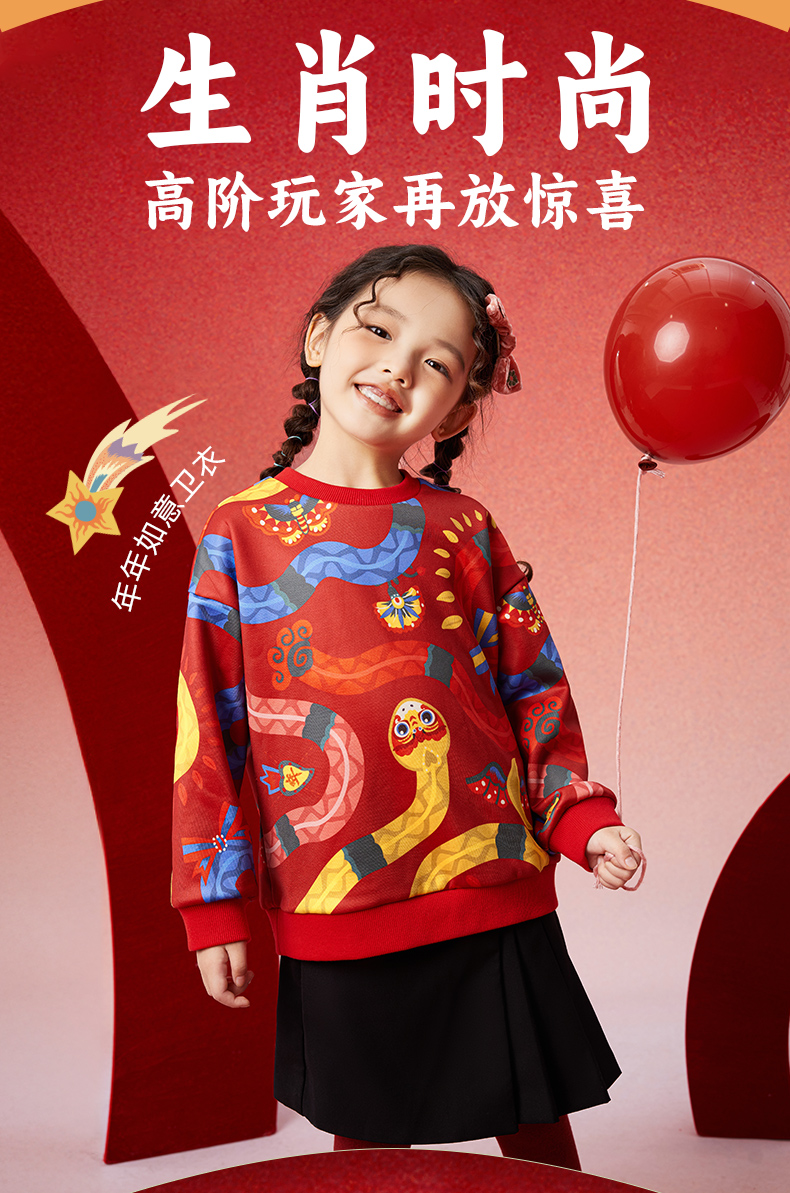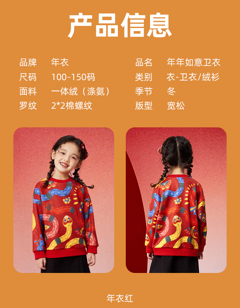 年衣童装男童卫衣冬新款儿童长袖t恤女童打底衫宝宝套头上衣加绒年年如意卫衣