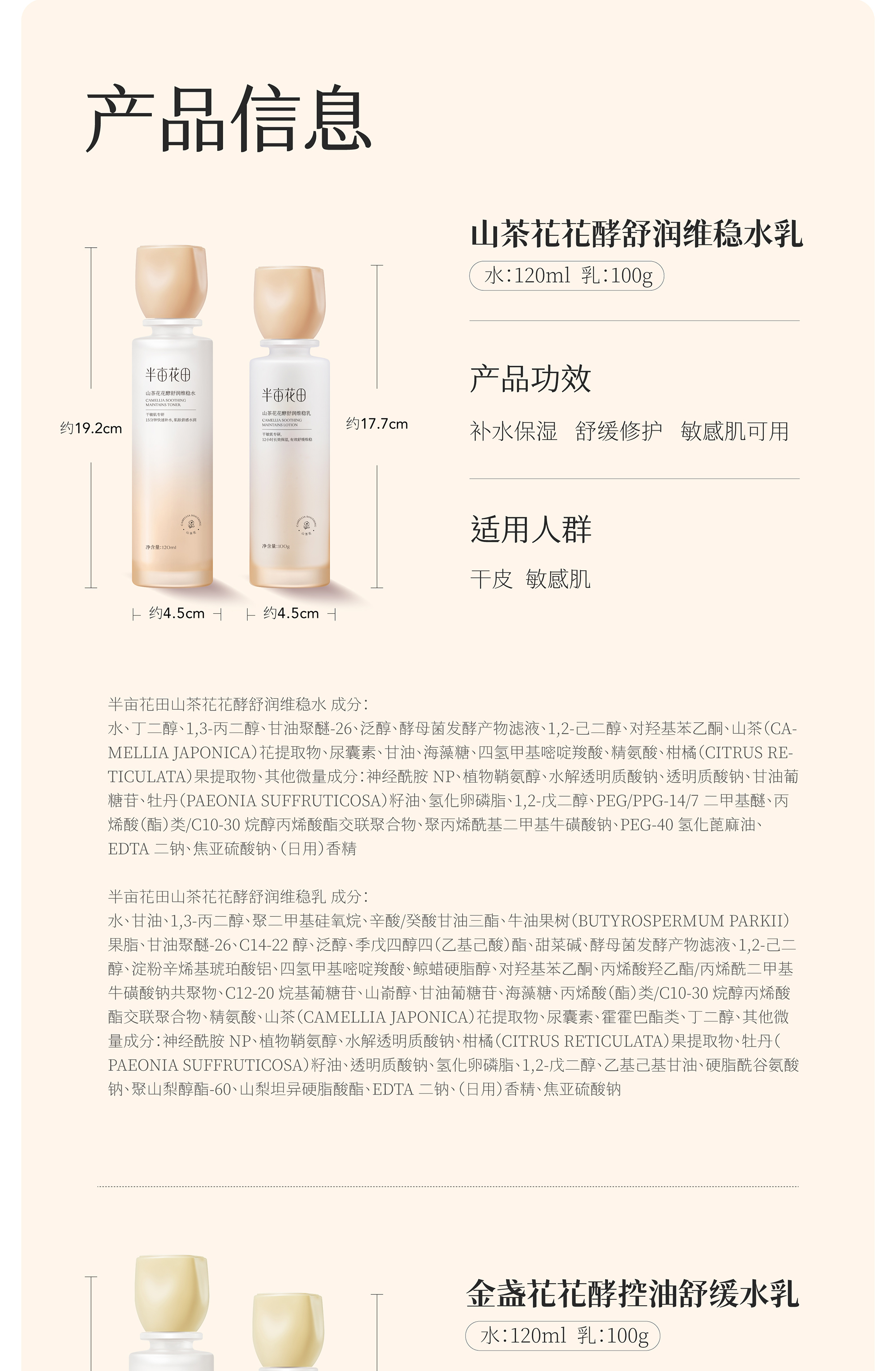 【买1送1,送同款水乳一套】【干皮/混油皮/敏感肌】【双旦|年终会员日】【入会享优惠】半亩花田山茶花舒缓/金盏花控油 水乳敏感肌补水舒缓修护保湿套装学生护肤官方正品