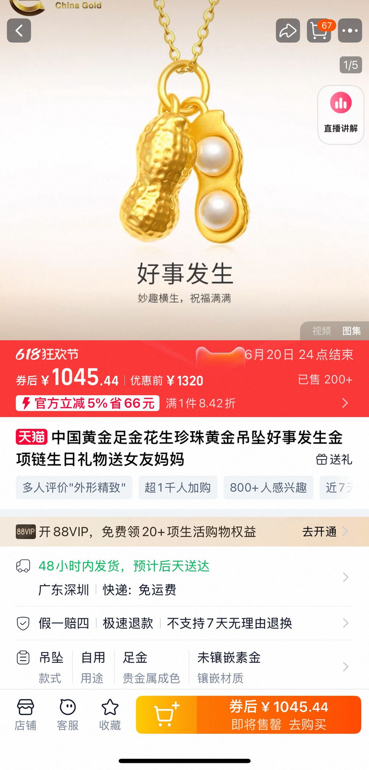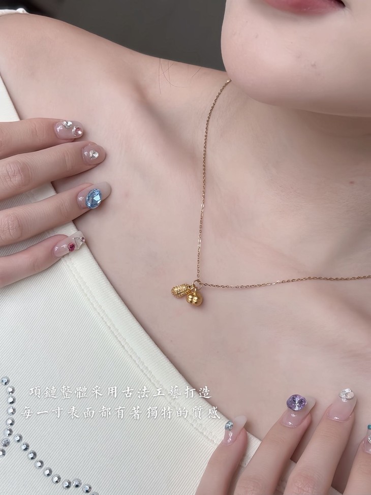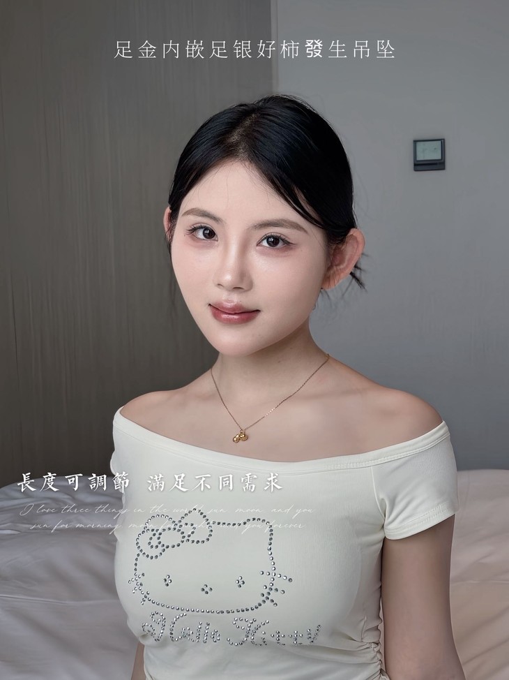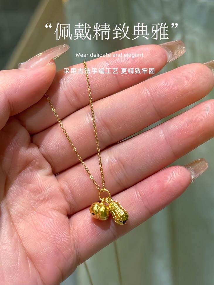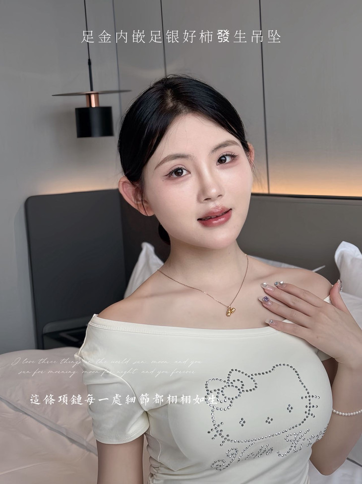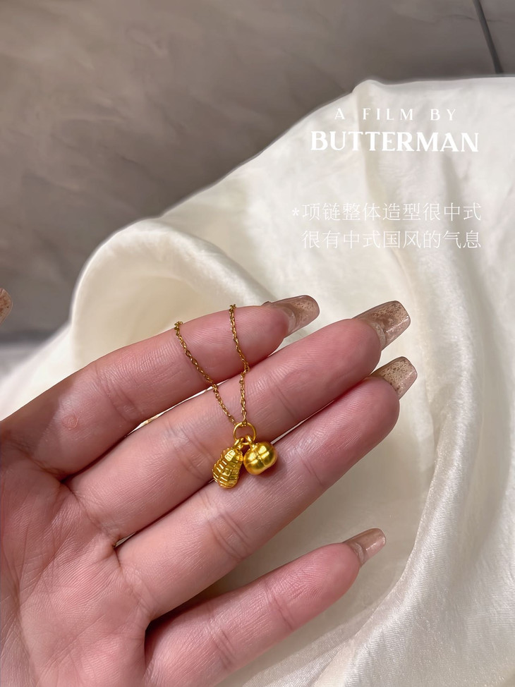 被追着问的宝藏首饰! 足金内嵌足银好柿發生吊坠,外层足金璀璨夺目, 内层足银低调奢华,两种珍贵材质碰撞出独特的时尚火花。 圆润饱满的柿子搭配俏皮花生,寓意“好事发生”,把美好祈愿随身携带。 还贴心附赠K金项链,质感超绝,不管什么场合戴,都能轻松吸睛。