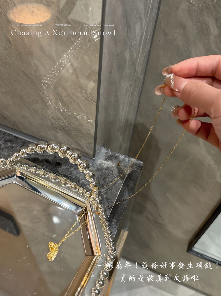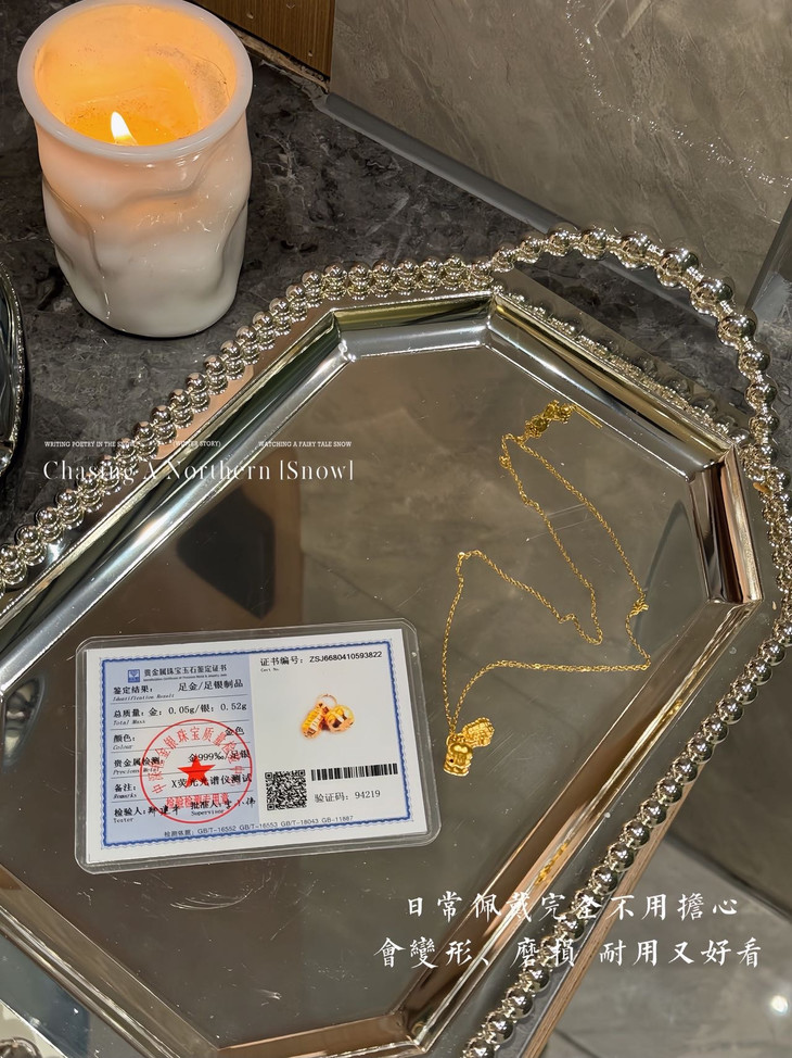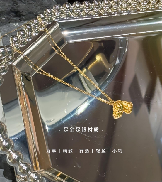 外层足金光泽夺目,内里足银低调温润,质感无敌。 随赠的K金项链颜色丰富、硬度高,能完美适配吊坠, 无论是单戴还是叠戴都超有范儿,轻松拿捏时尚感。