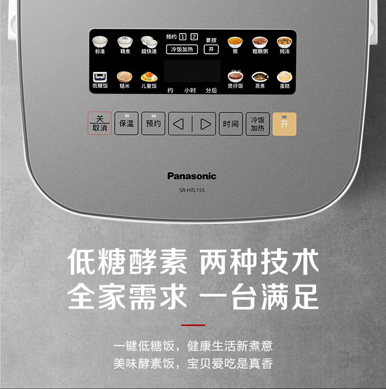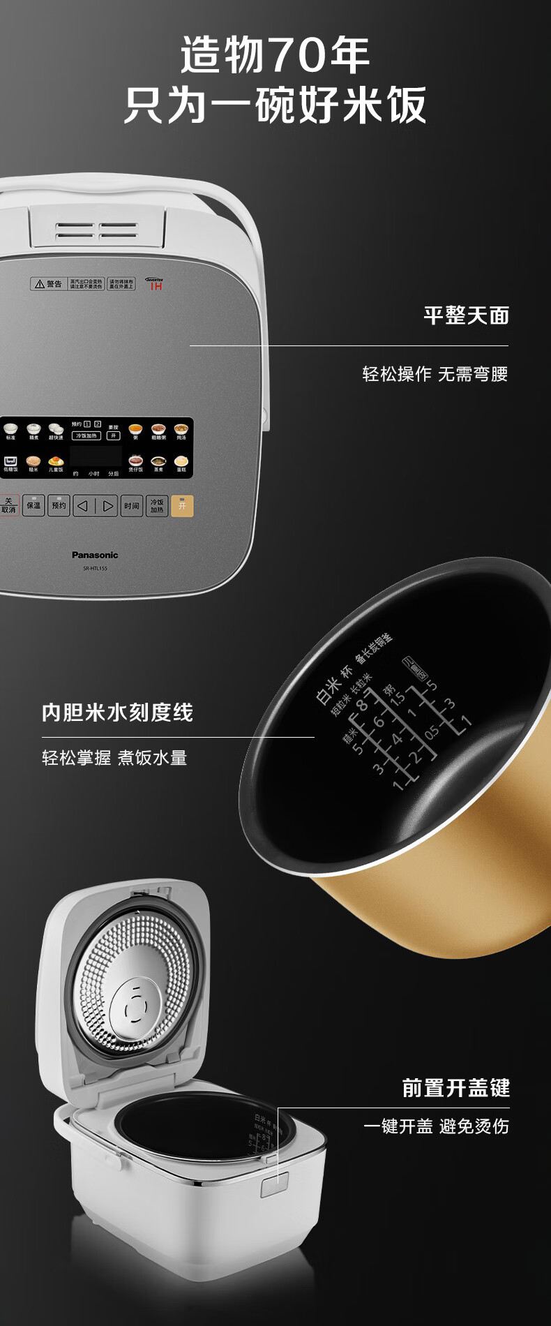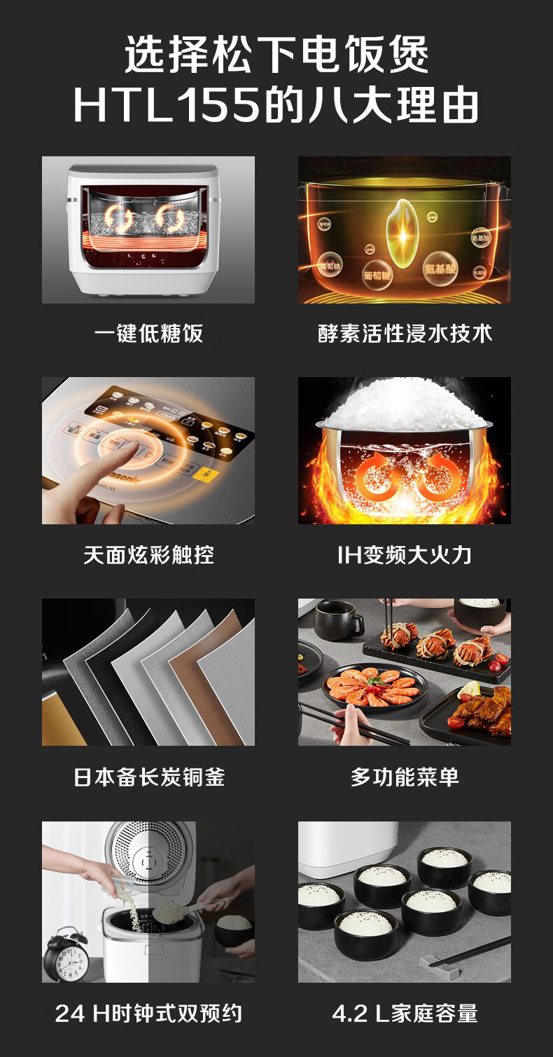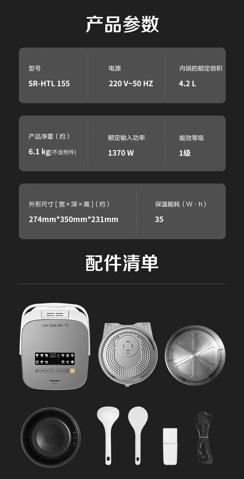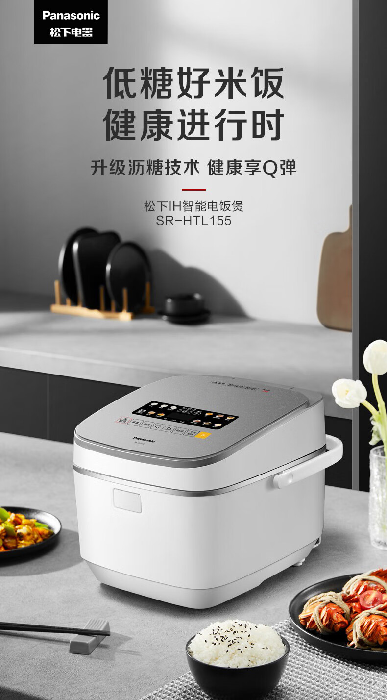 松下(Panasonic)低糖电饭煲家用4-5人IH加热电饭锅智能煮饭锅备长炭铜釜可拆洗4.2升容量 低糖款SR-HTL155(原香柴火饭SR-HT155)