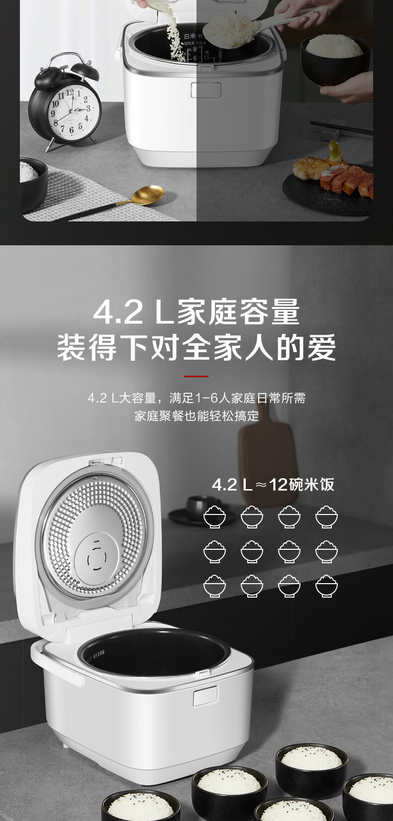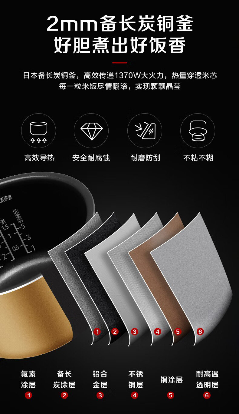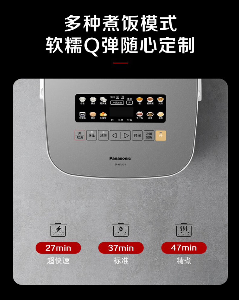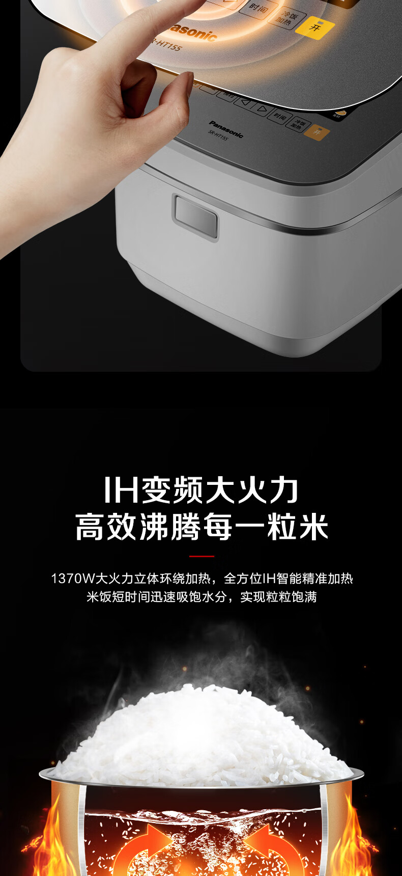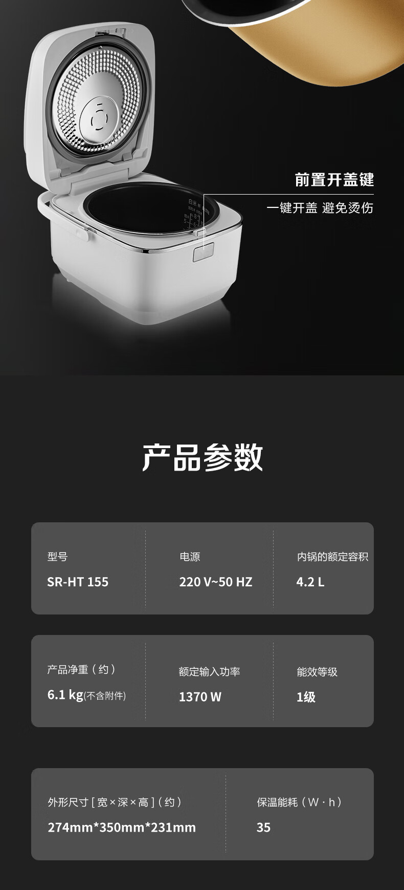 松下(Panasonic)低糖电饭煲家用4-5人IH加热电饭锅智能煮饭锅备长炭铜釜可拆洗4.2升容量 低糖款SR-HTL155(原香柴火饭SR-HT155)