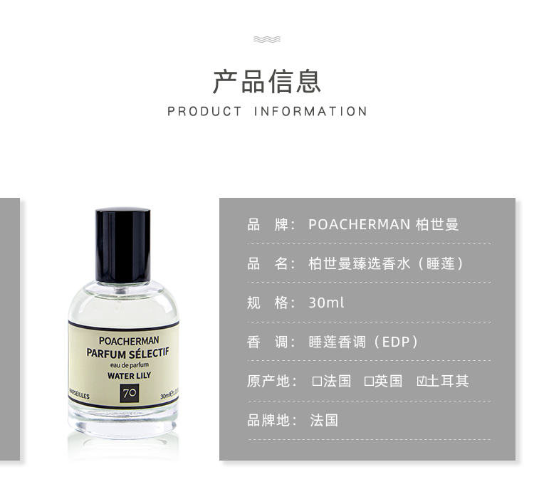 柏世曼花香调睡莲香水淡雅清新 天然莲花香淡香女士香水持久留香